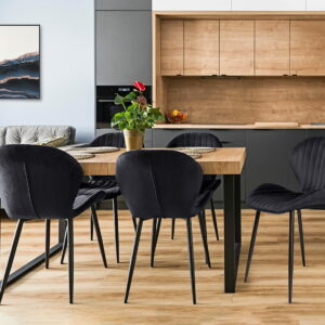 (DL) Scaun dining Veira pentru bucatarie tapitat cu catifea, 52x57x85cm, negru