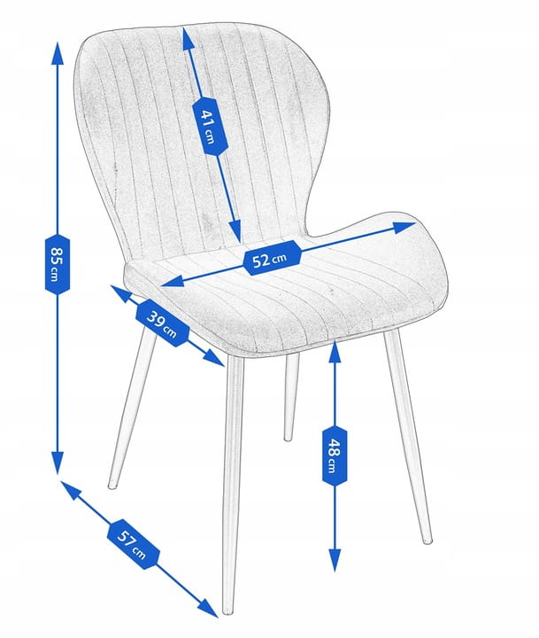 Design-ul unic, cu aspect deosebit, se potriveste perfect intr-un cadru glamour, clasic sau modern. Picioarele scaunului sunt fabricate dintr-un metal de inalta calitate, care asigura stabilitate si durabilitate.