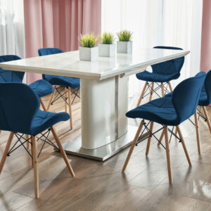 Design-ul unic, cu aspect deosebit, se potriveste perfect intr-un cadru glamour, clasic sau modern. Tapiteria de catifea ofera confort, fiind foarte moale si placuta la atingere. Acest material nu cauzeaza alergii.