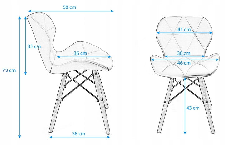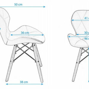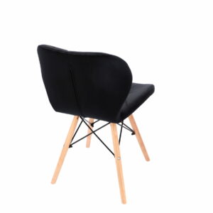 Scaunul are un scaun tapitat cu catifea, cu forme decupate interesante pe partile laterale. Picioarele sunt realizate din lemn masiv natural de fag – asigurand rezistenta si stabilitate in timpul utilizarii, in timp ce imbinarile negre intaresc intregul cadru si sunt, de asemenea, decorative.