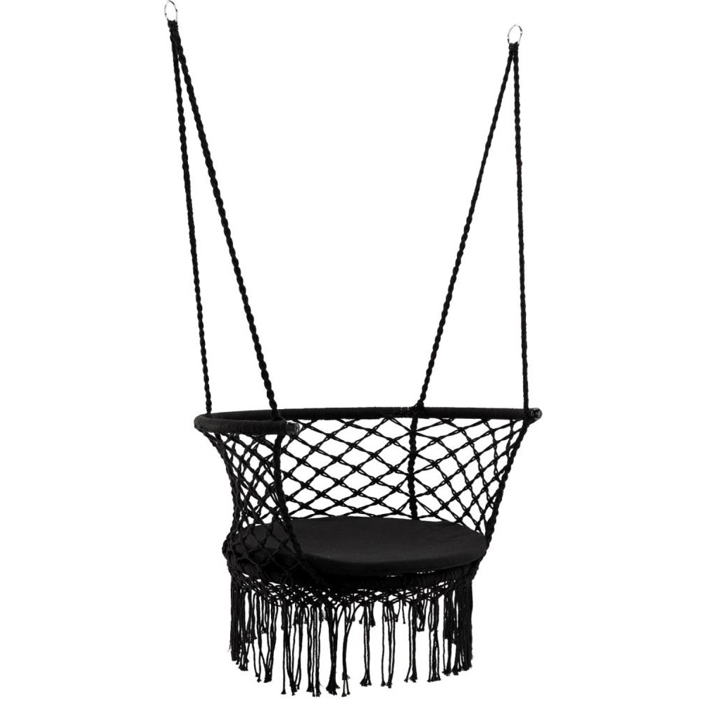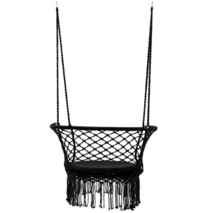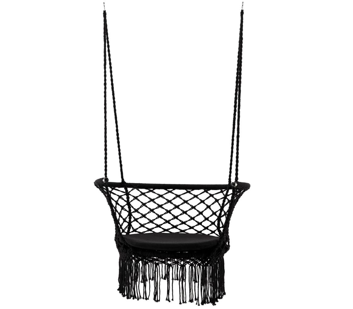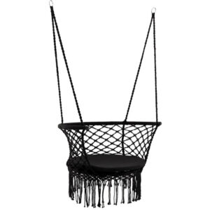 Kerek függőfotel otthonra vagy kertbe, rojtos, 150kg, párnával, fekete