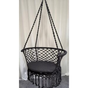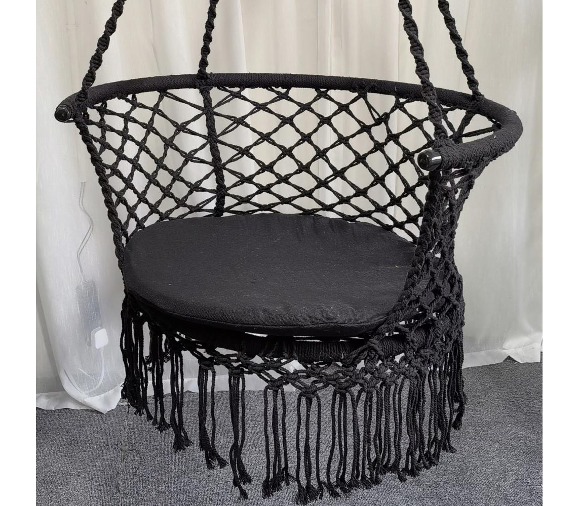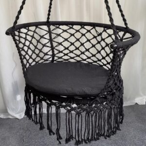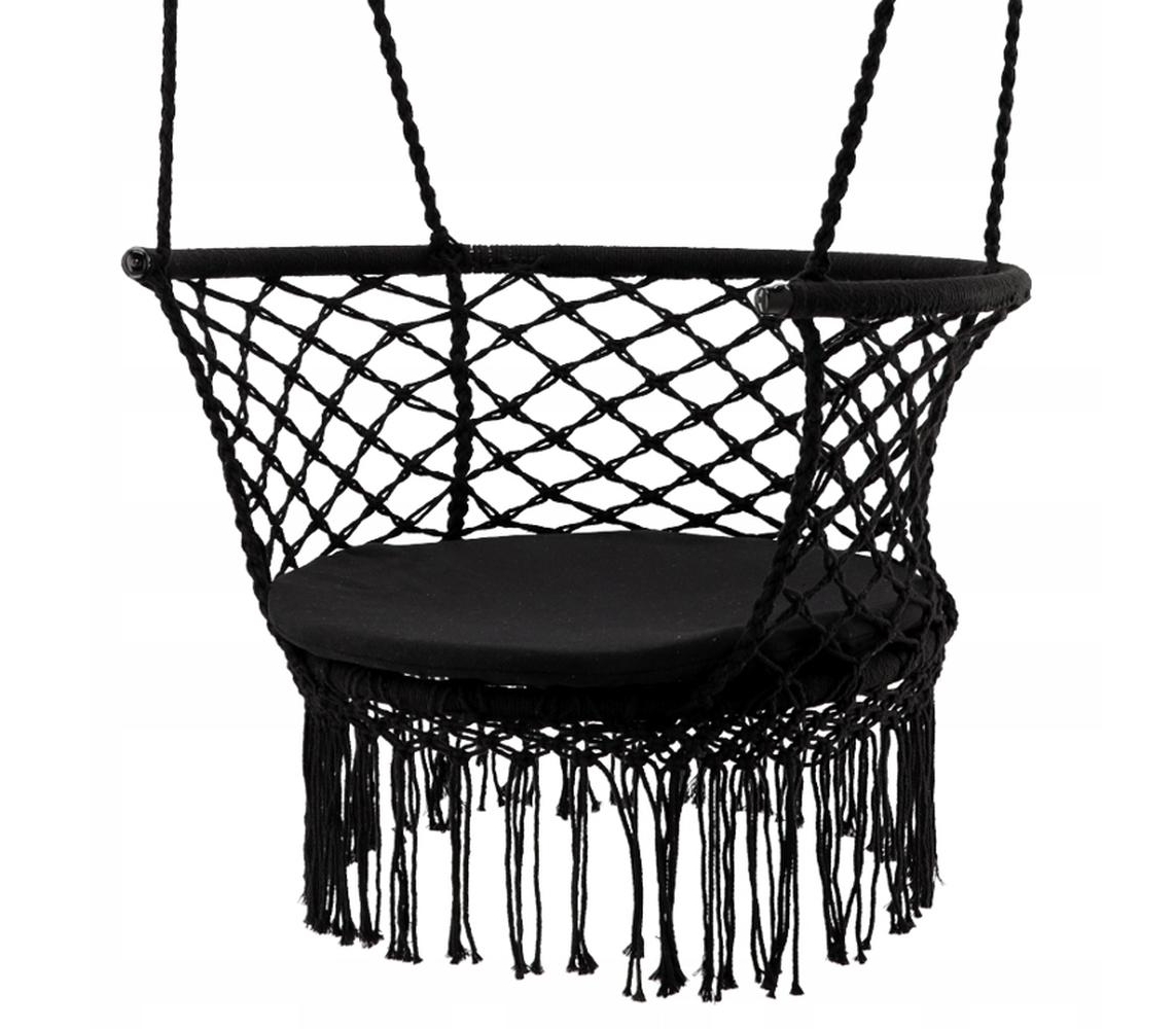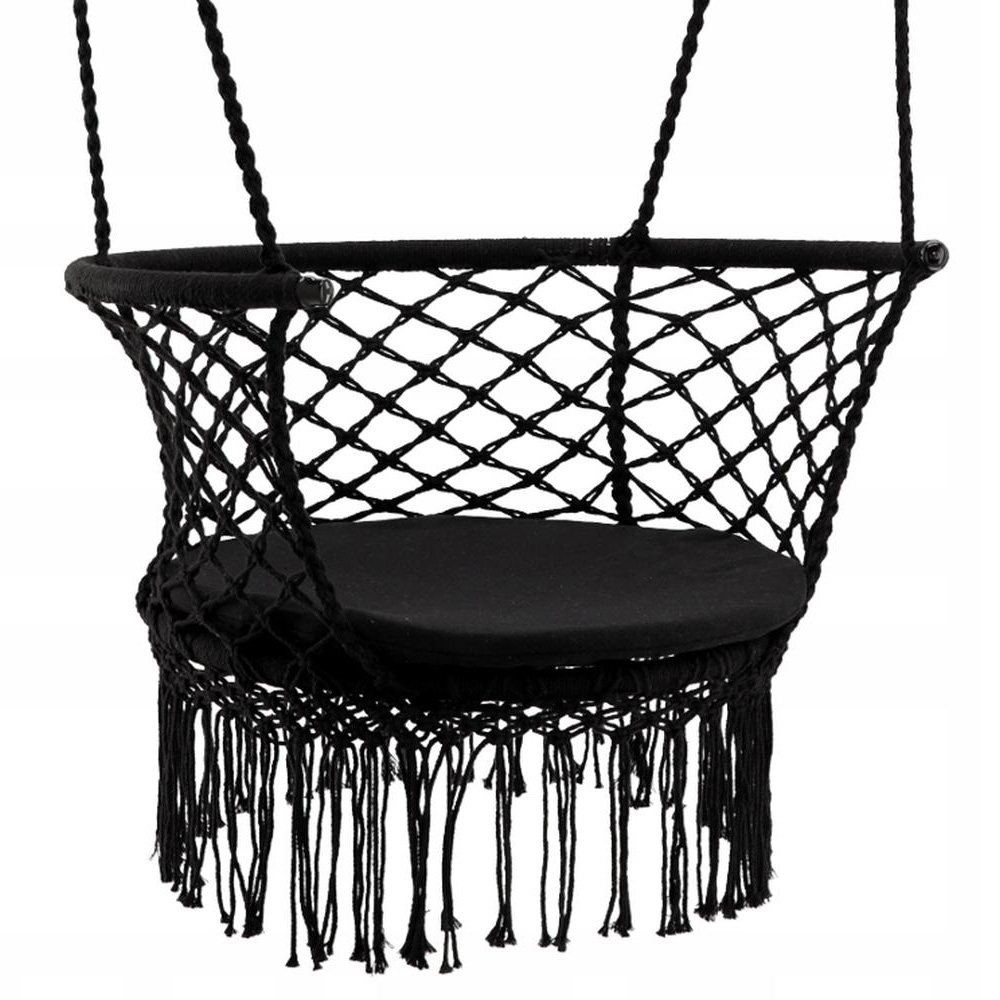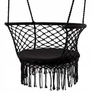 „Kerek függőfotel otthonra vagy kertbe, rojtos, 150kg, párnával, fekete” értékelése elsőként