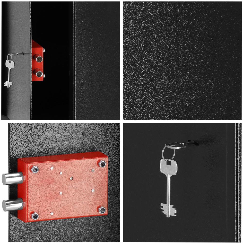 Suplimentar: poate fi fixat pe pereti si pe podea (dibluri incluse), covor de pasla pentru izolarea fonica a interiorului seifului