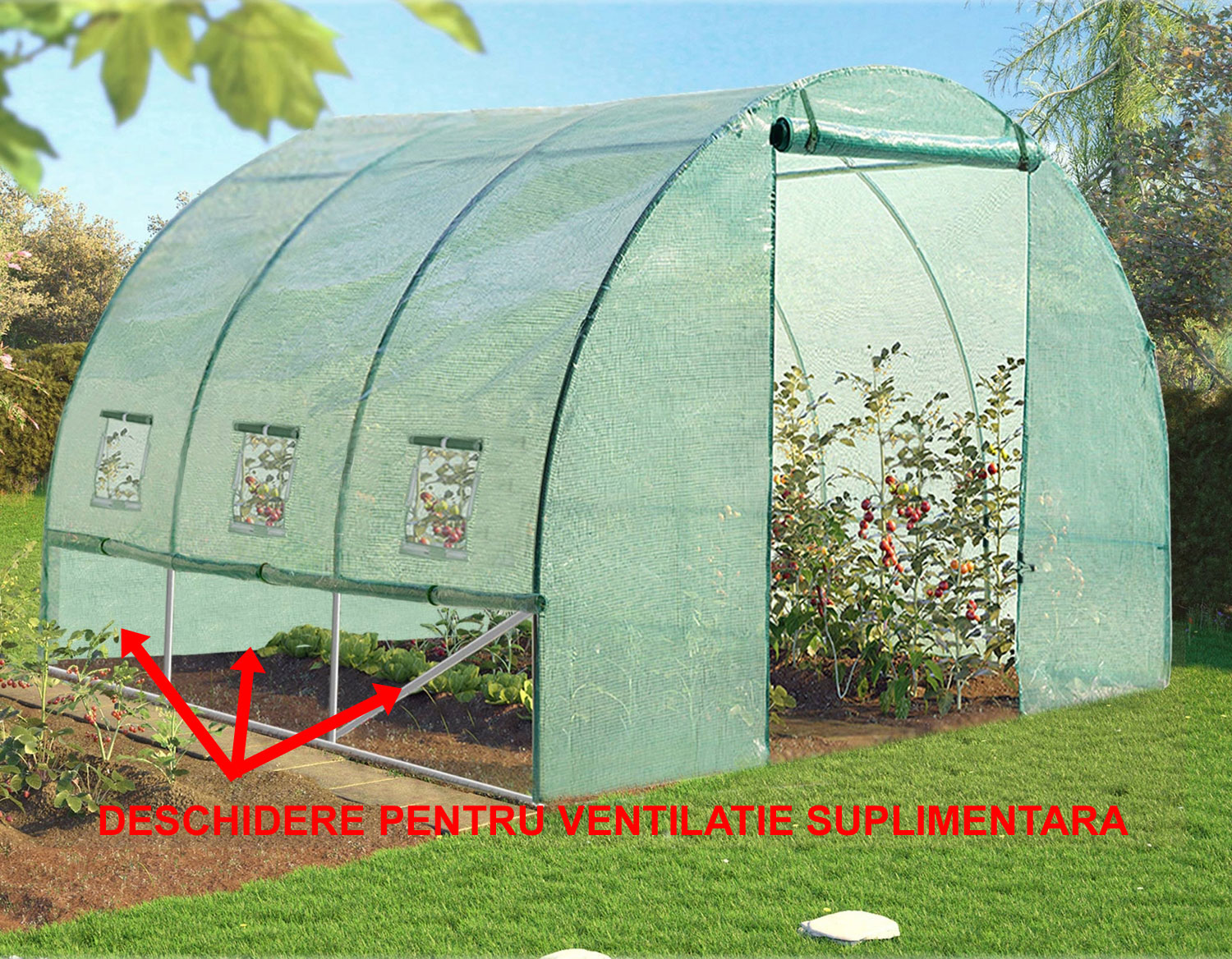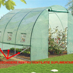 Az alagútban található kiegészítő szellőző funkció, amely lehetővé teszi a hengerelt fólia becsomagolását és alul történő felakasztását, nagyon praktikus megoldás, különösen a forró nyári napokon. Ezzel a funkcióval szabályozhatja a légáramlást az alagútban, ami segít fenntartani az optimális hőmérsékletet és páratartalmat a benne termesztett növények számára.