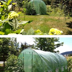 Az alagút teljesen zárt bejárattal rendelkezik, beleértve a küszöböt is! A hagyományos alagutakban még zárt állapotban is szűk hely marad az ajtó alatt. Itt jönnek be a csigák, üvegházi növényeink legnagyobb kártevői. A talaj gallérját az üvegház körül ásják.