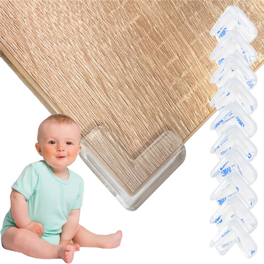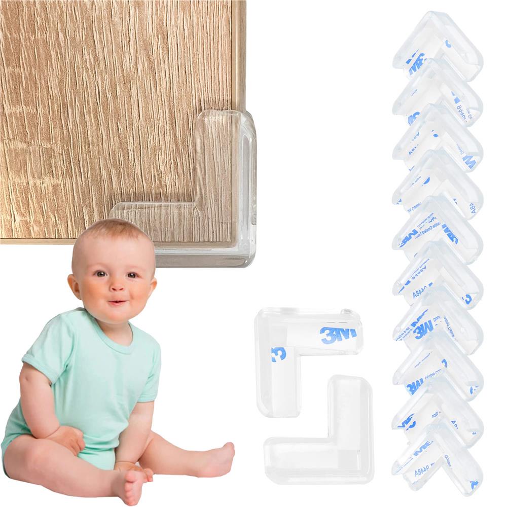 Set 10 protectii colturi pentru siguranta copii, drepte, 40x15mm, silicon, transparent