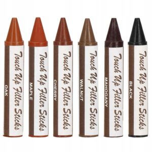 Ati deteriorat mobila preferata de acasa? Nu doriti sa o inlocuiti cu alta noua? Nici o problema – cu kitul de reparatii o puteti face sa arate excelent chiar dvs. in cel mai scurt timp. Selectia mare de culori si ceara va permite sa le asortati la numeroasele furniruri de pe mesele, rafturile sau comodele dumneavoastra. Usor de reparat: pur si simplu umpleti cavitatea cu ceara si apoi desenati pe fibra lemnului cu un marker.