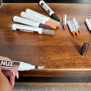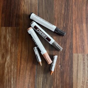Primul strat pentru a repara cavitatea este un creion de ceara semi-dura. Acesta se aplica cu usurinta, iar structura lemnului este vopsita cu cerneala pe baza de ulei. Creionul este rezistent la spalare, astfel incat efectul obtinut dupa reparatie va fi vizibil pentru o perioada lunga de timp. In plus, merita mentionat, nu trebuie sa asteptati mult timp pentru efectul final – markerele sunt cu uscare rapida.