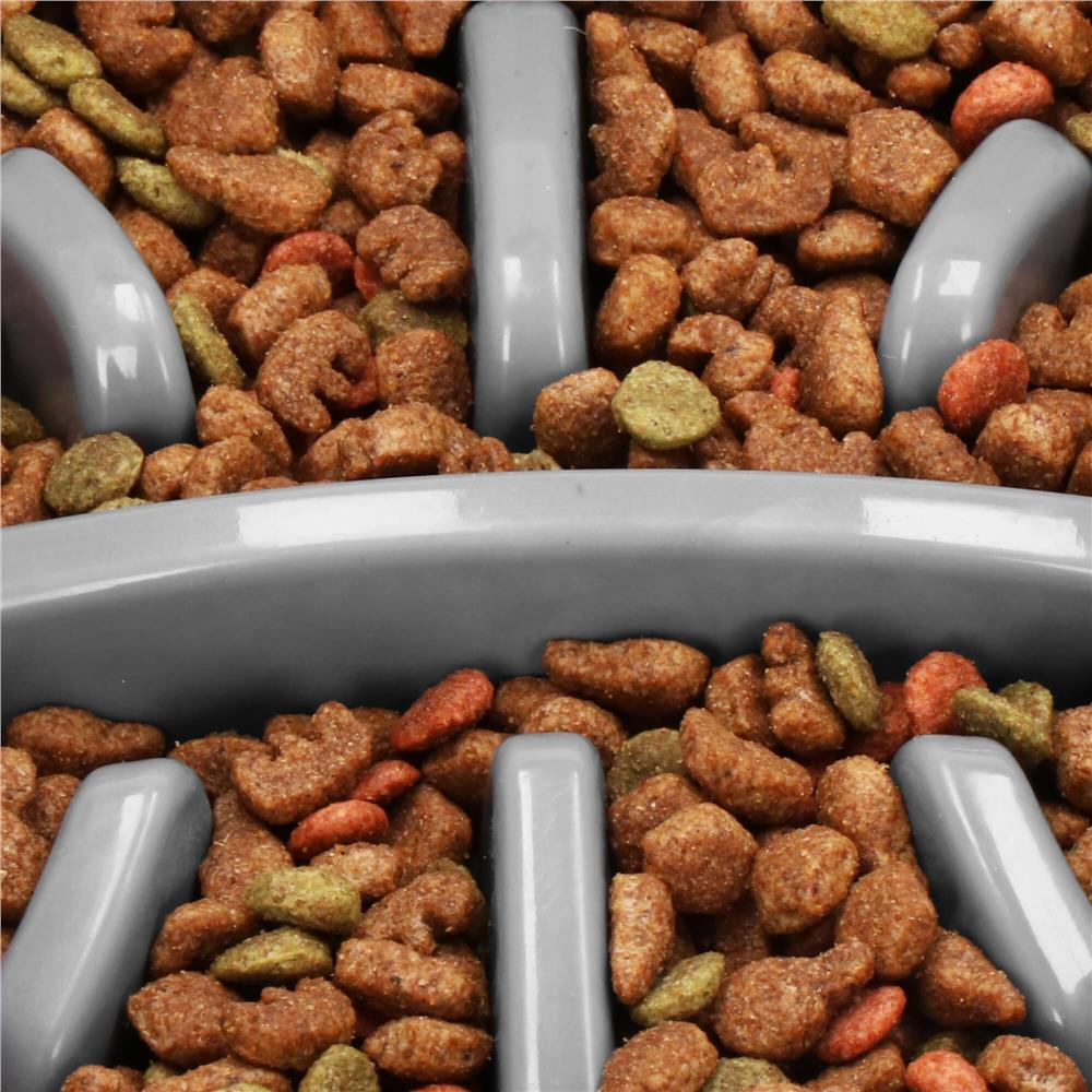 Bolul de mancare pentru caini are un alt beneficiu uimitor – ajuta la incetinirea hranirii si la reducerea stresului. Datorita designului si structurii speciale a bolului, cainele trebuie sa munceasca un pic mai mult pentru a ajunge la rasfat. Acest lucru face ca mancarea sa dureze mai mult, ceea ce este benefic pentru cainii care au tendinta de a inghiti mancarea intreaga. In plus, bolurile lente ii ofera cainelui dvs. un plus de activitate si concentrare, ceea ce ajuta la reducerea stresului si a anxietatii. uteti scoate cu usurinta bolurile pentru mancare si apa din suport si le puteti pune la loc, asa ca spalarea si pastrarea lor curata nu este o problema!