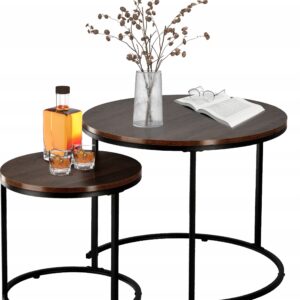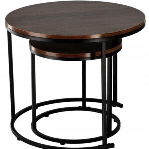 Set 2 mese pentru cafea, cadru otel, blat MDF, 60x60x50 cm si 40x40x40 cm, maro