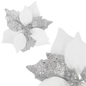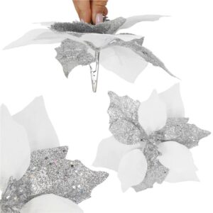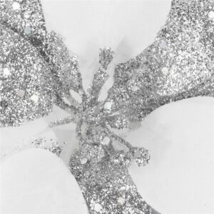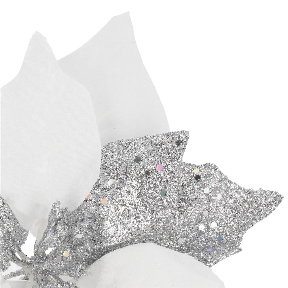 5 db-os karácsonyfa díszkészlet, Mikulásvirág csillag, 23cm, fehér ezüst