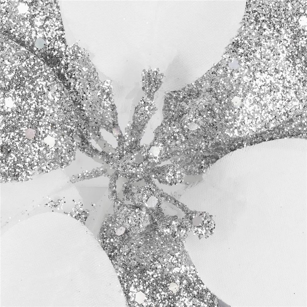 5 db-os karácsonyfa díszkészlet, Mikulásvirág csillag, 23cm, fehér ezüst termékről 1 értékelés
