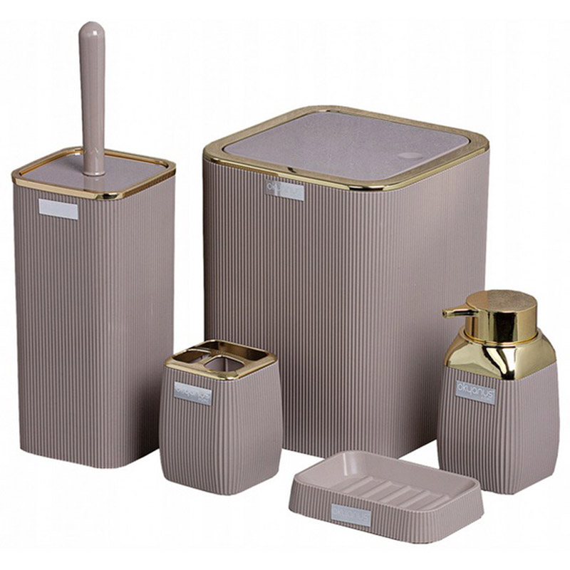Négyzet alakú műanyag fürdőszobai kiegészítő készlet, 5 db, bézs