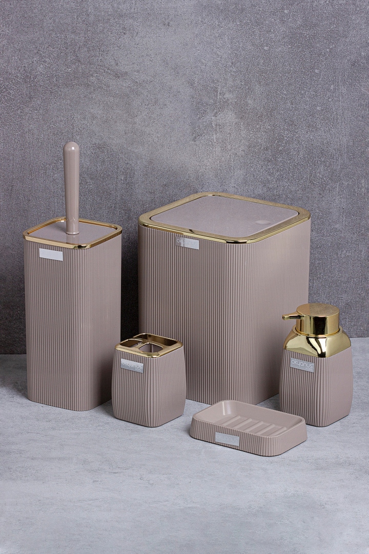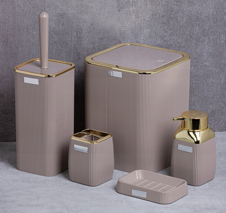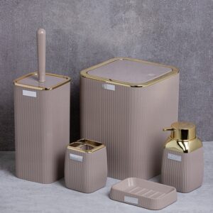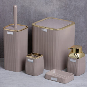 „Négyzet alakú műanyag fürdőszobai kiegészítő készlet, 5 db, bézs” értékelése elsőként