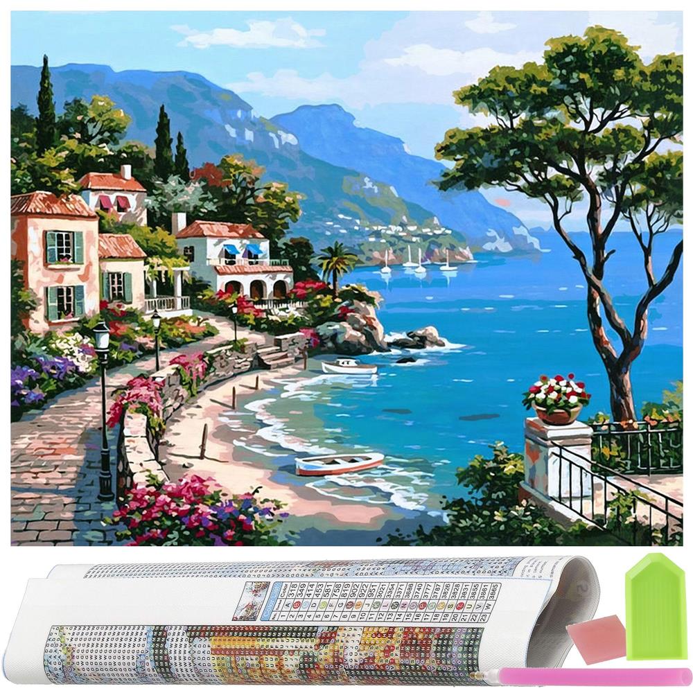Set de broderie cu diamante 5D, 30x40cm, model Lac Como