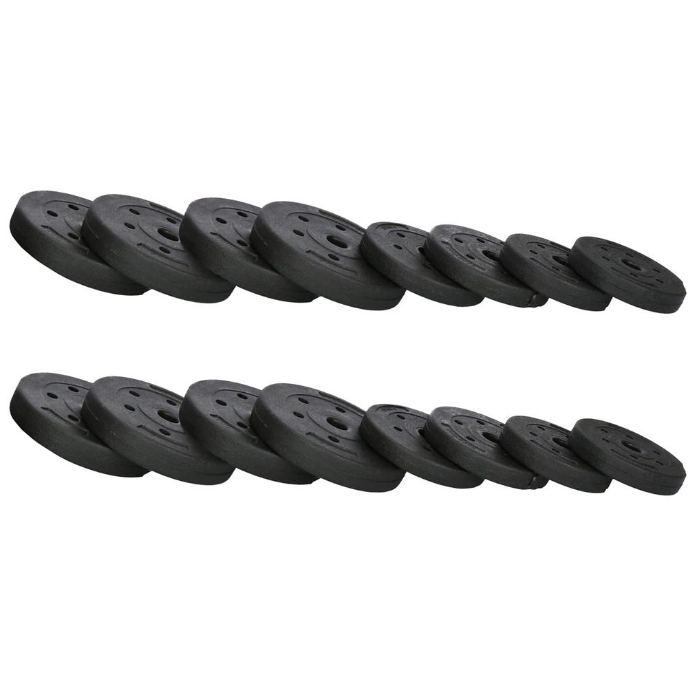 - Az egyes tárcsák súlya: 8x 2,5 kg; 4x 1,25 kg; 4 x 1 kg
