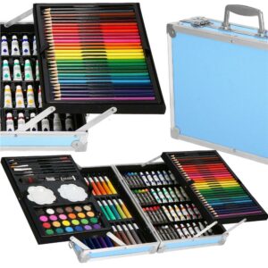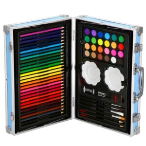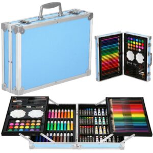 Setul de arta are un total de 145 de elemente! Datorita diverselor accesorii pentru desen sau pictura, cel mai tanar membru al familiei isi va trezi creativitatea si va crea minunate opere de arta.