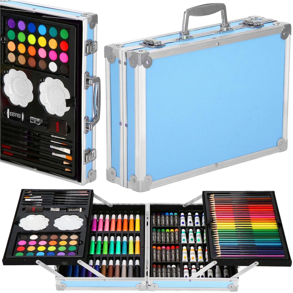 Setul de arta este ascuns in intregime in valiza, care a fost produsa in mod estetic. Copilul mic o poate lua cu incredere cu el oriunde cu ajutorul manerului de transport. La gradinita, la bunici, in vacanta sau chiar in aer liber.