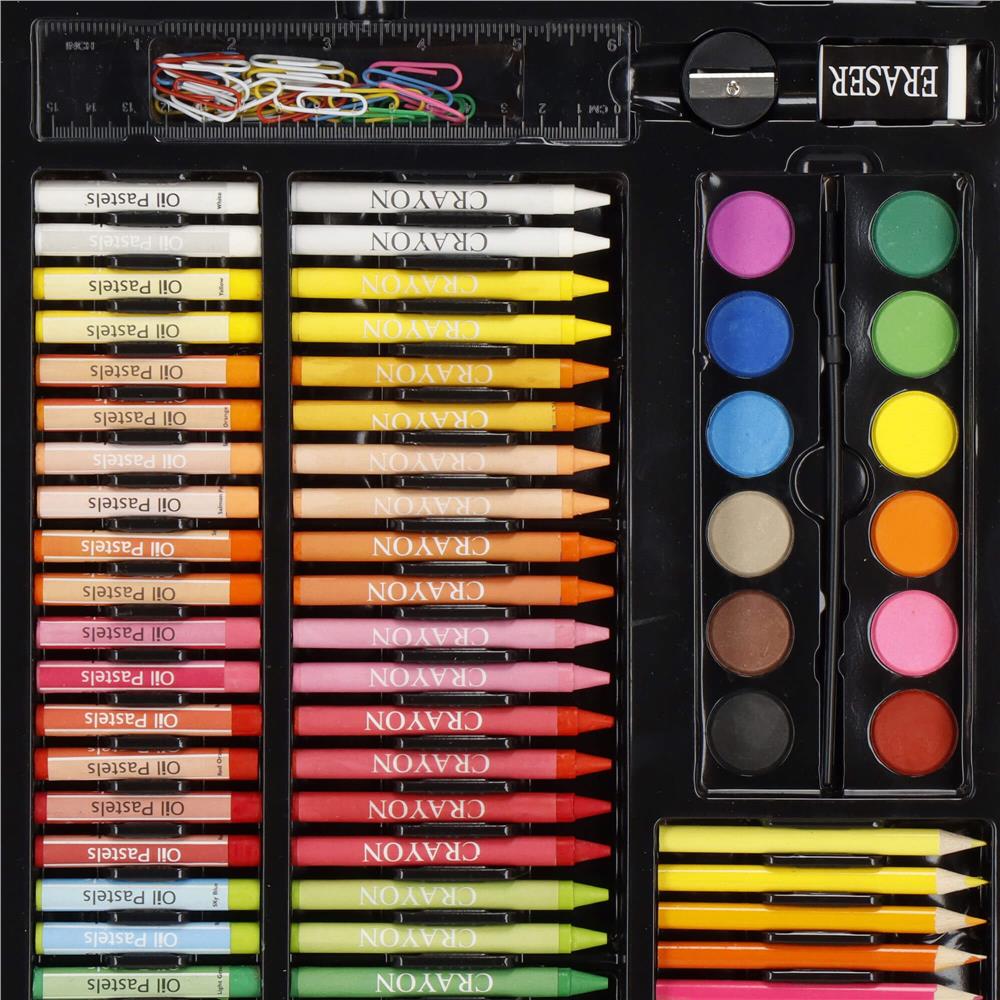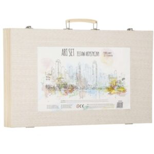 Setul de arta este complet ascuns in valiza, care a fost produsa in mod estetic. Copilul mic o poate lua cu incredere cu el oriunde cu ajutorul manerului de transport. La gradinita, la bunici, in vacanta sau chiar in aer liber.