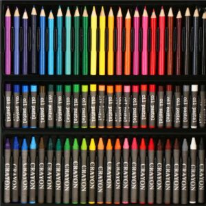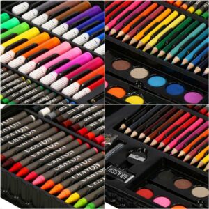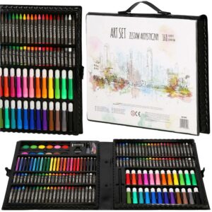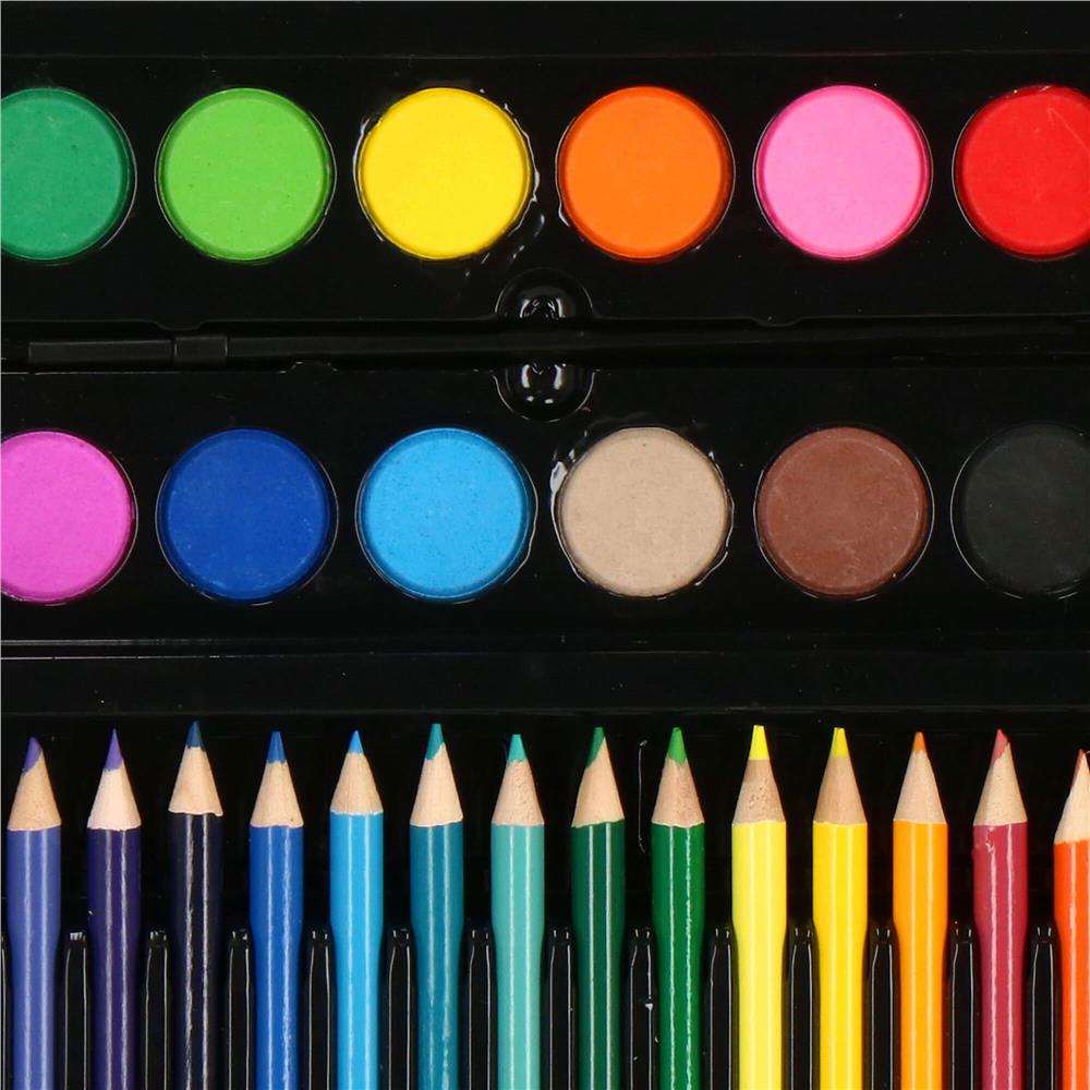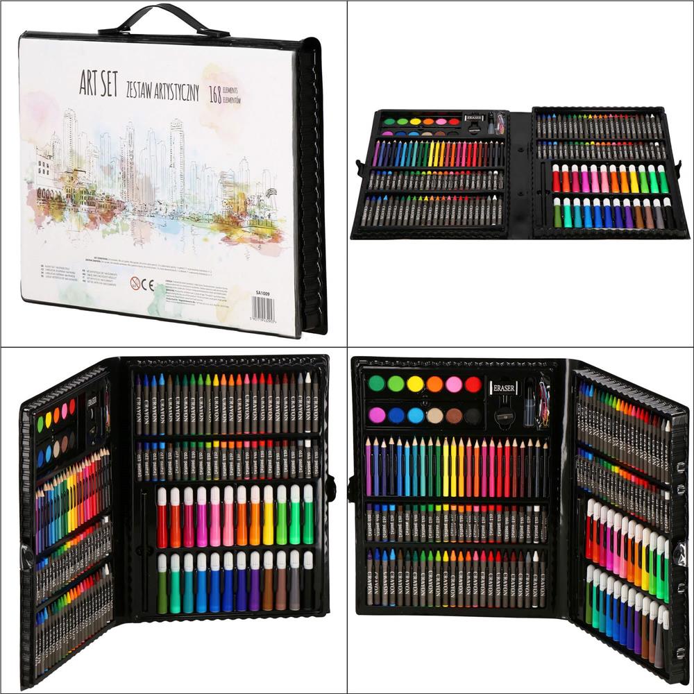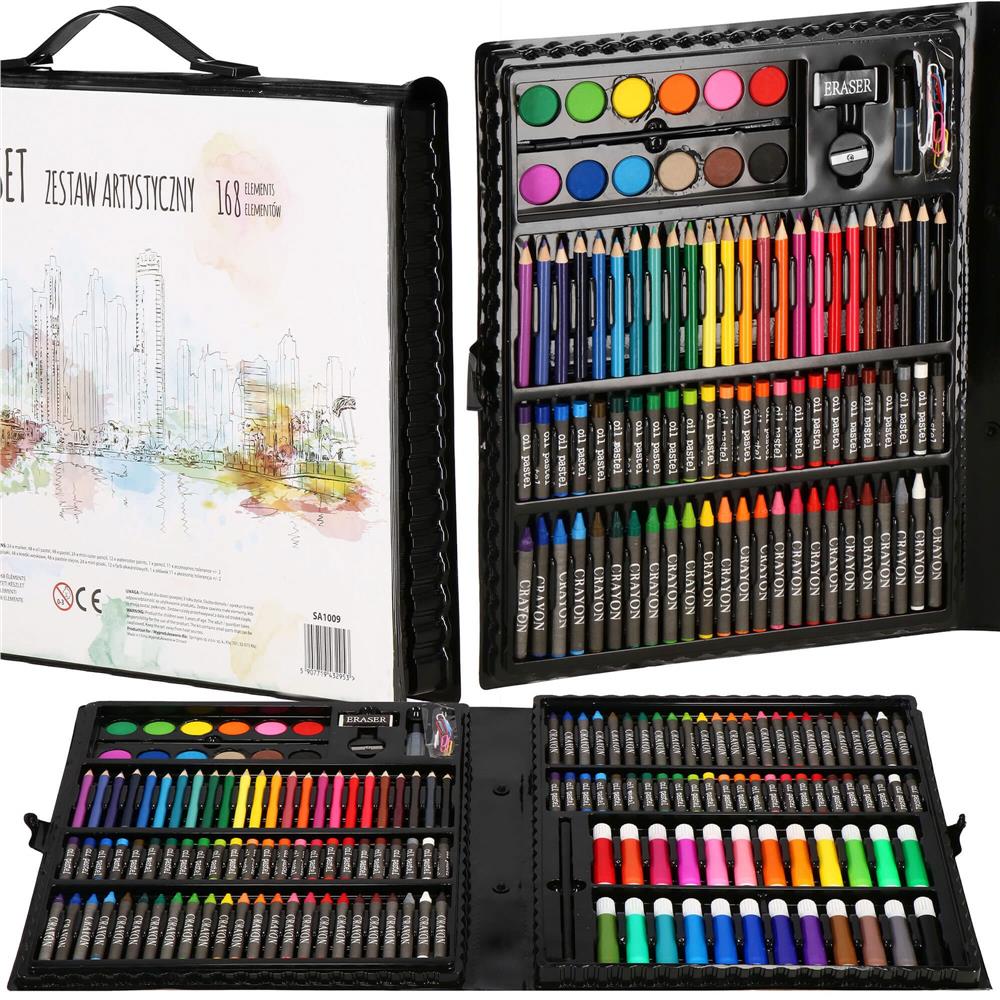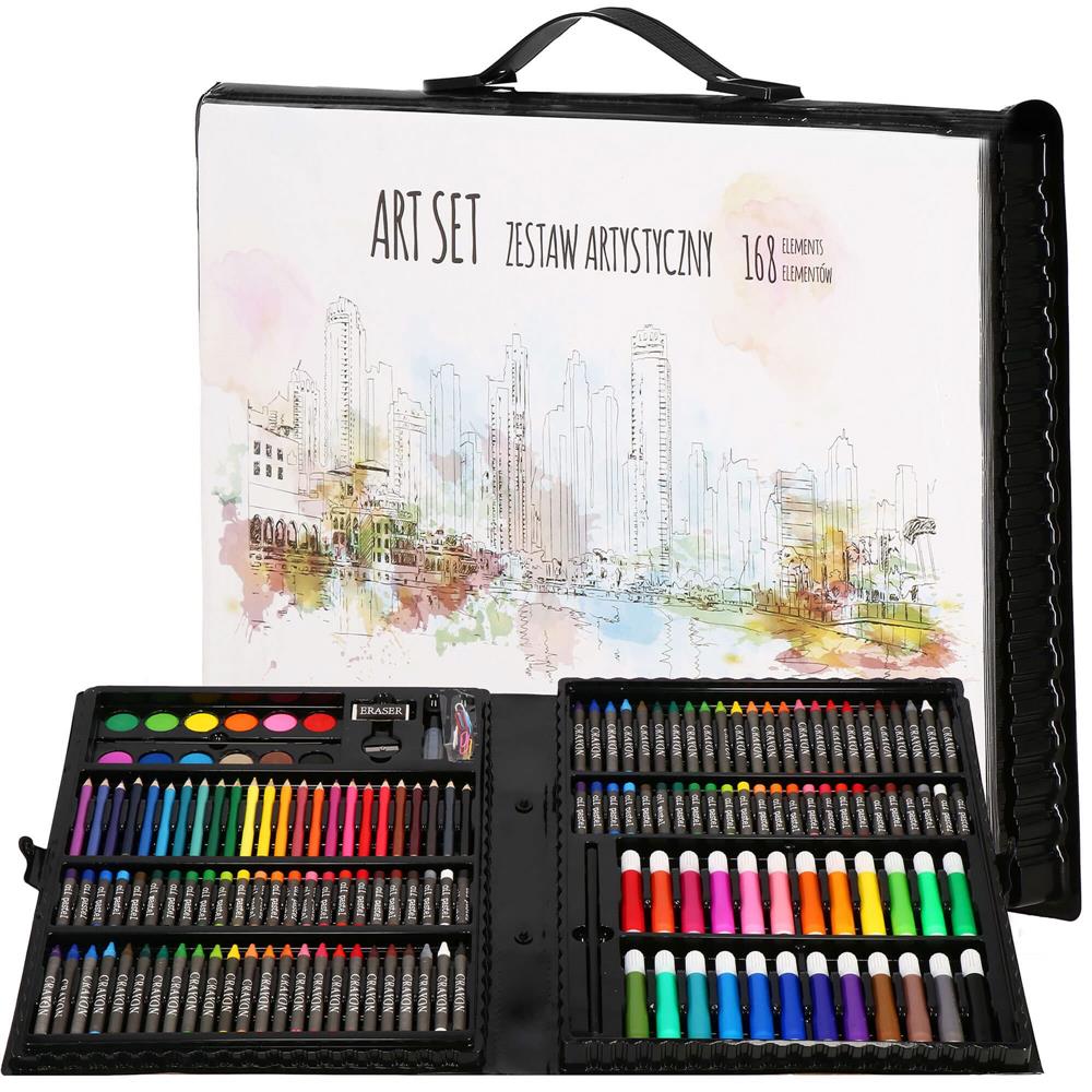 Setul de arta are un total de 168 de elemente! Datorita diverselor accesorii pentru desen sau pictura, cel mai tanar membru al familiei isi va trezi creativitatea si va crea minunate opere de arta.