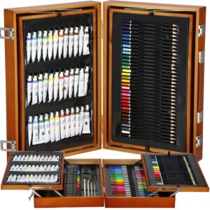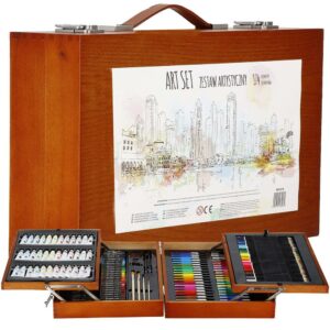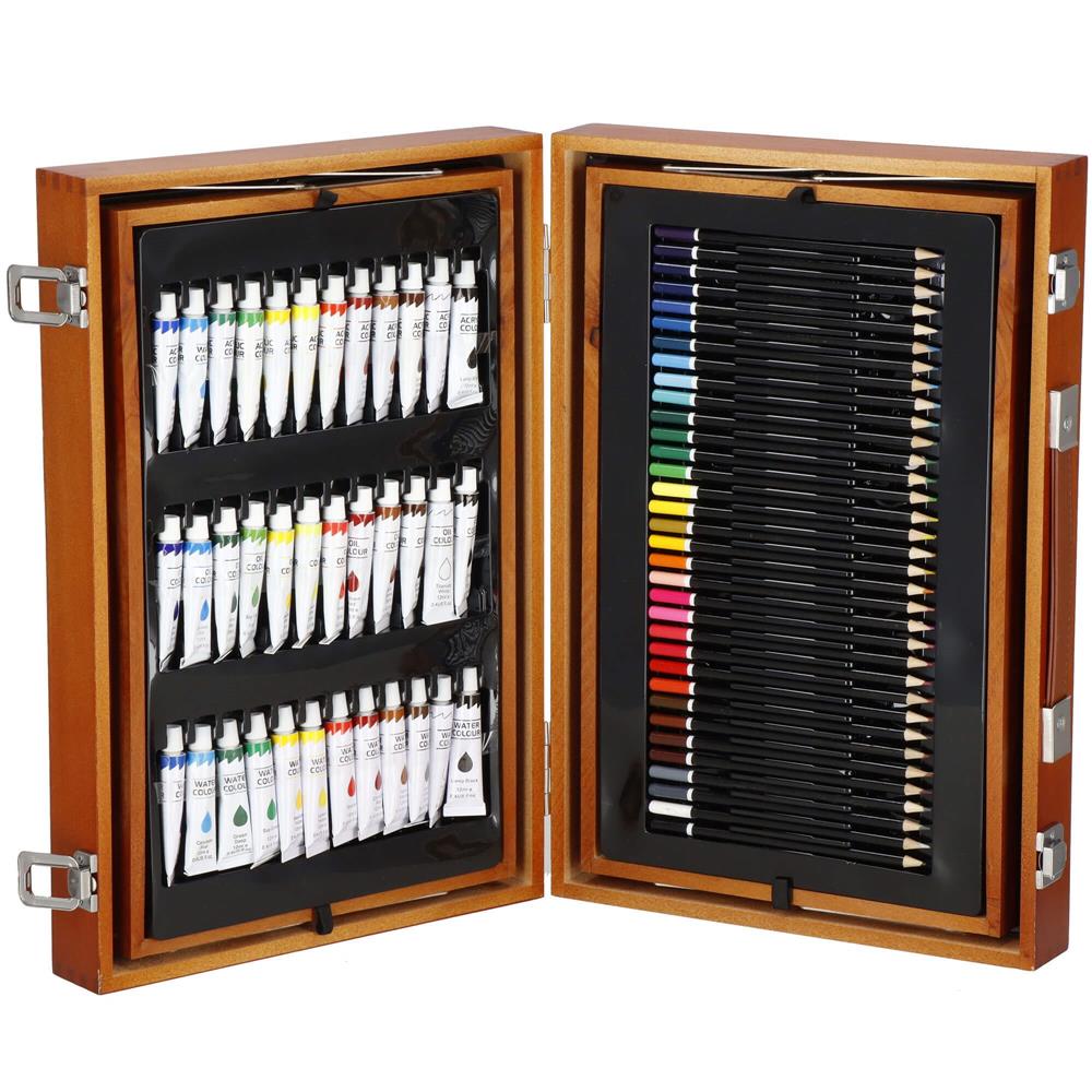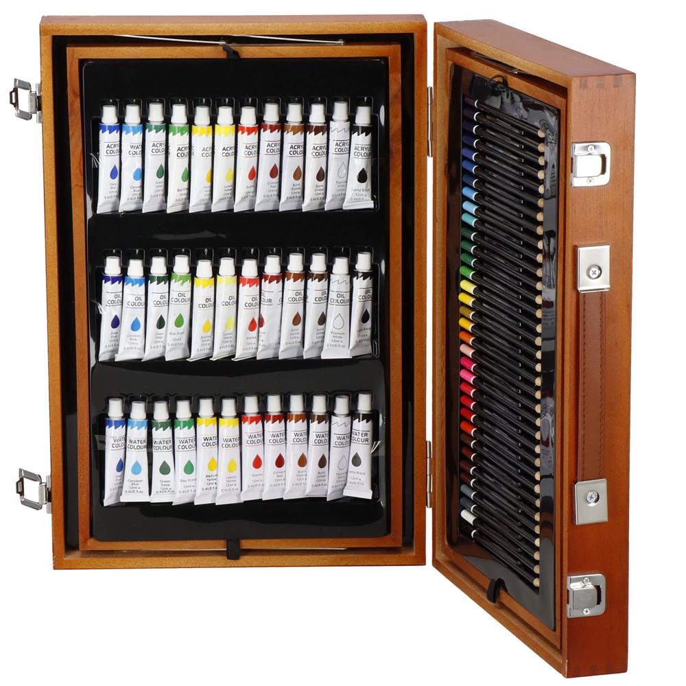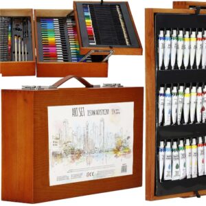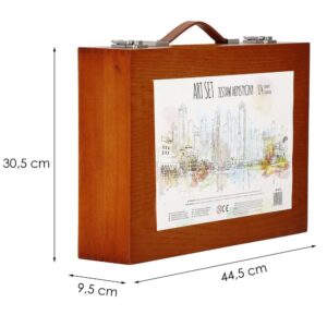 Setul de arta are un total de 174 de elemente! Datorita diverselor accesorii pentru desen sau pictura, cel mai tanar membru al familiei isi va trezi creativitatea si va crea minunate opere de arta.