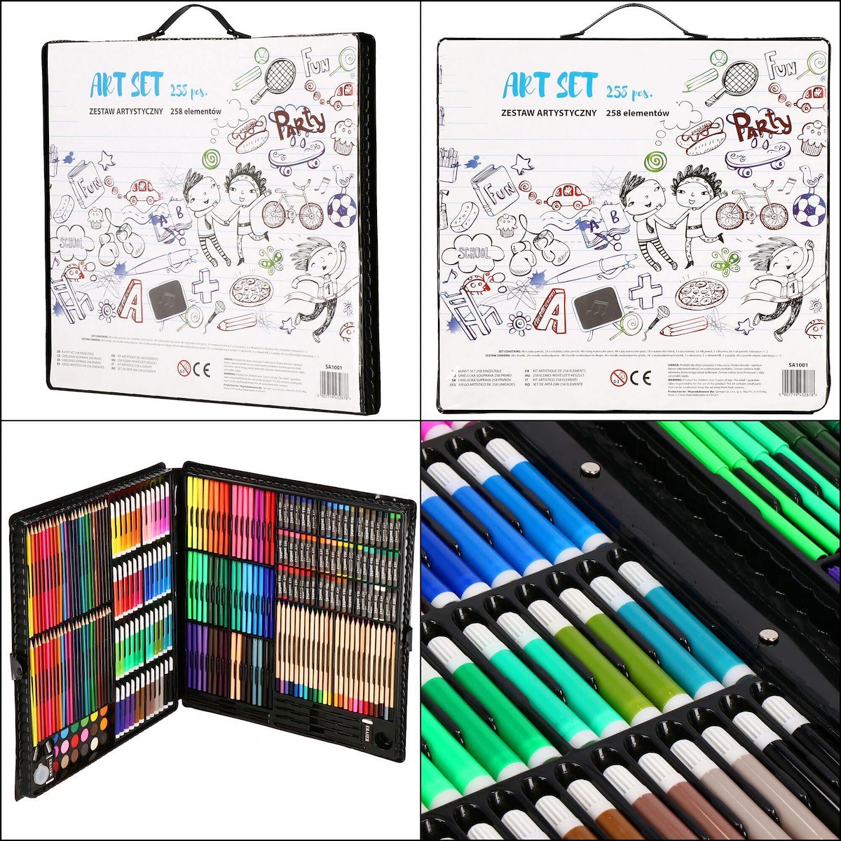 Set de pictura si desen pentru copii, 258 de piese, trusa plastic