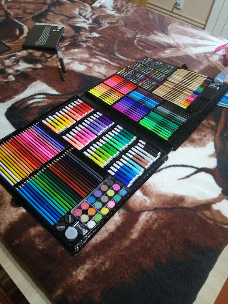 Am luat cadou pt nepotica. Setul e foarte mare, contine tot ce are nevoie un copil pt desenat. Calitate creioane buna.