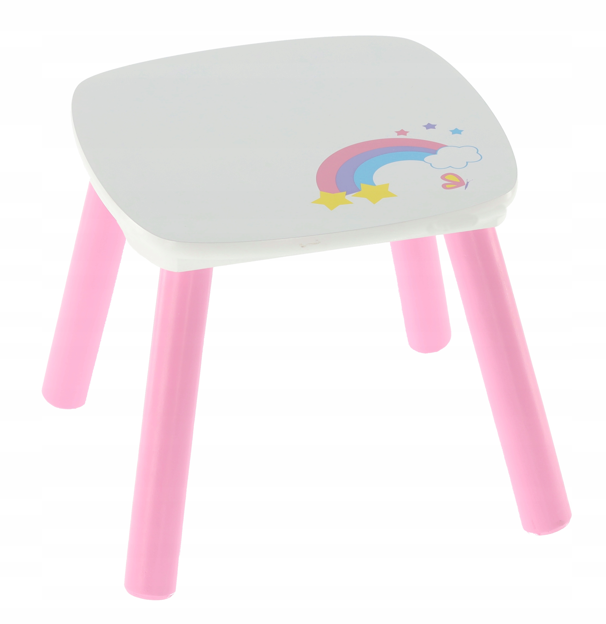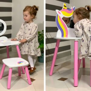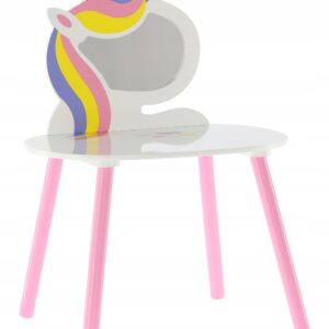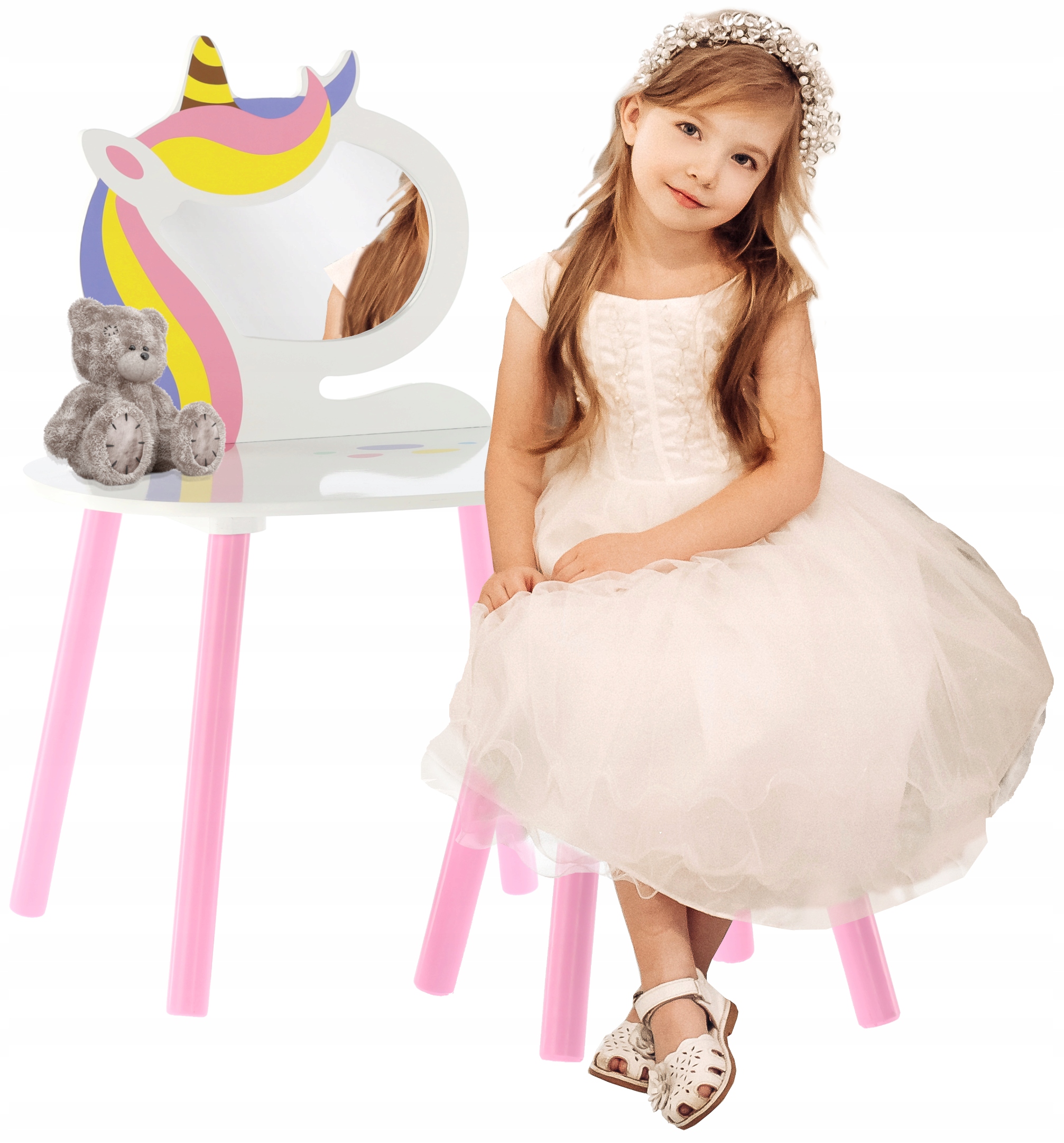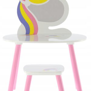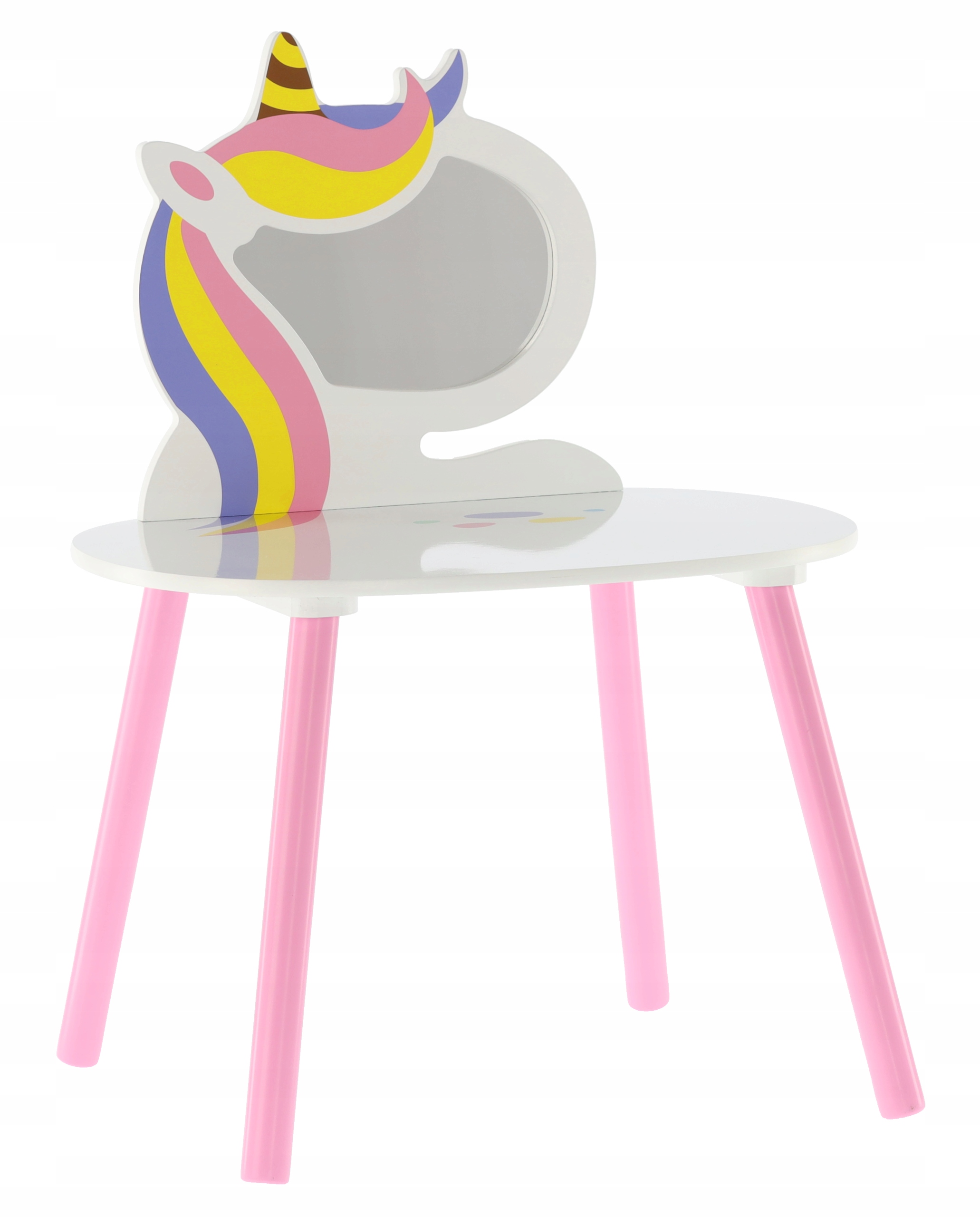 A tömör fából készült szivárványmintás fehér fésülködőasztal minden lány számára tökéletes bútor. A fésülködőasztal olyan helyként funkcionál majd, ahol gyermeke csodálatos alkotásai születnek. Ezzel a lánya elkezdi fejleszteni kreativitását. A készlet szivárványmintás széket tartalmaz. A lábak fenyőfából, az ülés pedig MDF-ből készült.