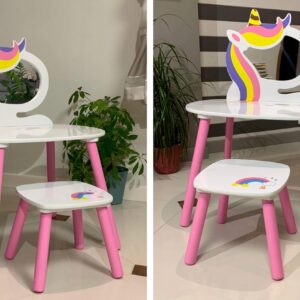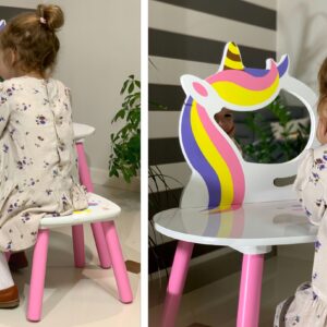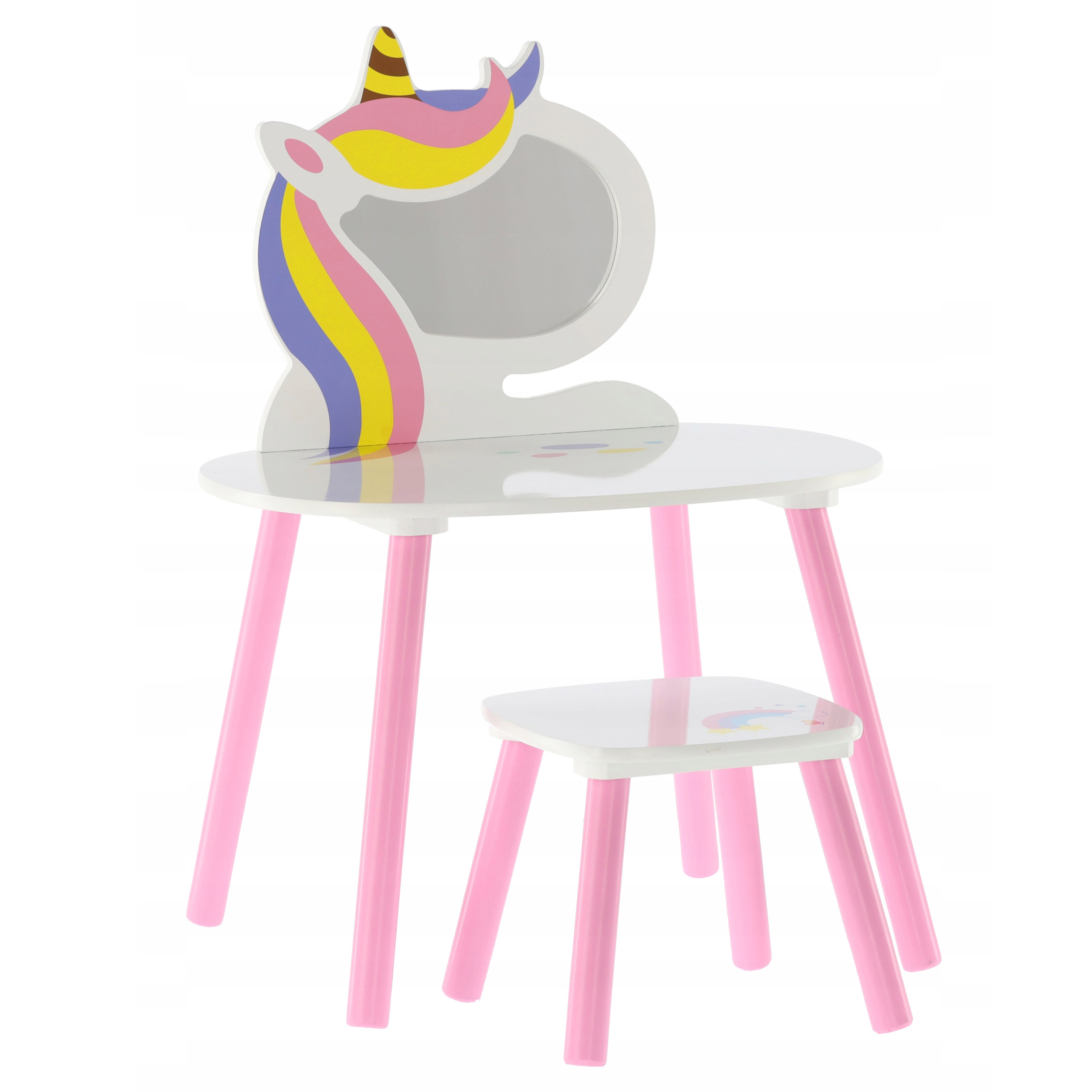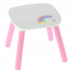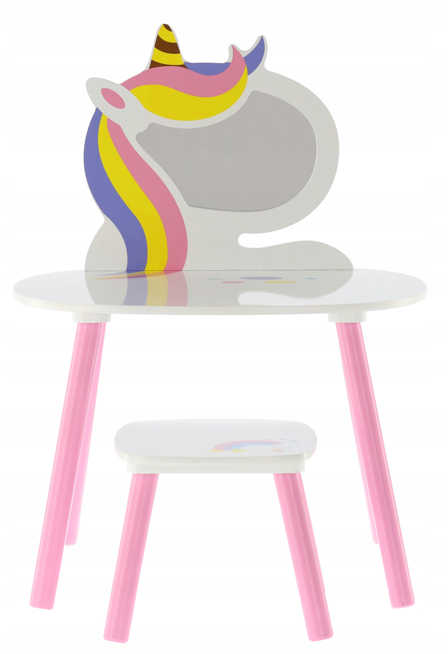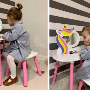 A tömör fából készült szivárványmintás fehér fésülködőasztal minden lány számára tökéletes bútor. A fésülködőasztal olyan helyként funkcionál majd, ahol gyermeke csodálatos alkotásai születnek. Ezzel a lánya elkezdi fejleszteni kreativitását. A készlet szivárványmintás széket tartalmaz. A lábak fenyőfából, az ülés pedig MDF-ből készült.