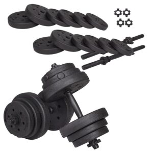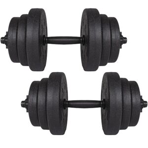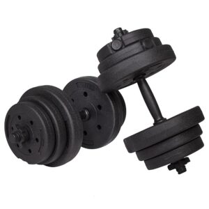 Az állítható súlyzókkal ellátott súlyzós edzőkészlet tökéletes fitneszfelszerelés az otthoni edzéshez. A legjobb minőségű anyagokból készültek, így sokáig bírják. Greutatile bituminoase incluse in set va vor permite sa ajustati individual ganterele la capacitatile dvs. actuale. Amint a gyakorlatok könnyebbé válnak, a jobb edzési eredmények érdekében hozzáadhat egy másik tányért.