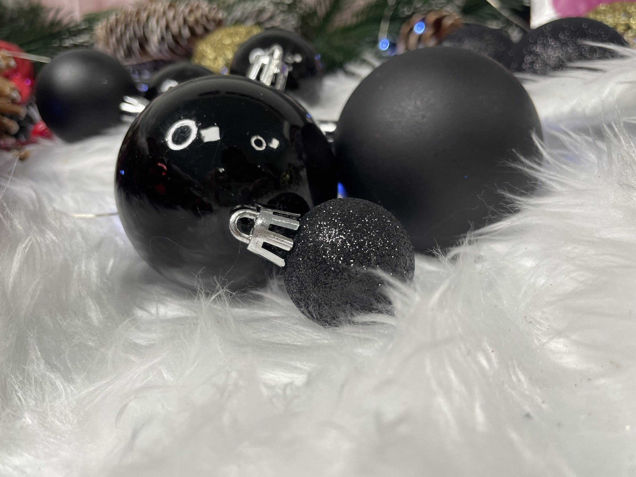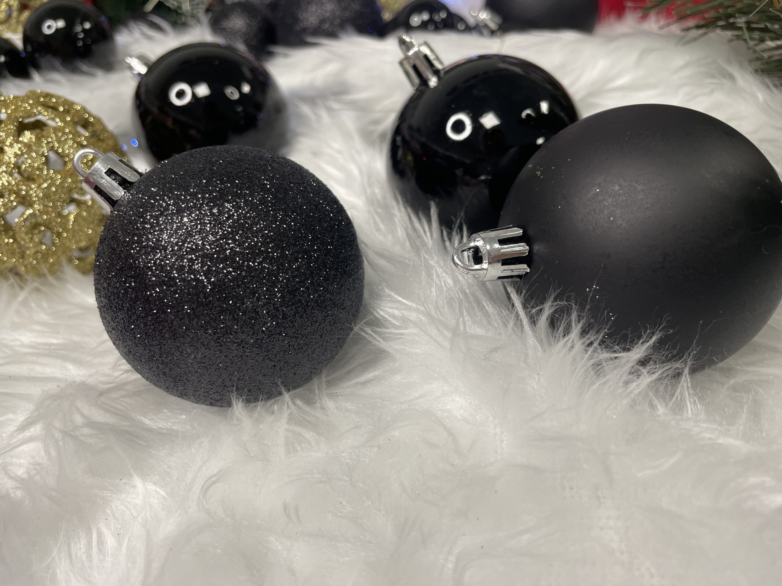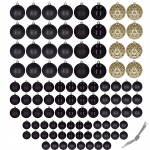 Set globuri de Craciun, 100 bucati, 3-6cm, negru auriu