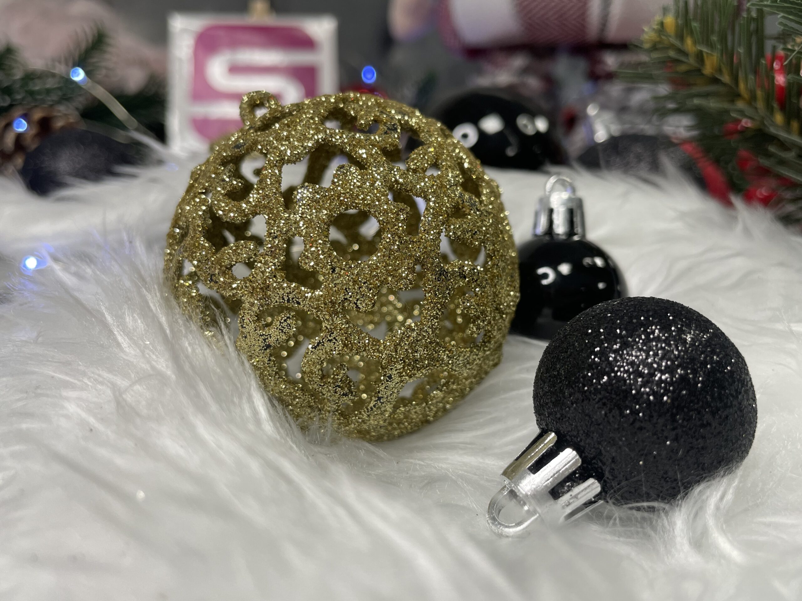 • 8 x Glob mare (auriu, ajurat) – 6 cm