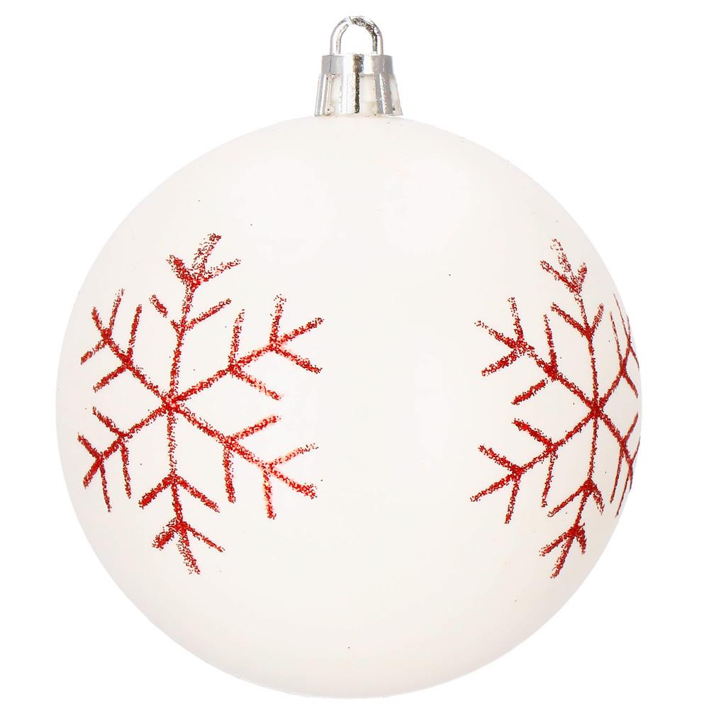 - 2x glob rosu mat cu model fulgi de nea cu sclipici – 8 cm