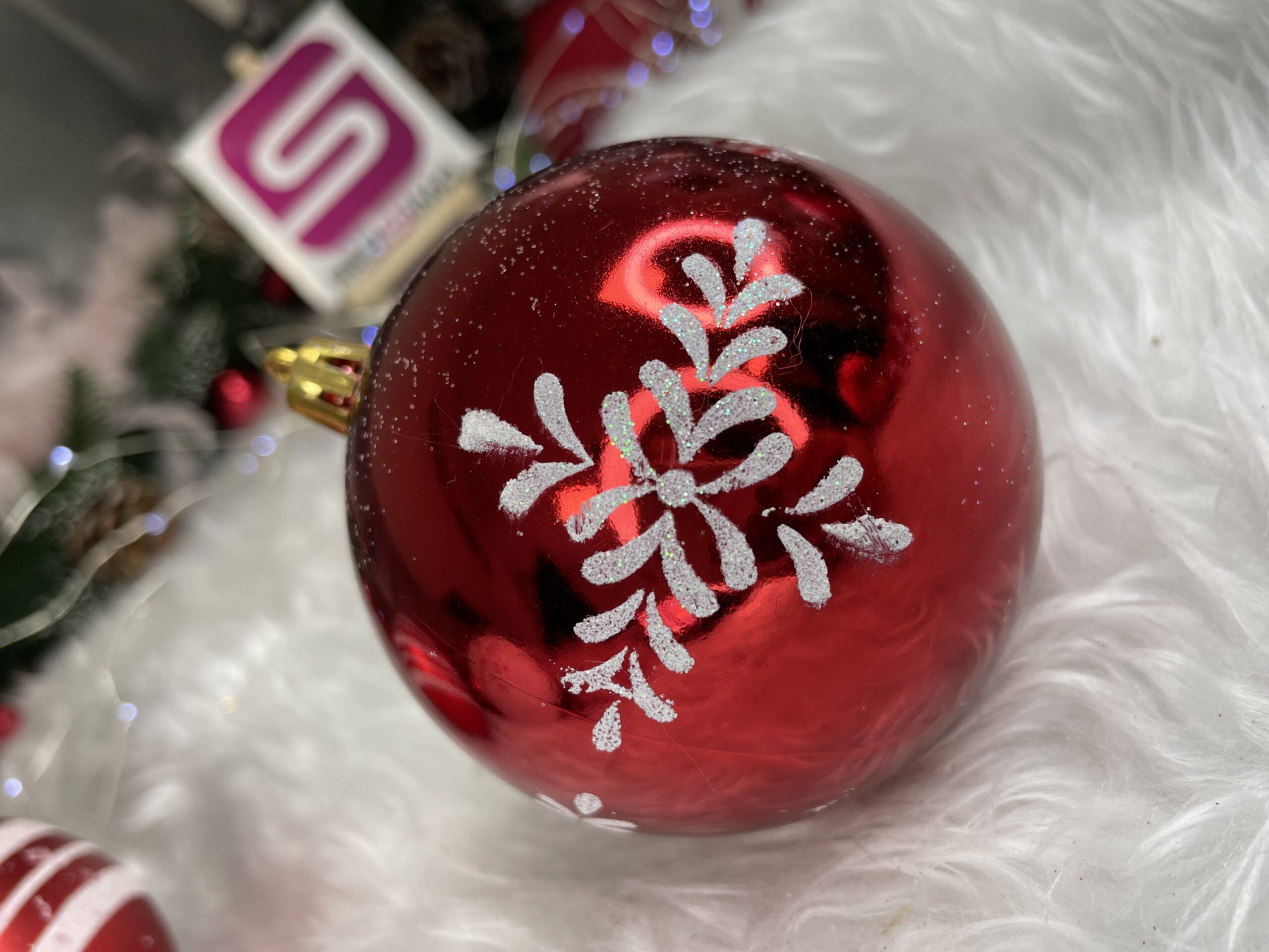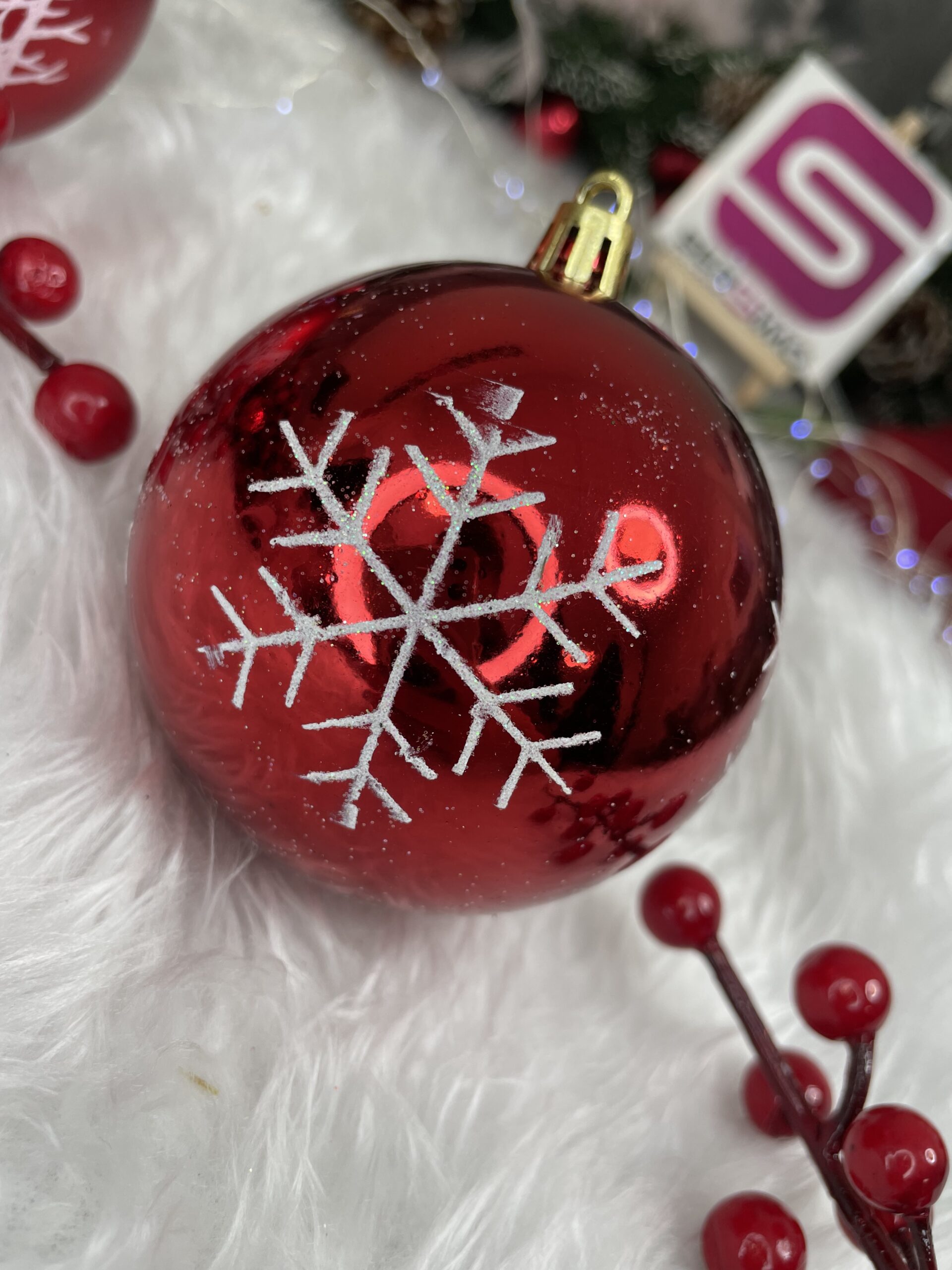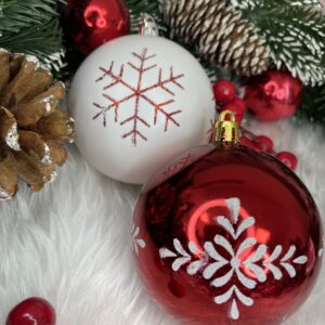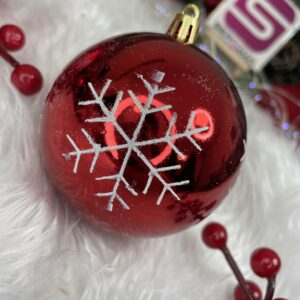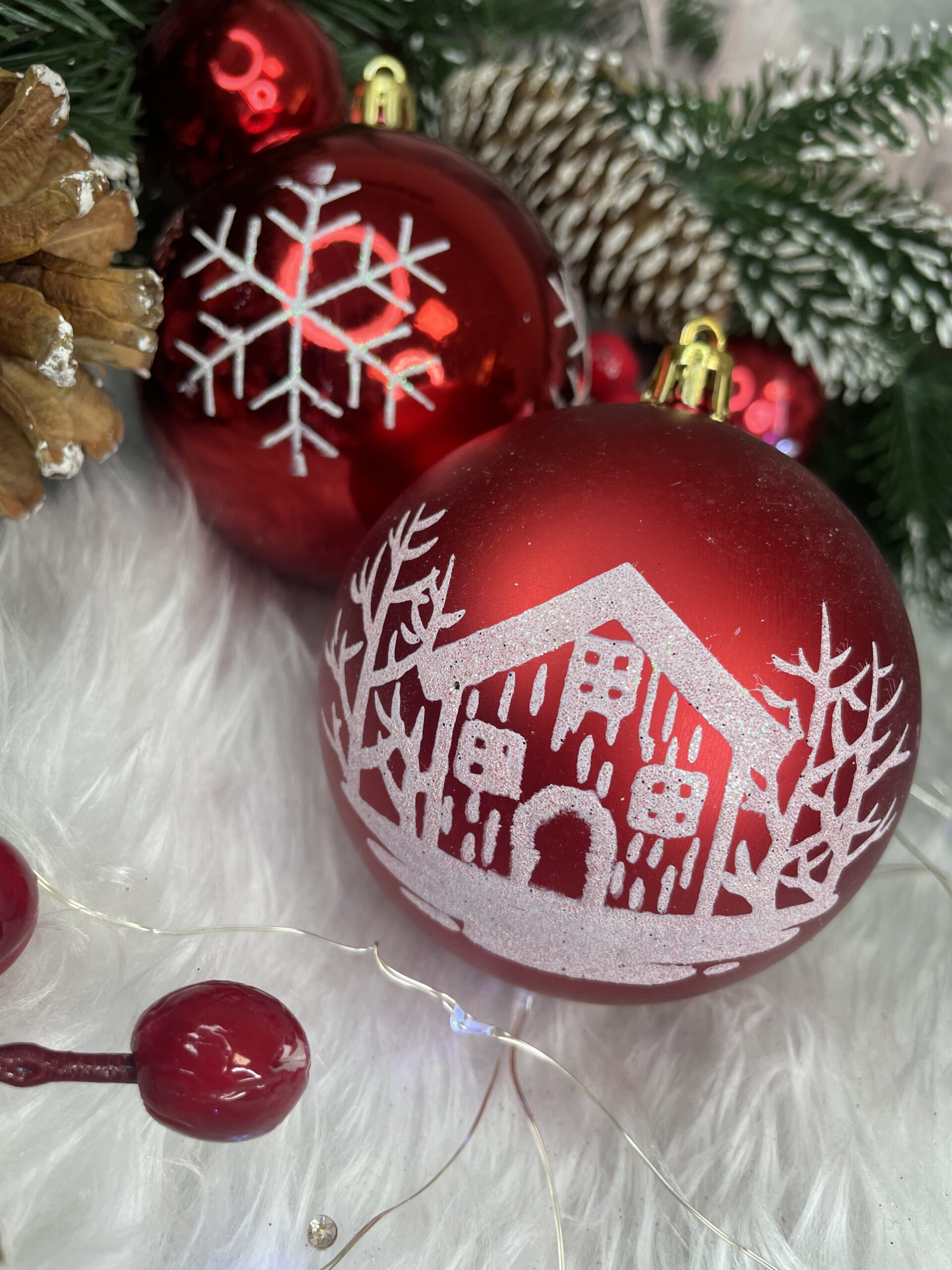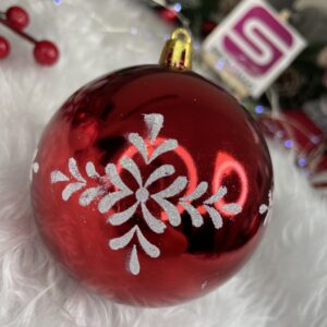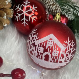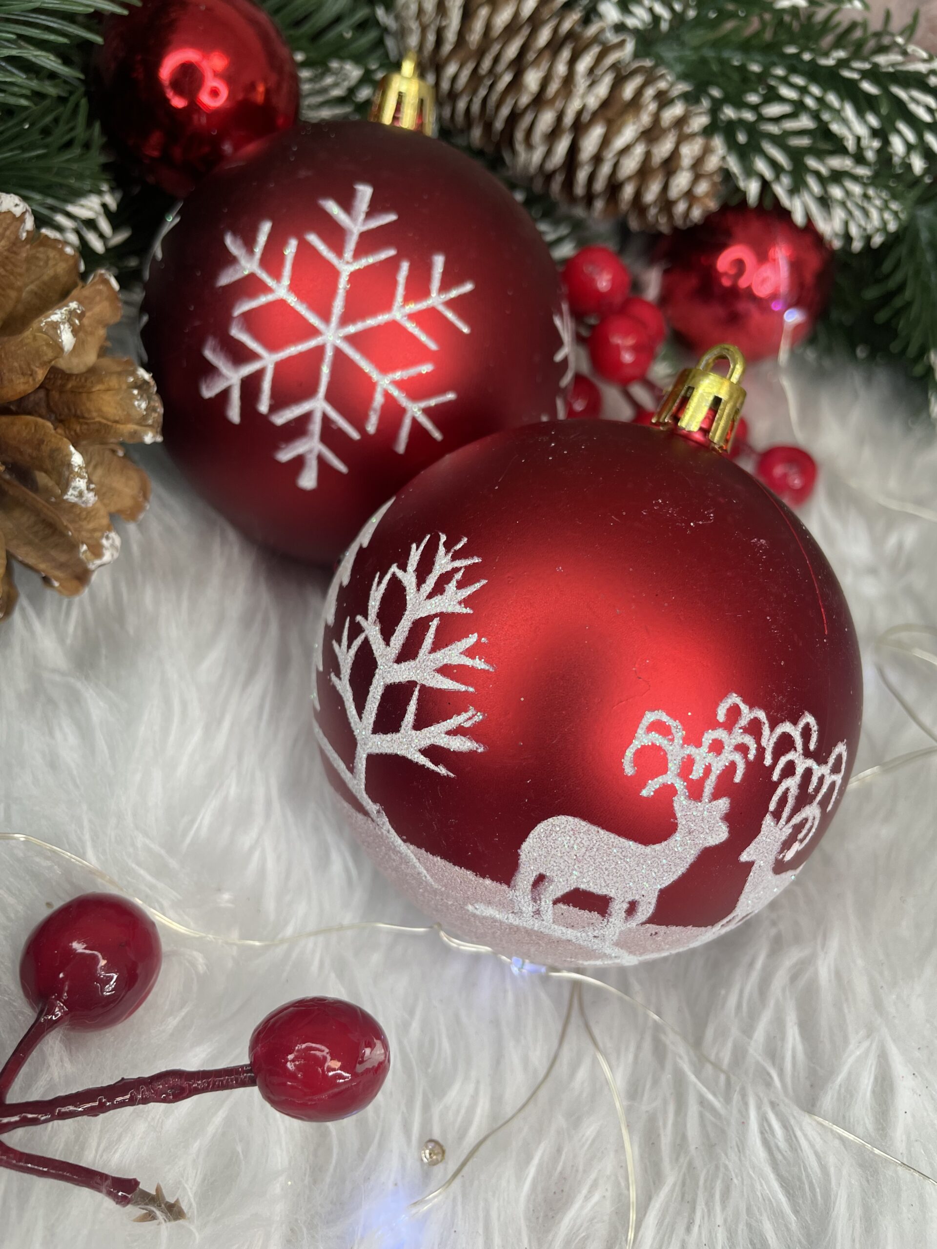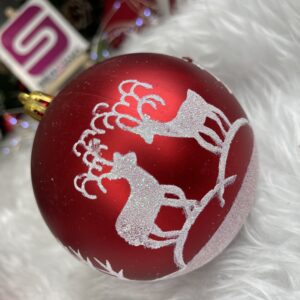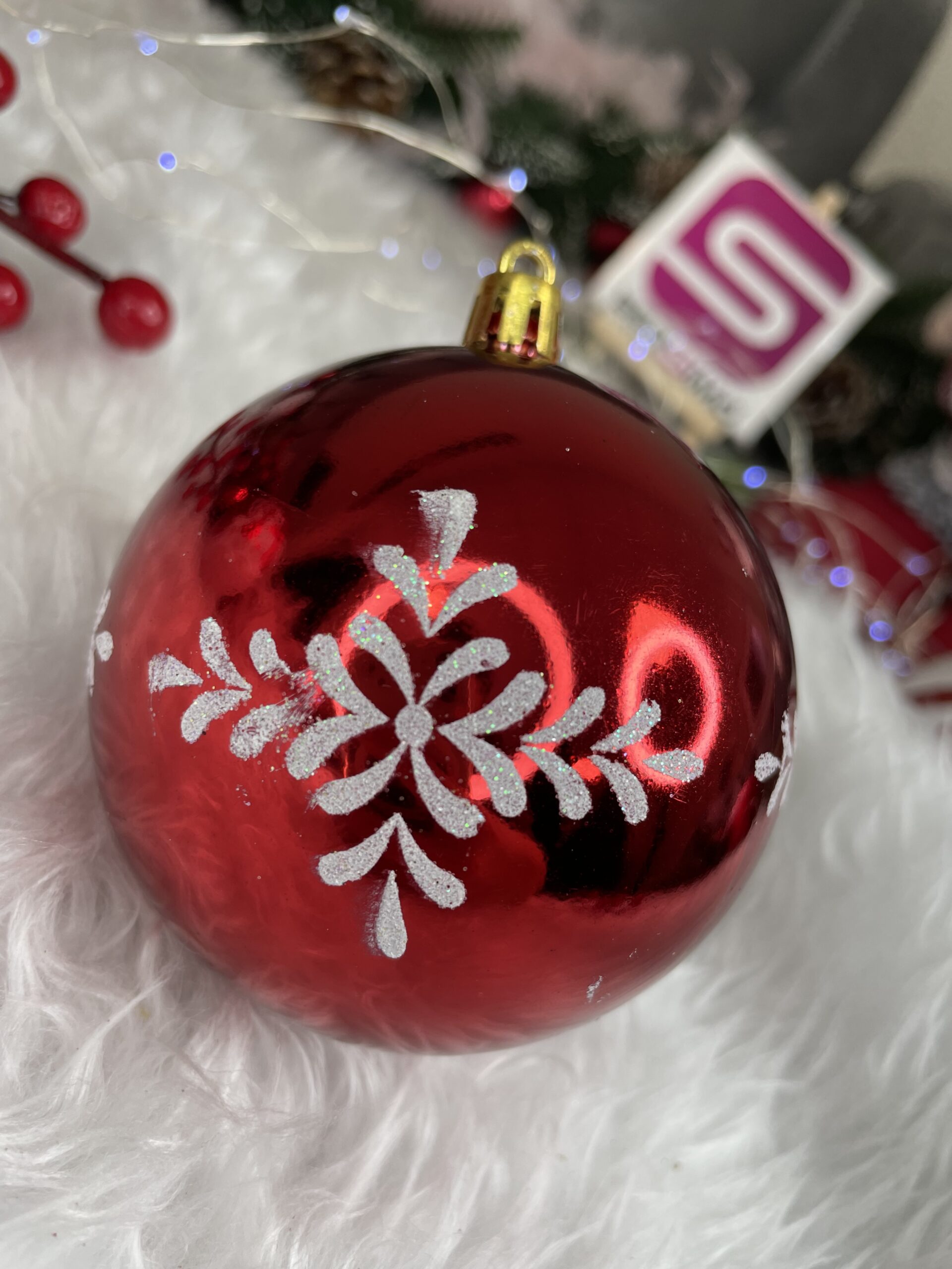 - 2x glob rosu lucios cu model de Craciun – 8 cm