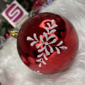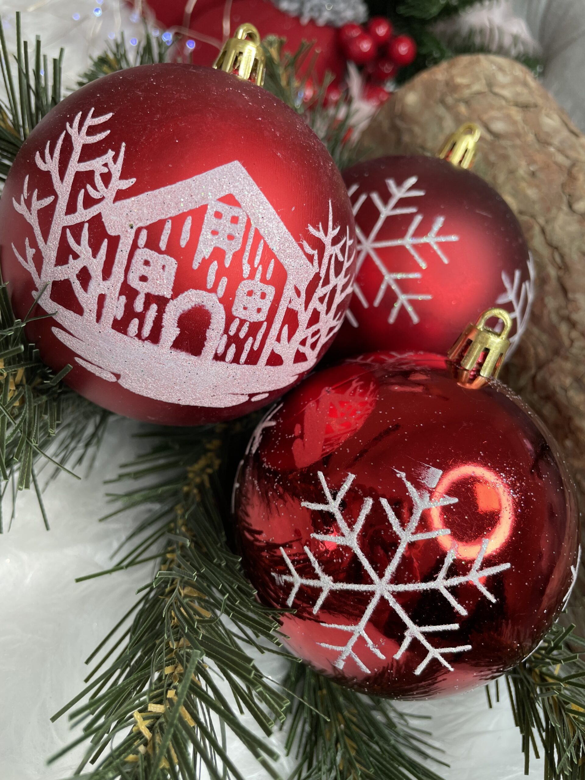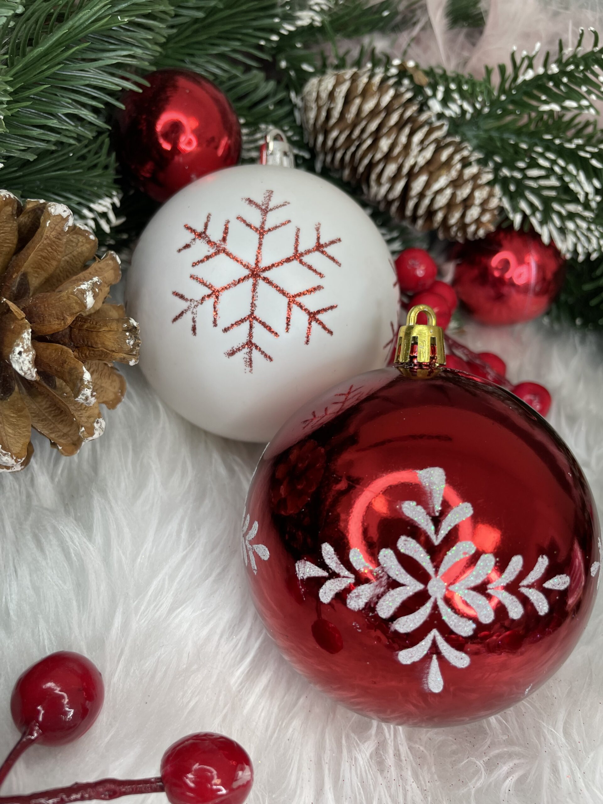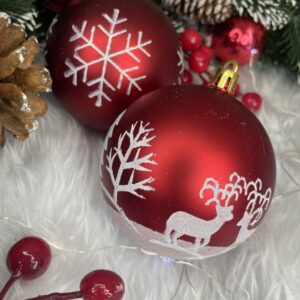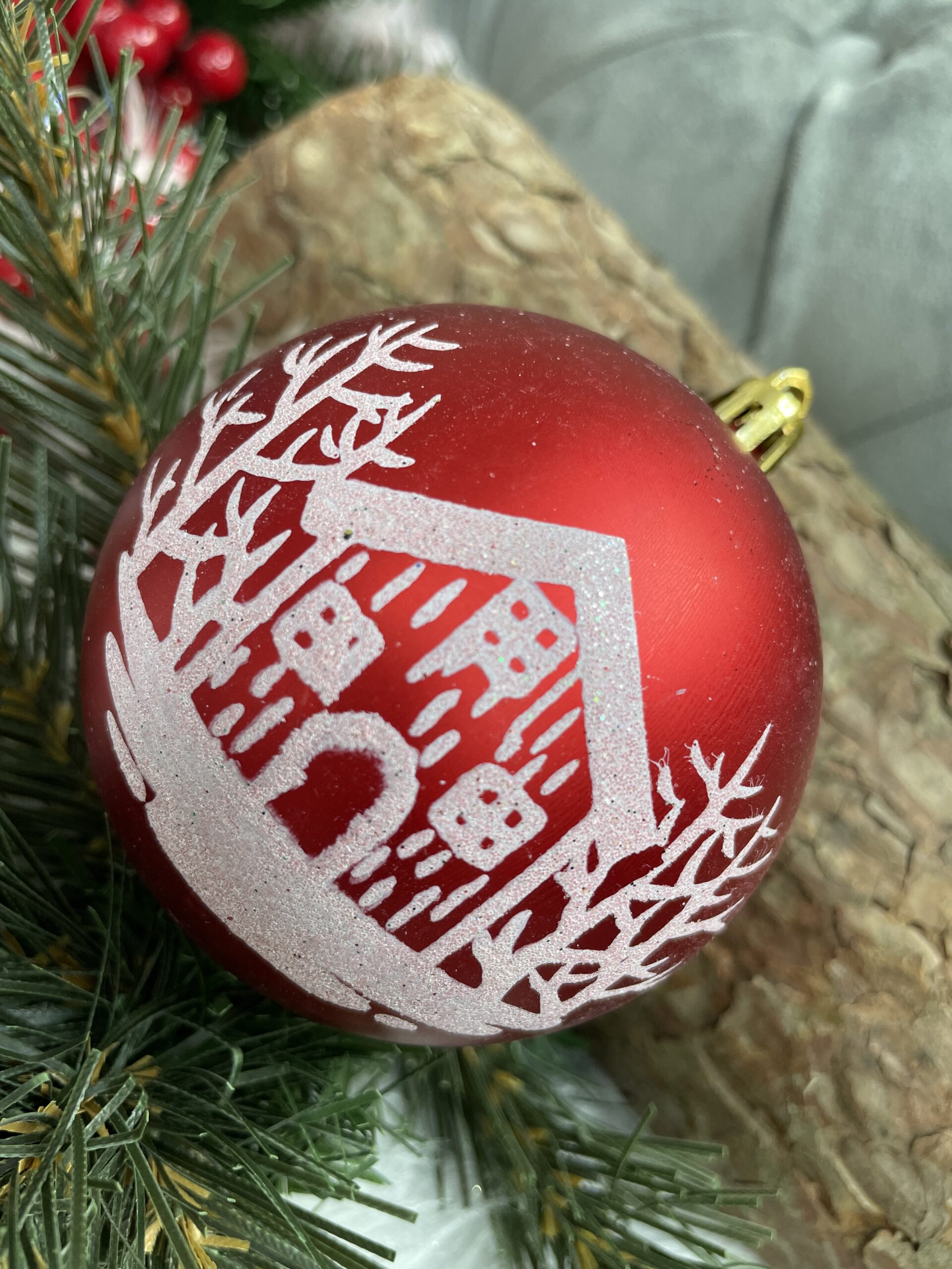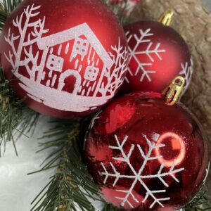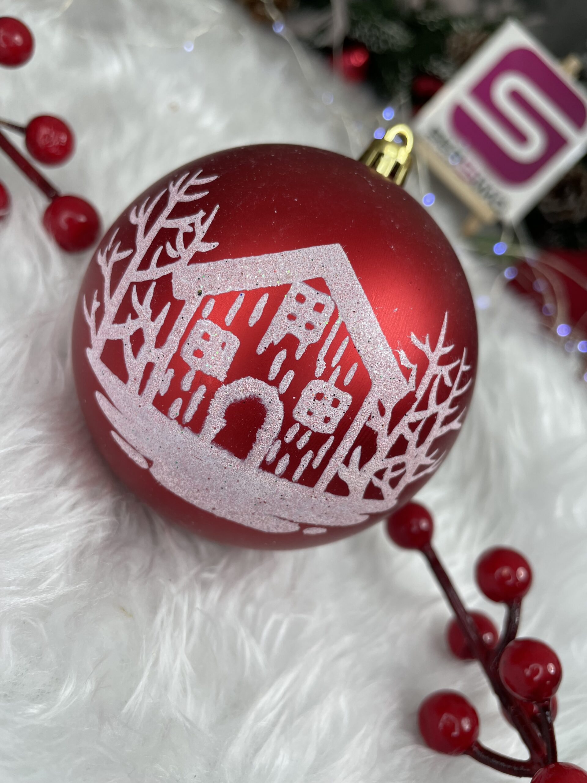 - 2x glob rosu lucios cu model de Craciun – 8 cm