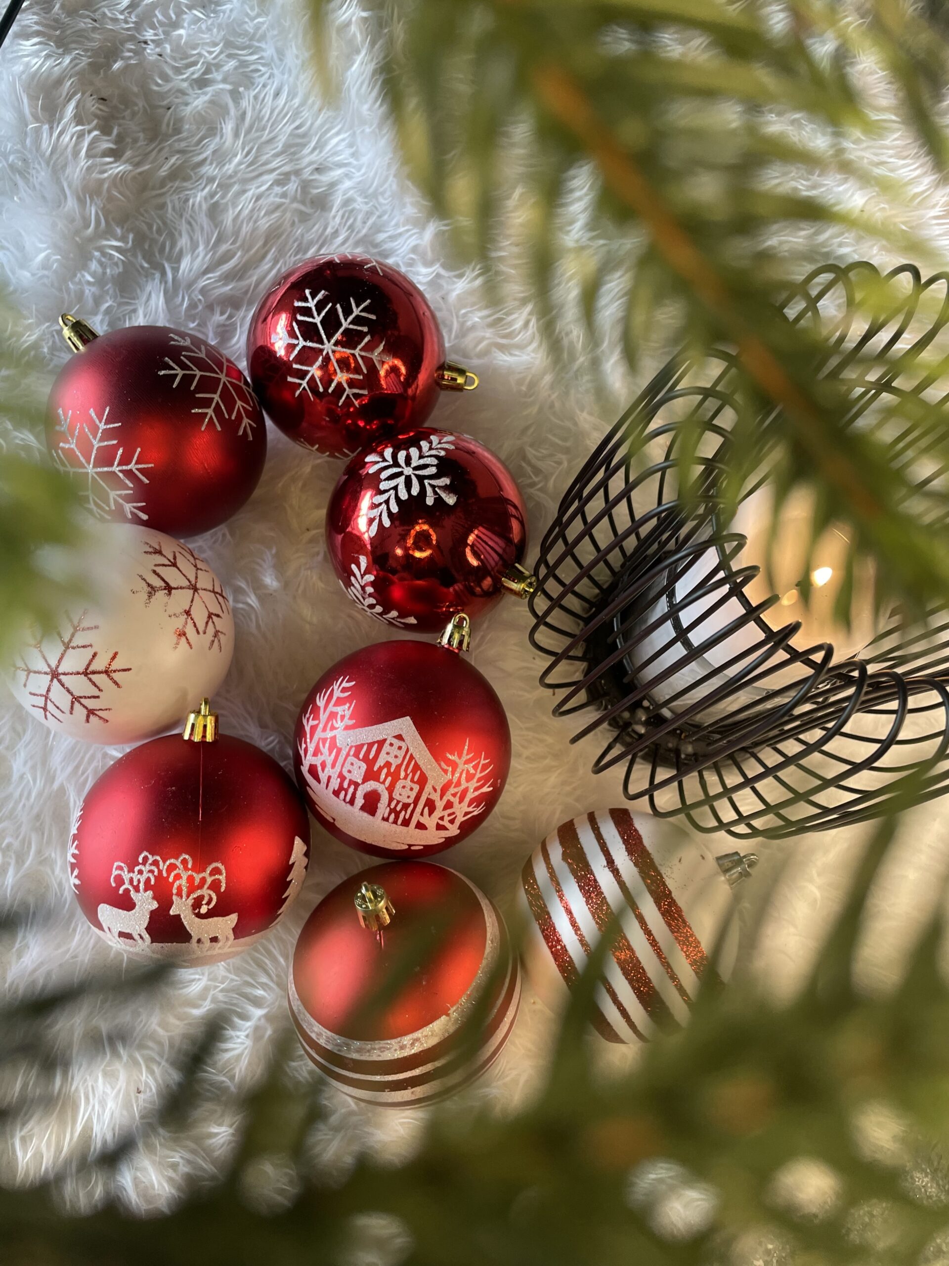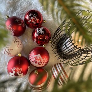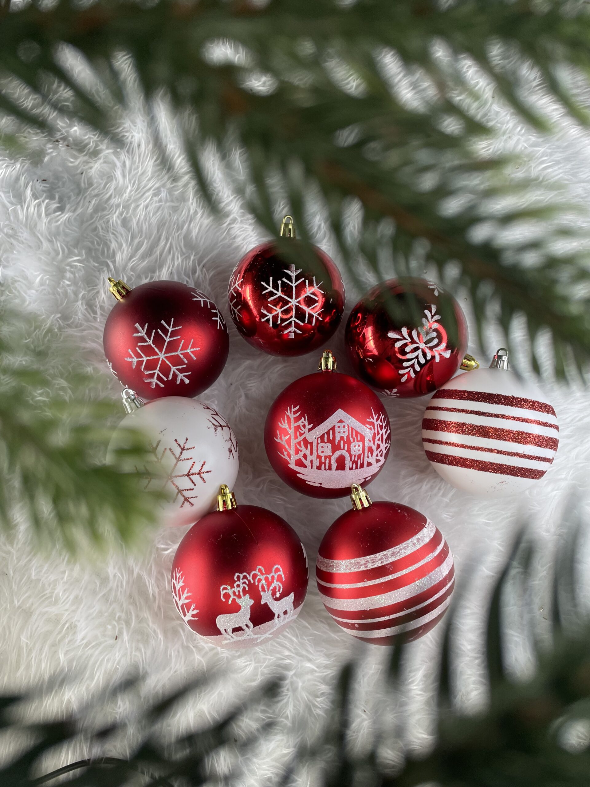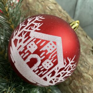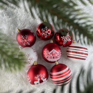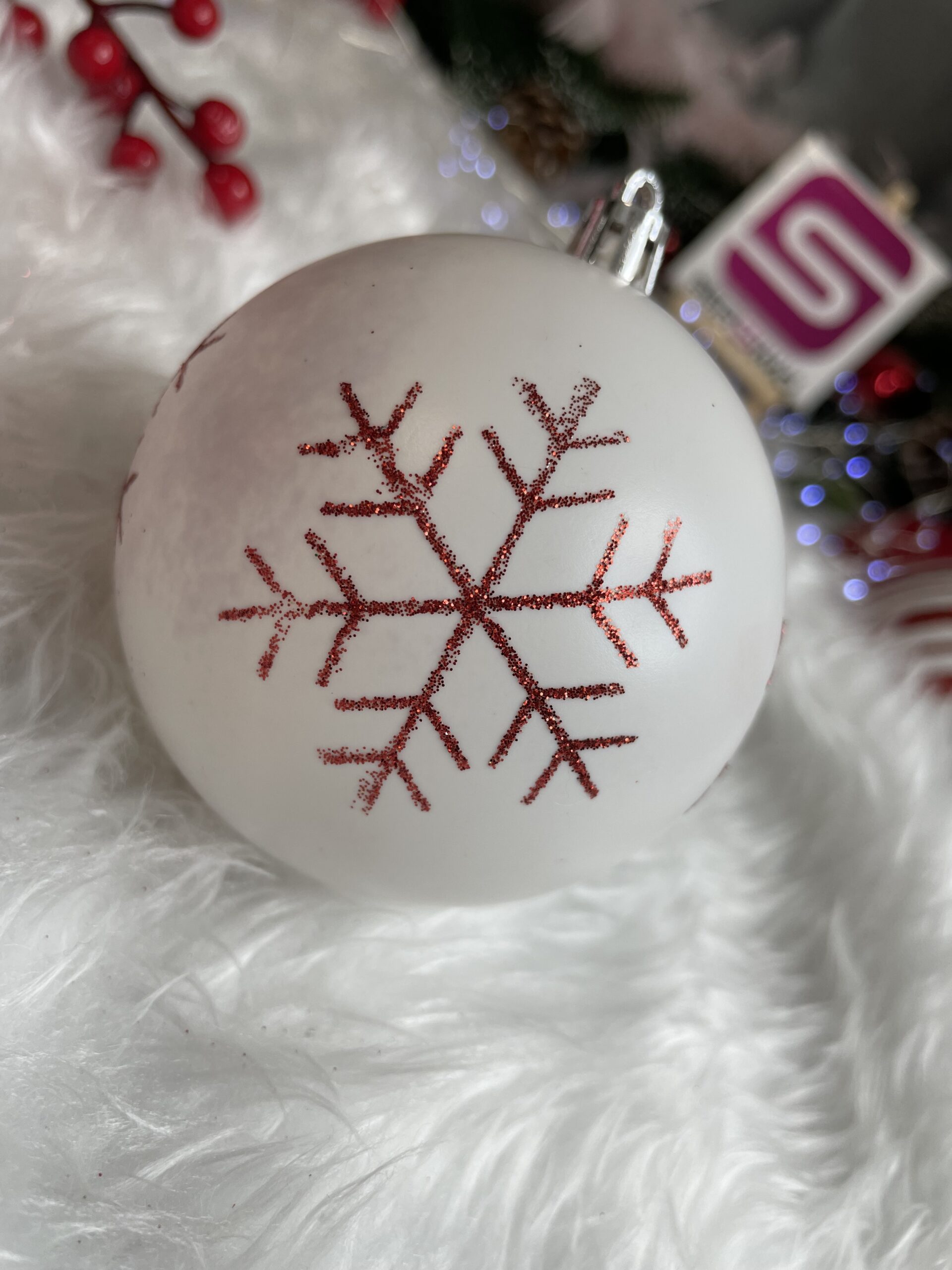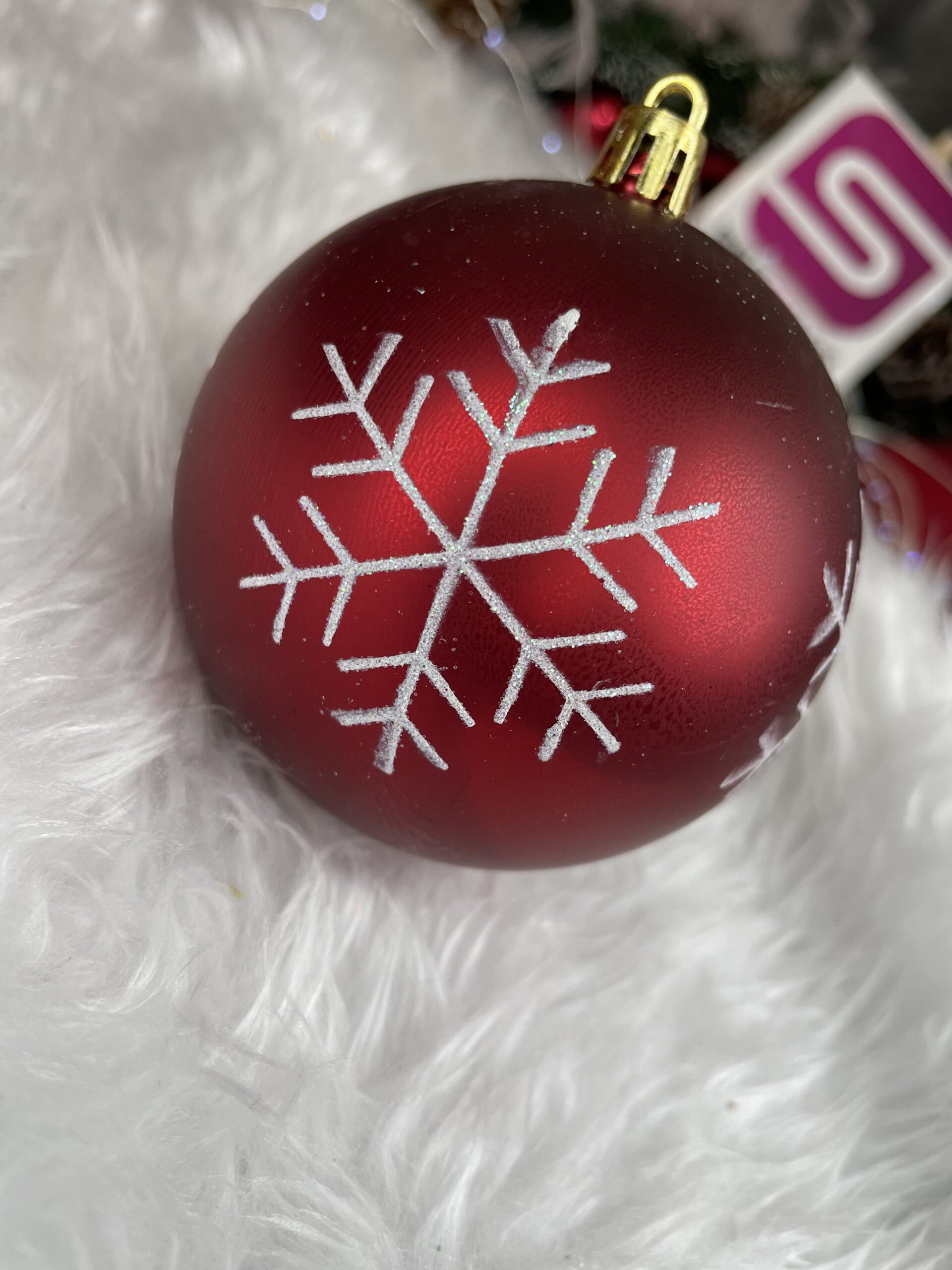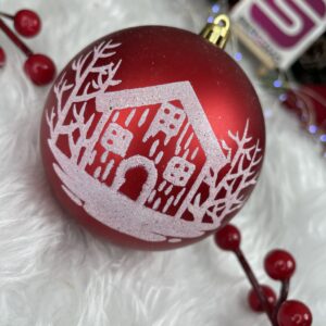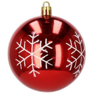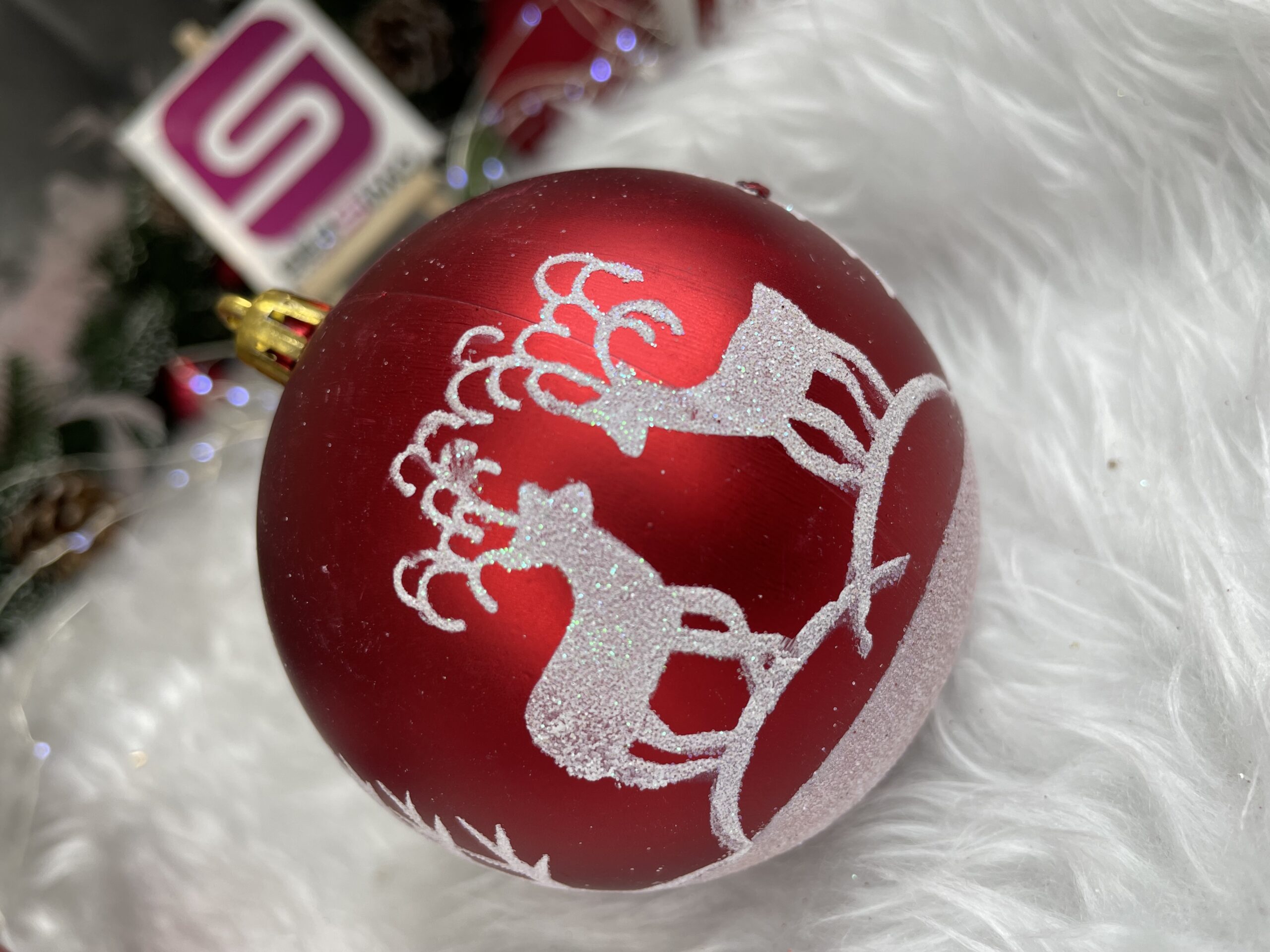 - 2x glob rosu lucios cu model de Craciun – 8 cm