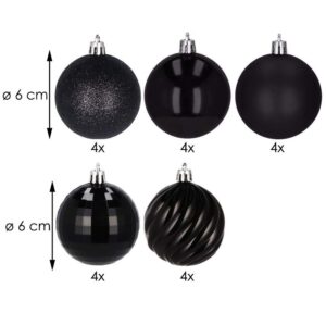 Set globuri de Craciun, 20 bucati, 5 modele, 6cm, negru