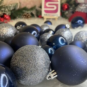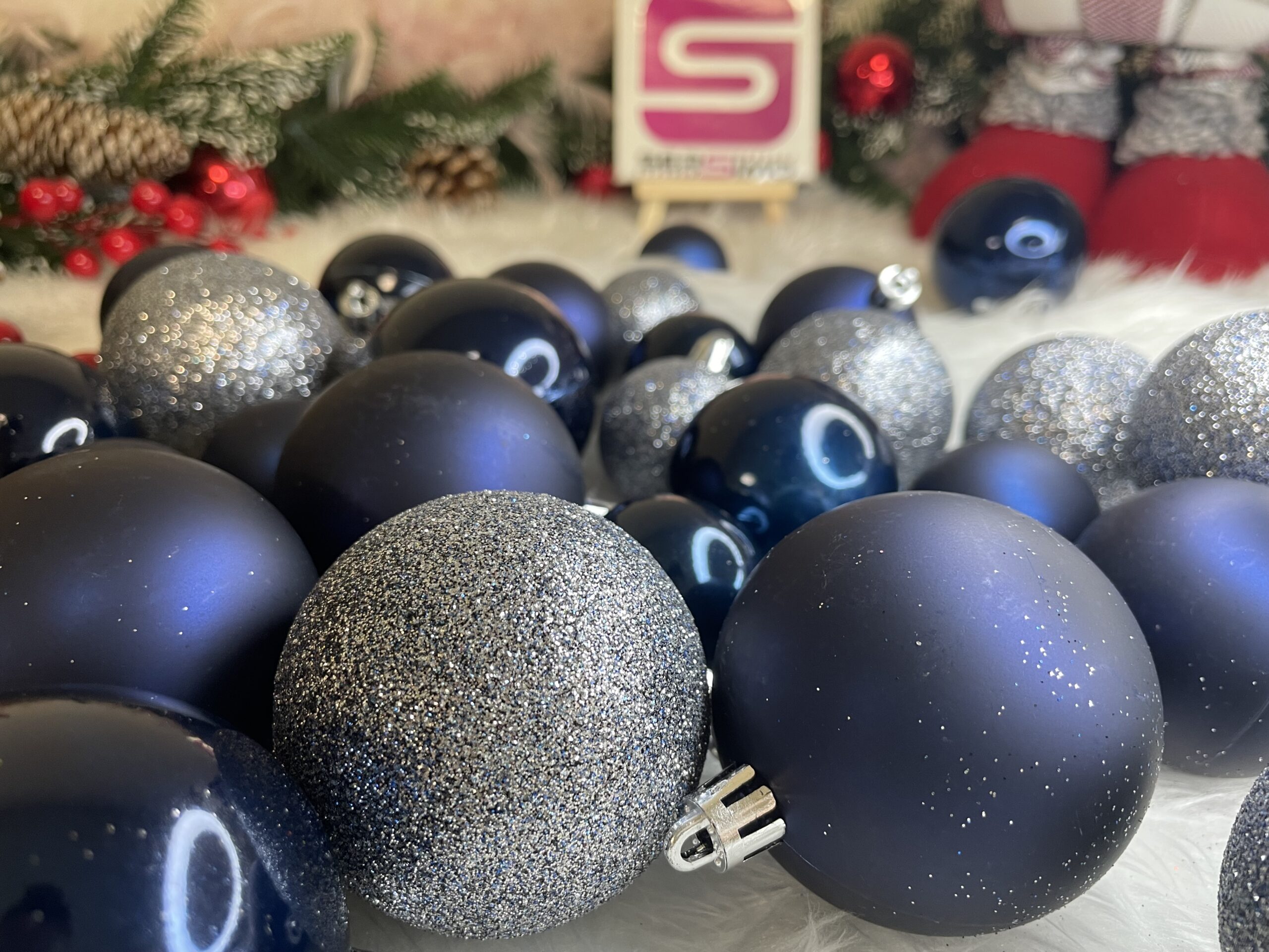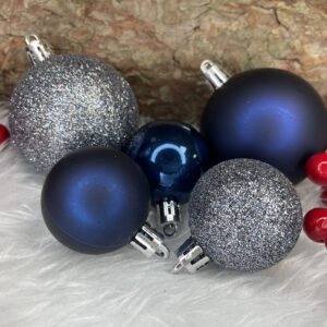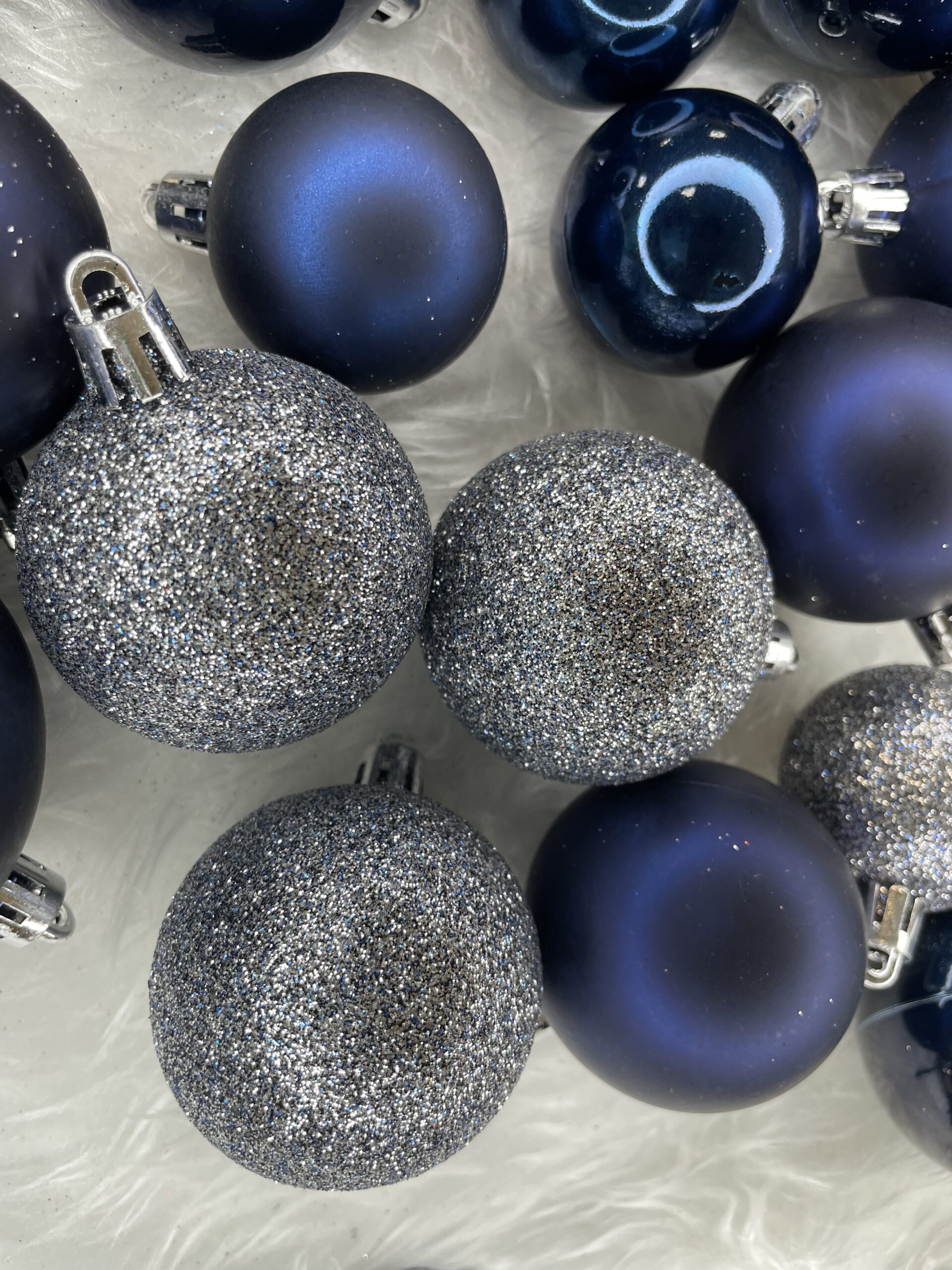 Set globuri de Craciun, 30 bucati, 3 modele, 4/5/6cm, albastru inchis
