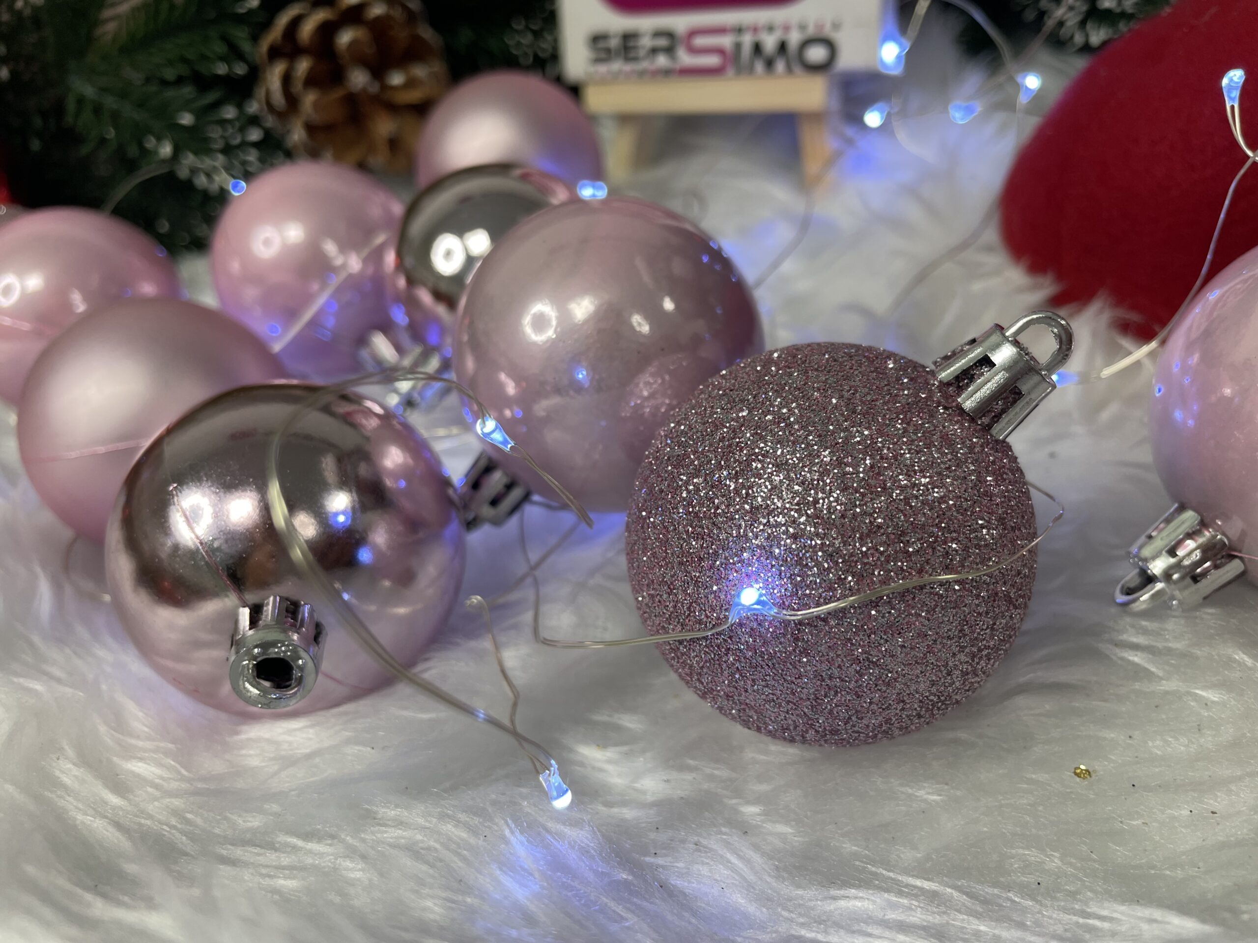 Globurile dintr-un set cu o singura culoare va vor permite sa creati un decor minunat pentru brad. Arata frumos in timpul zilei si dupa intuneric, insotite de iluminat festiv. Setul include snururi care va permit sa agatati globurile rapid si usor in locul dorit.
