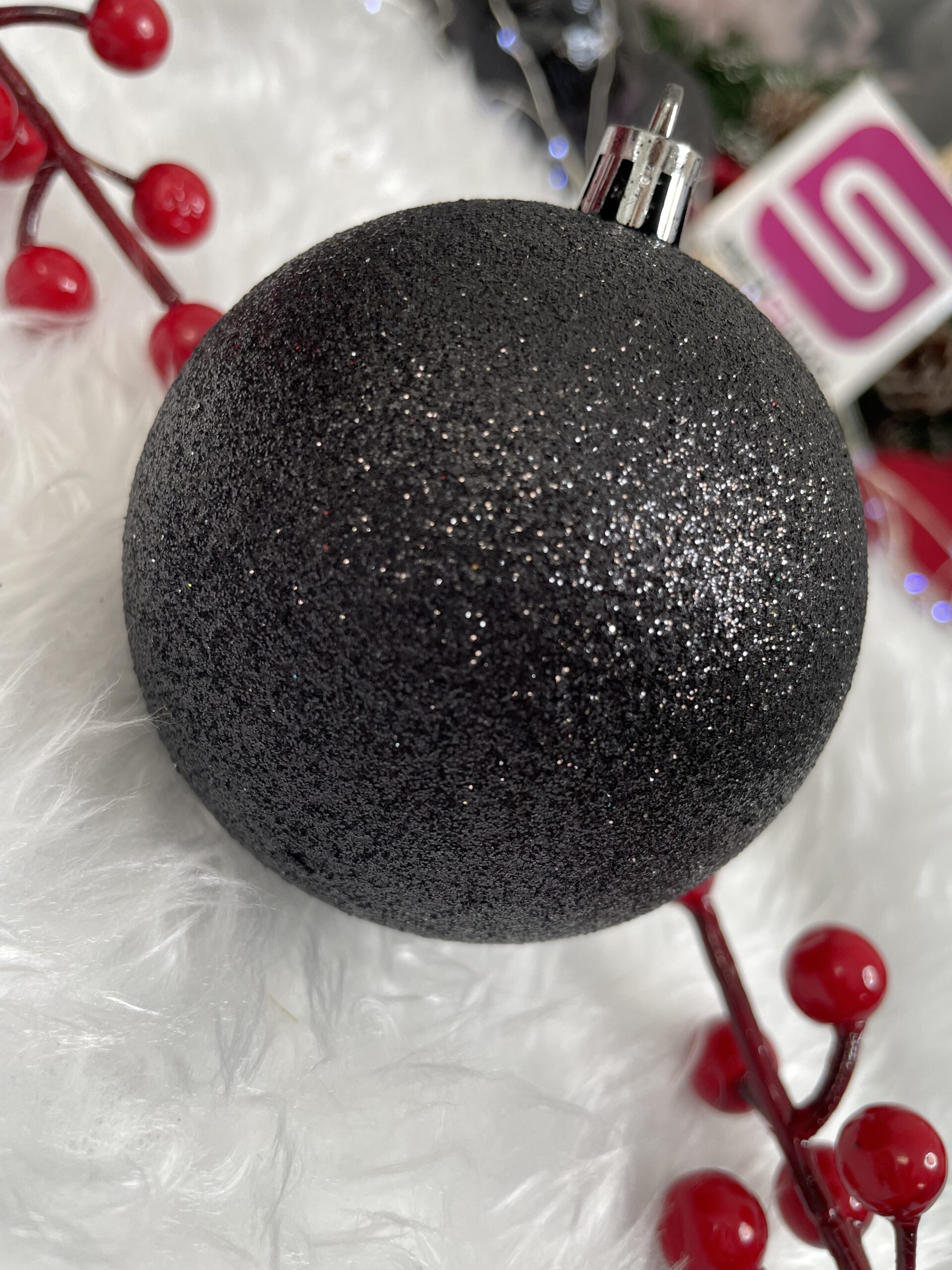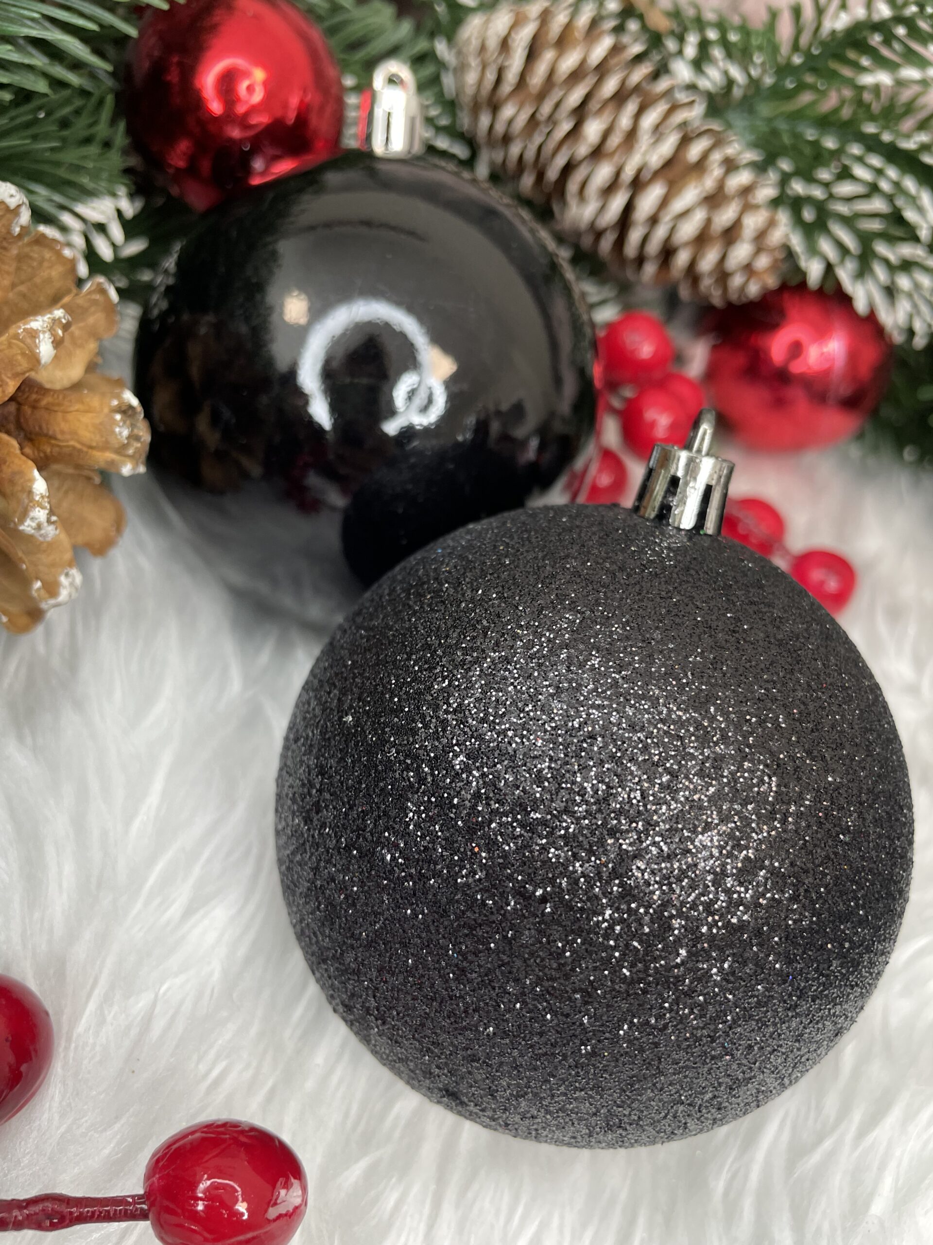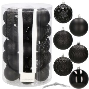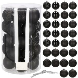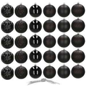 Set globuri de Craciun, 30 bucati, 8cm, 6 modele, negru