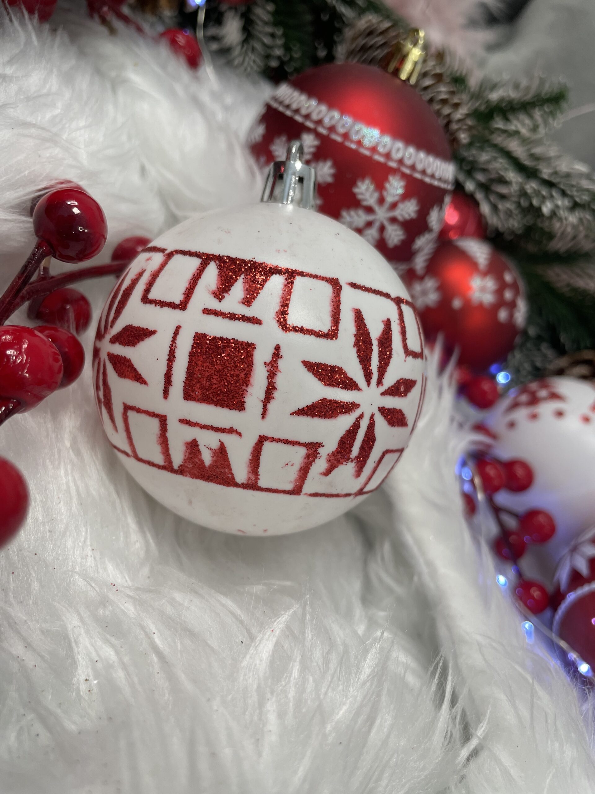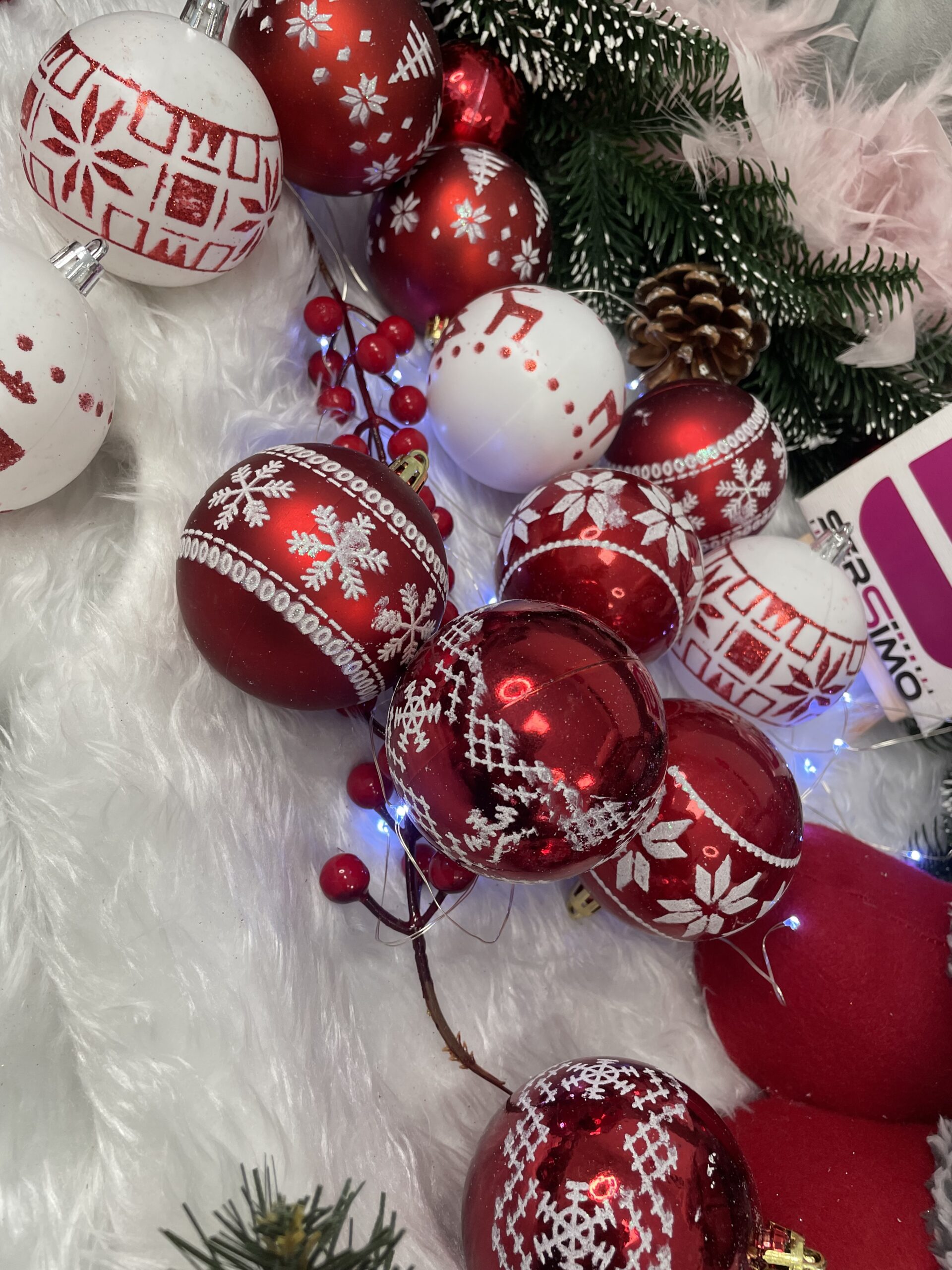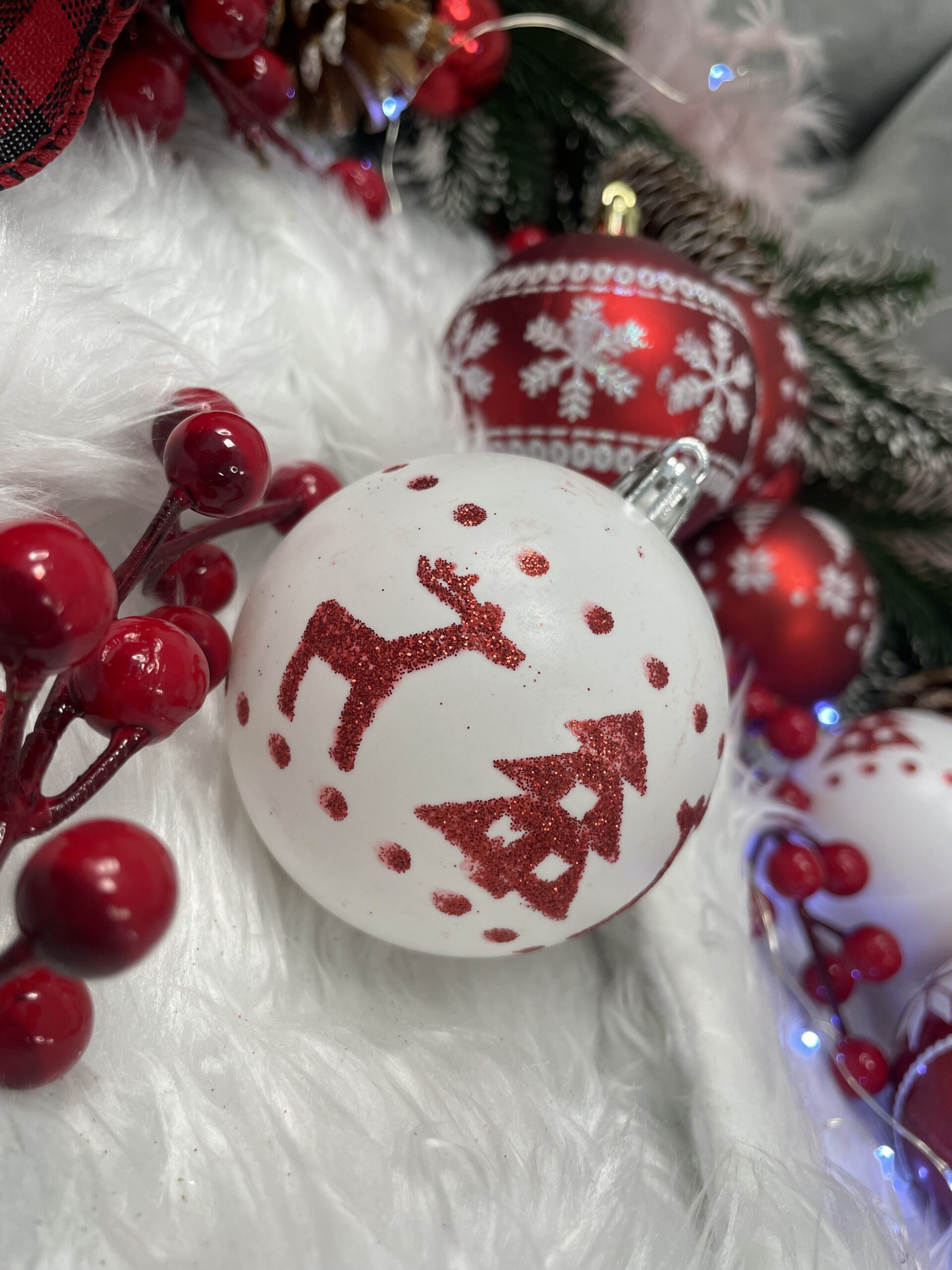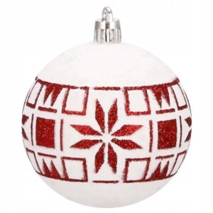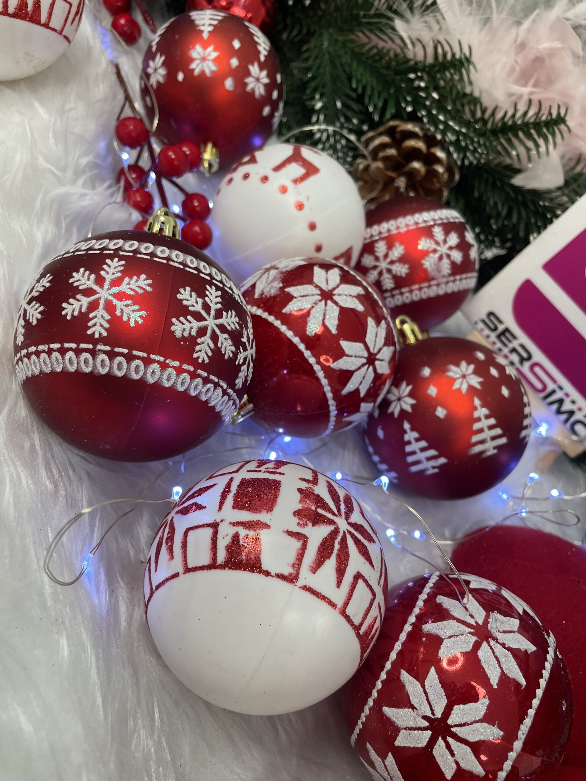 Set globuri de Craciun cu modele de sarbatori, 30 bucati, 5cm, alb rosu