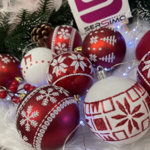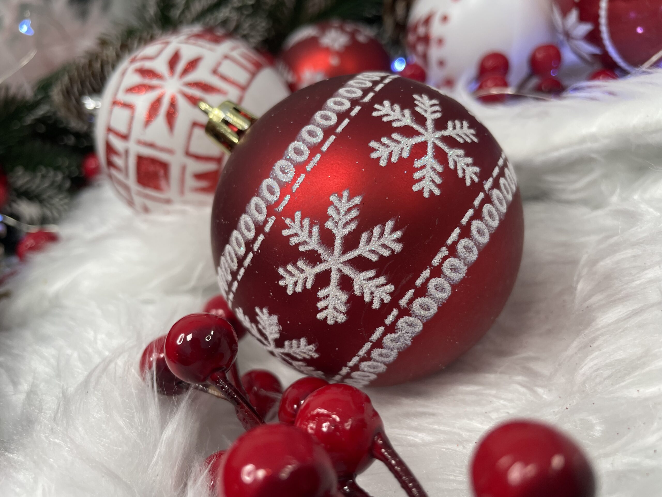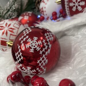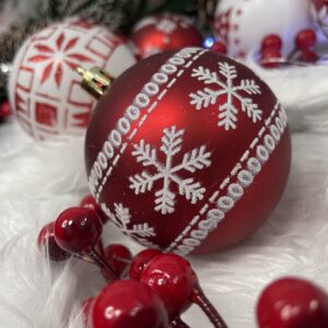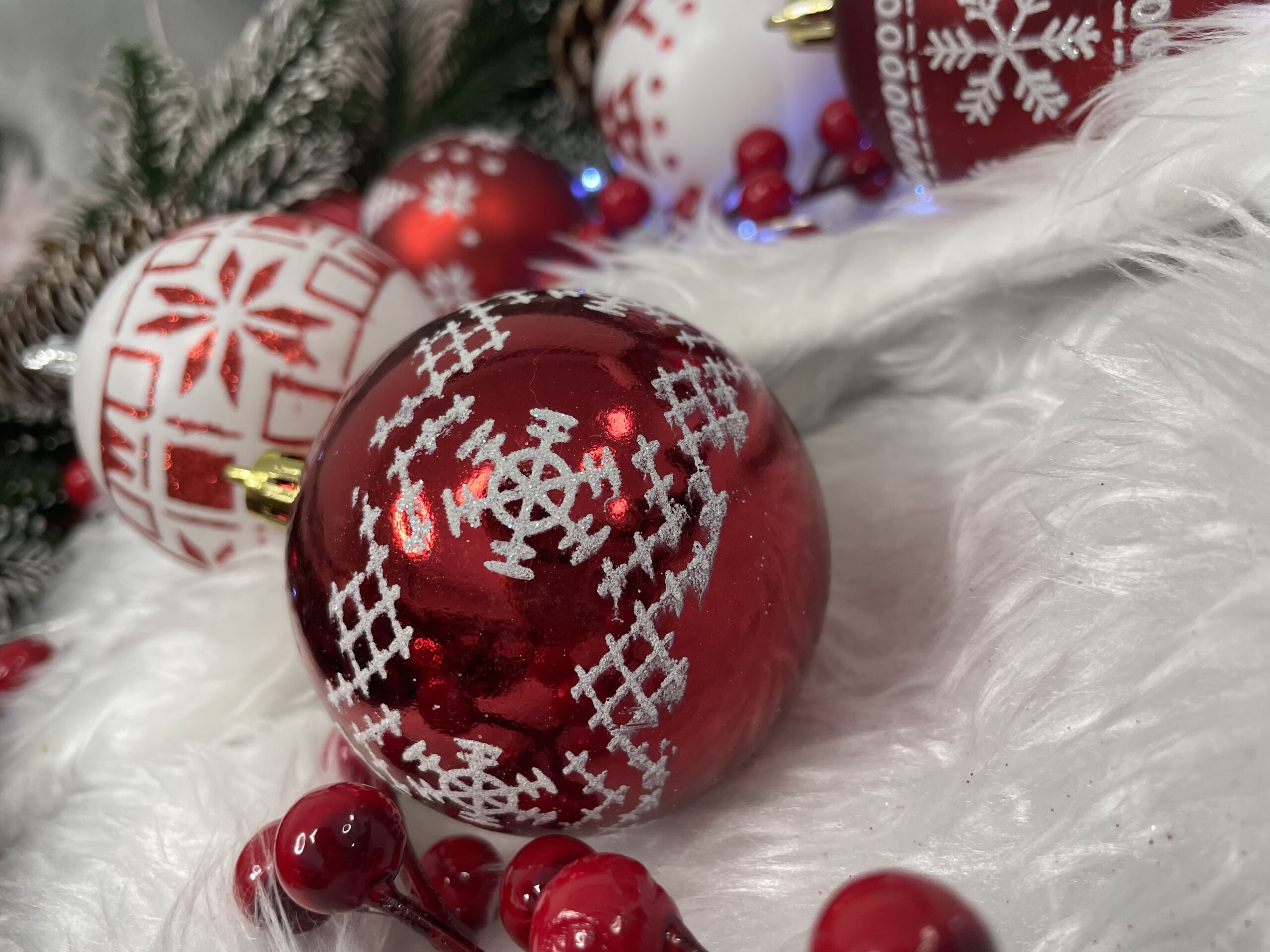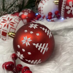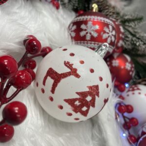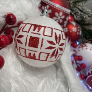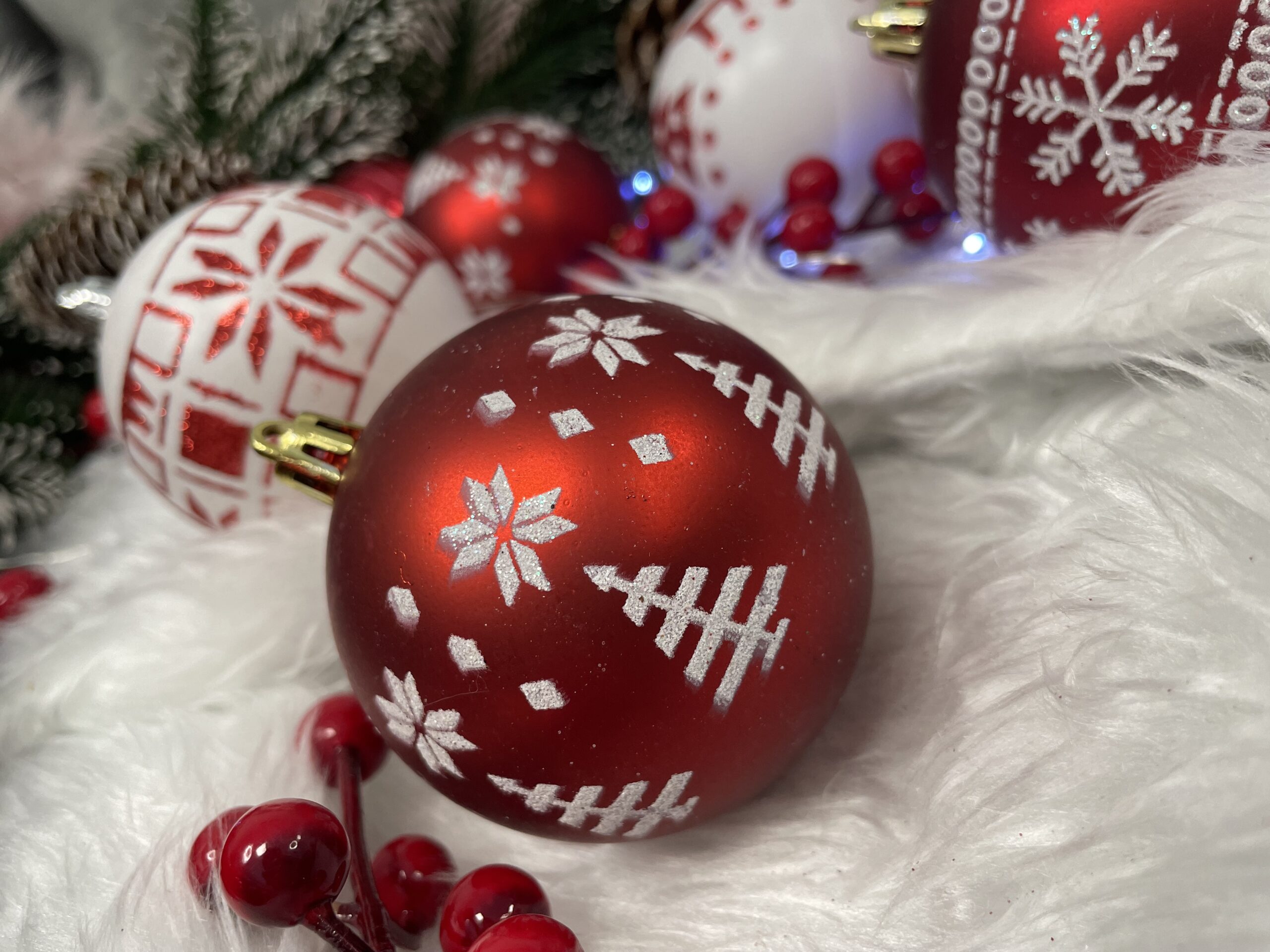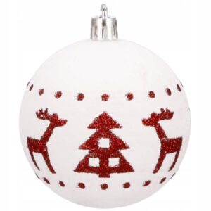 Set globuri de Craciun cu modele de sarbatori, 30 bucati, 5cm, alb rosu