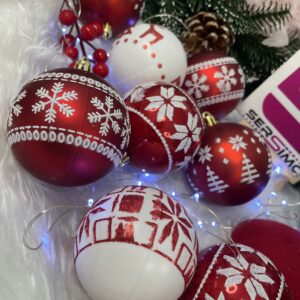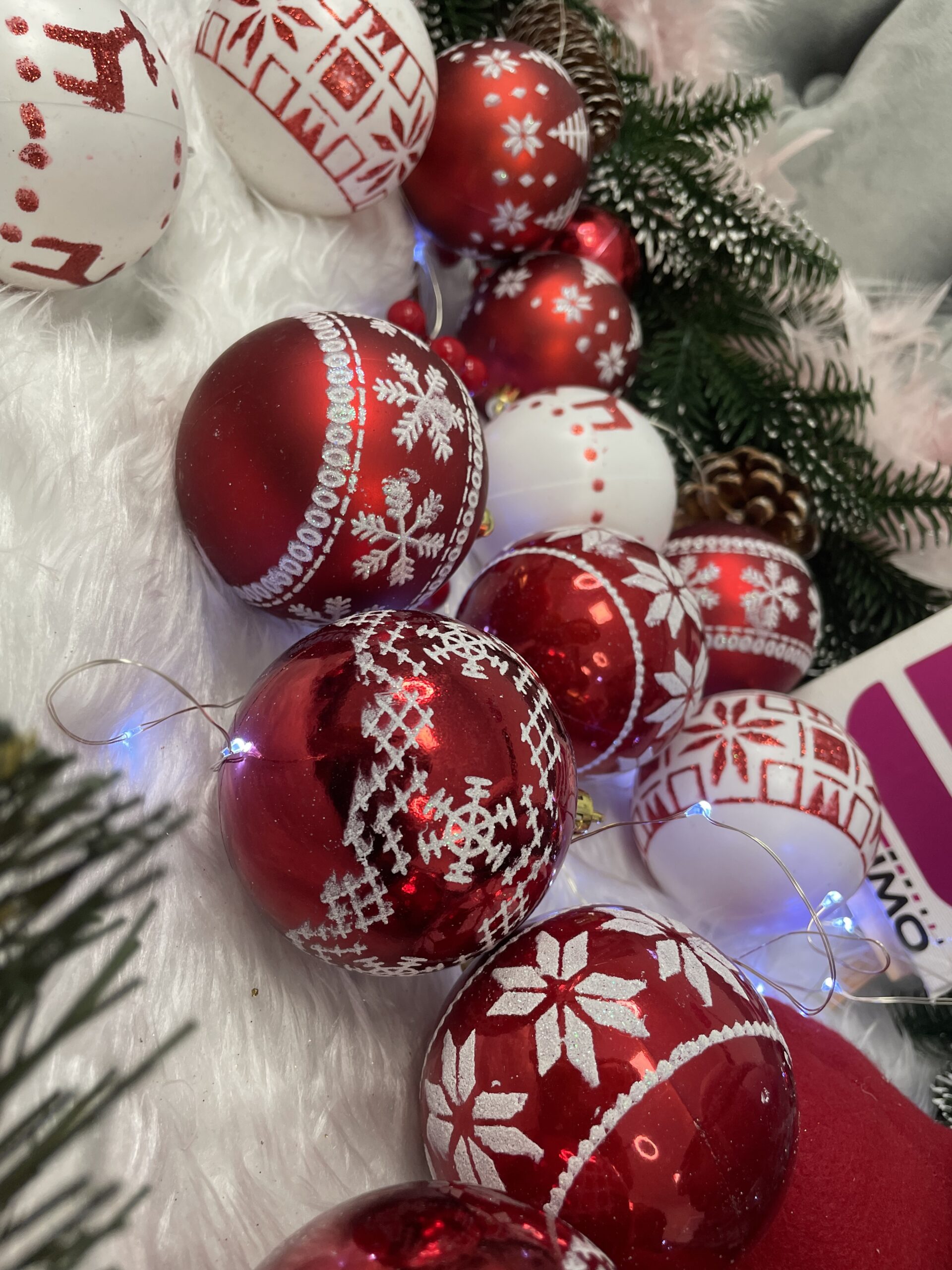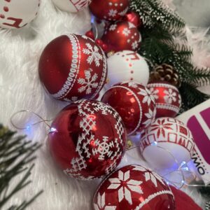 Set globuri de Craciun cu modele de sarbatori, 30 bucati, 5cm, alb rosu termékről 1 értékelés
