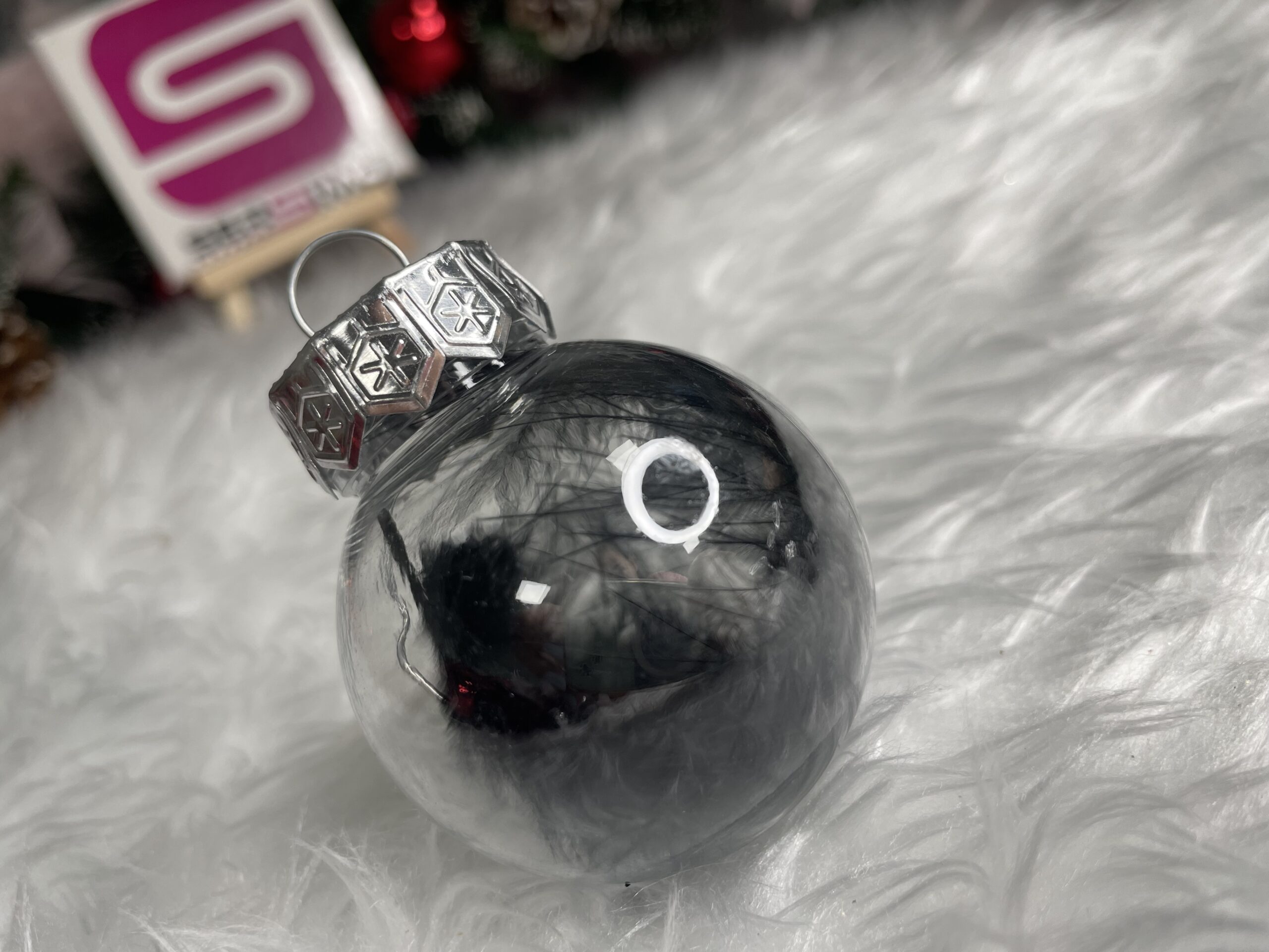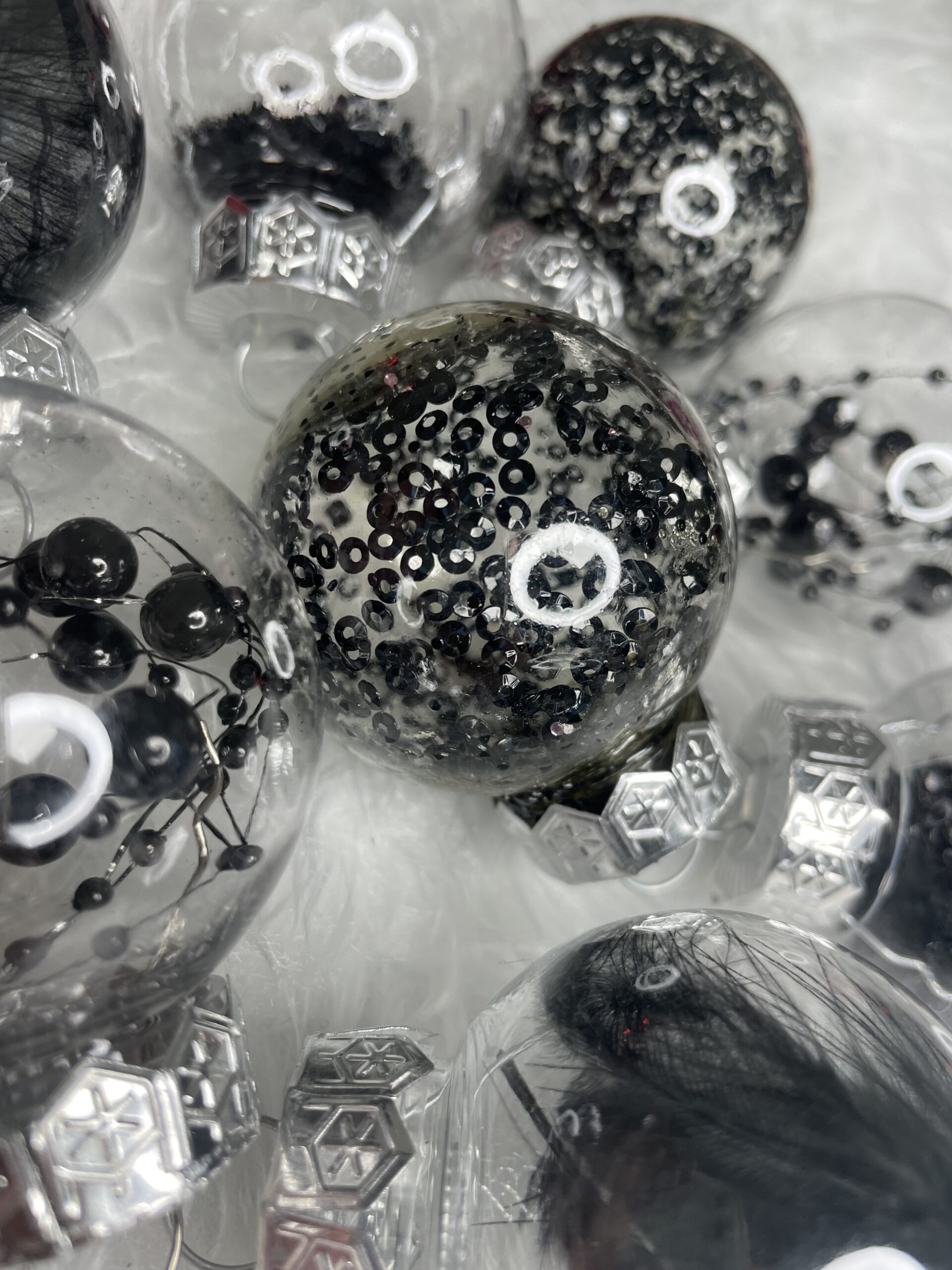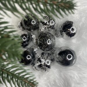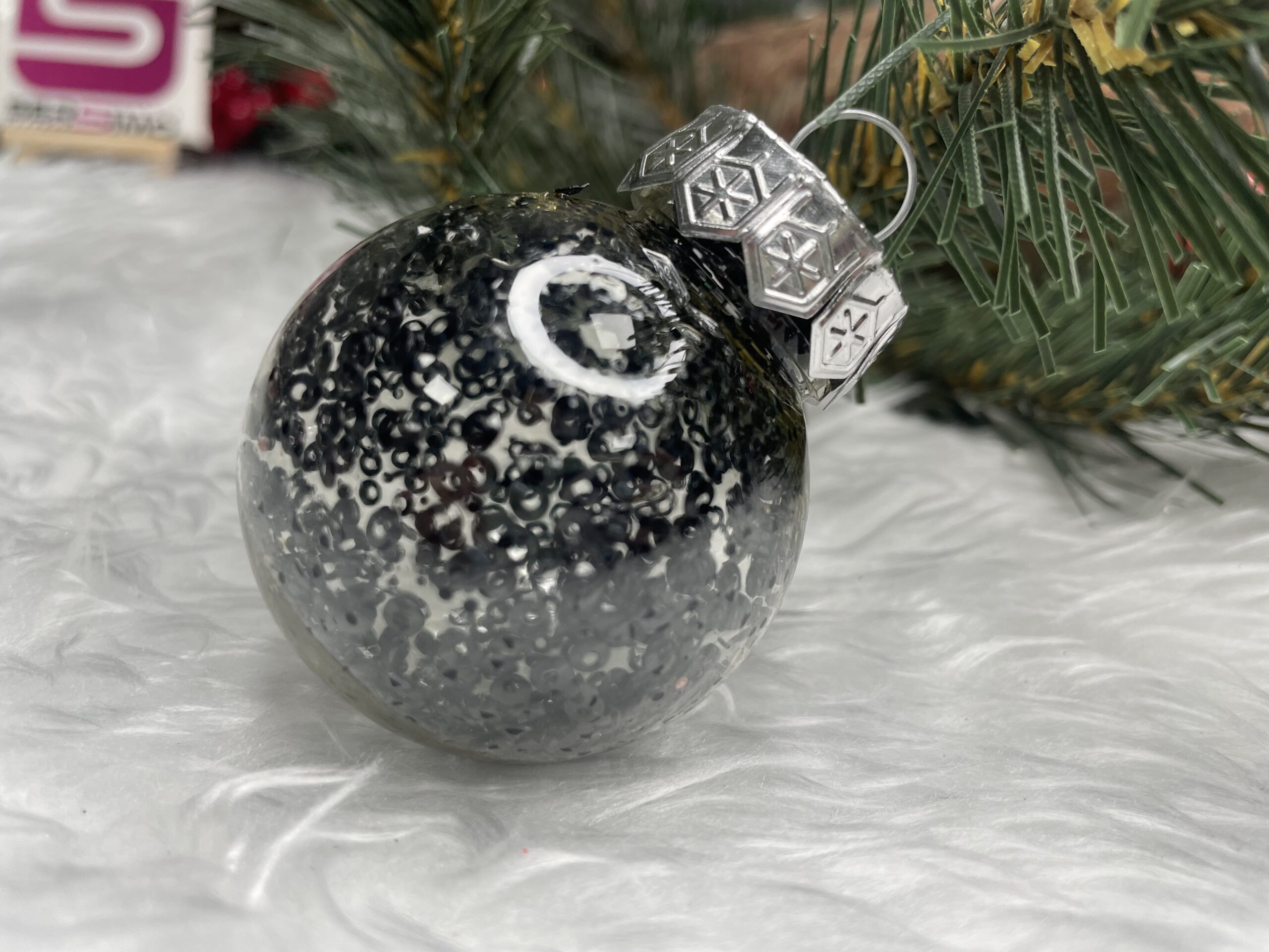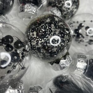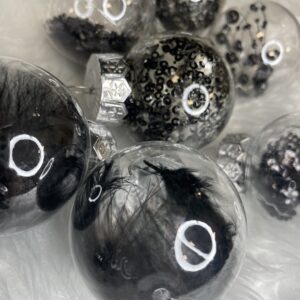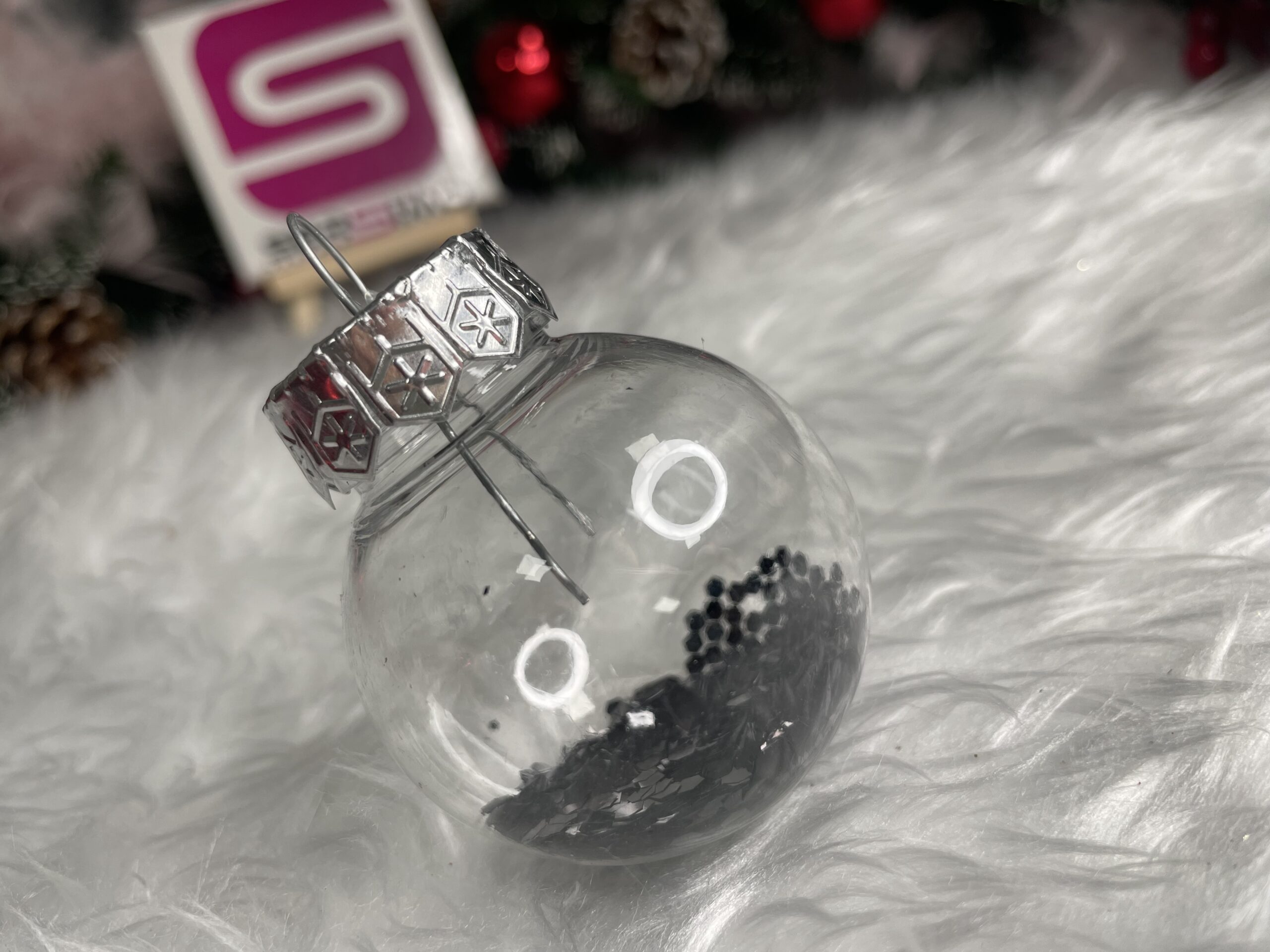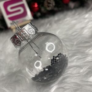 - 6x glob rotund, transparent umplut cu paiete – 5 cm