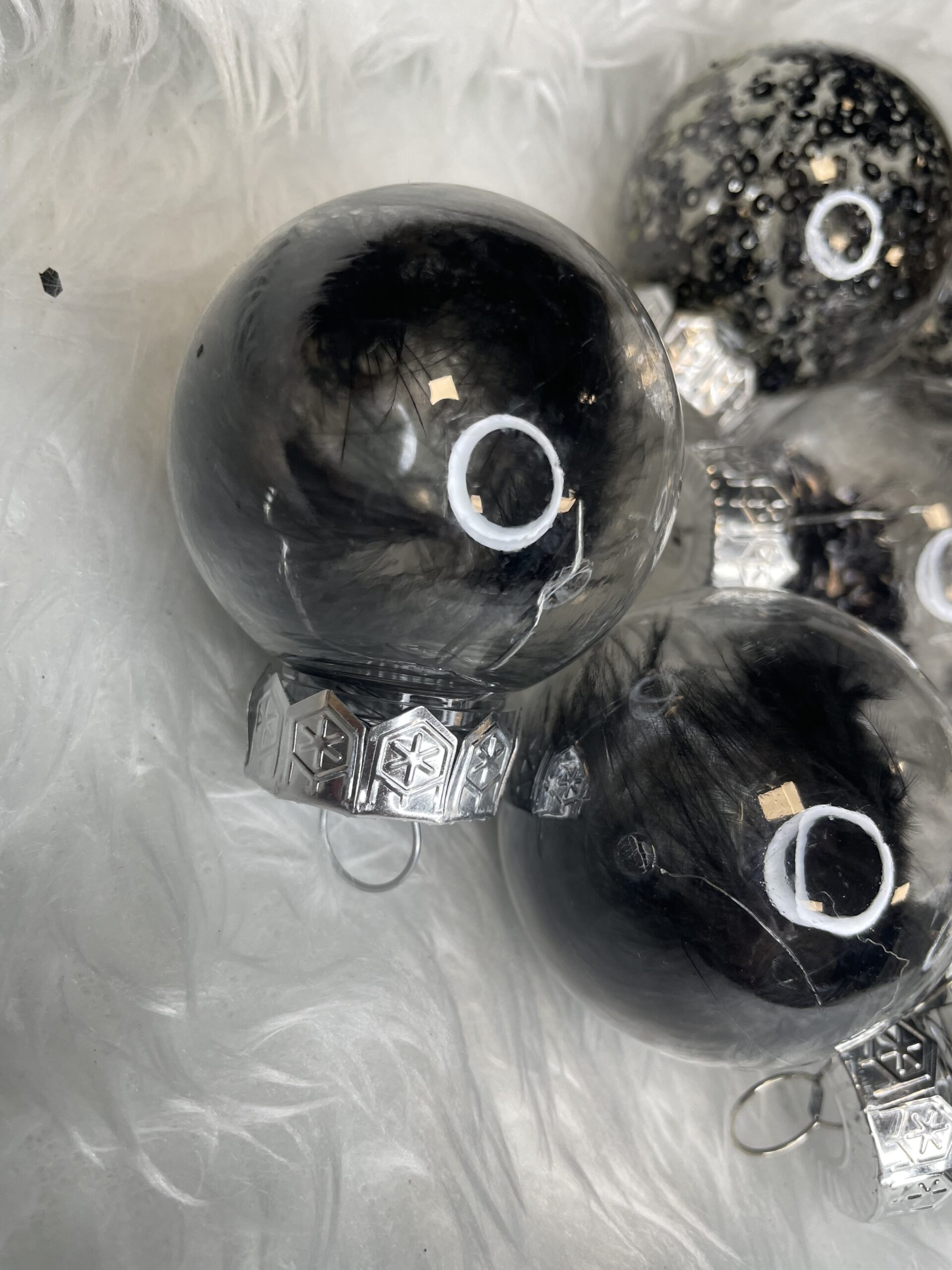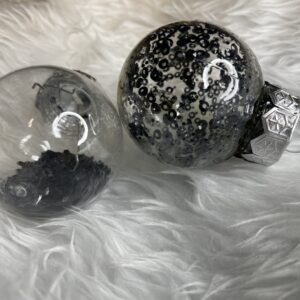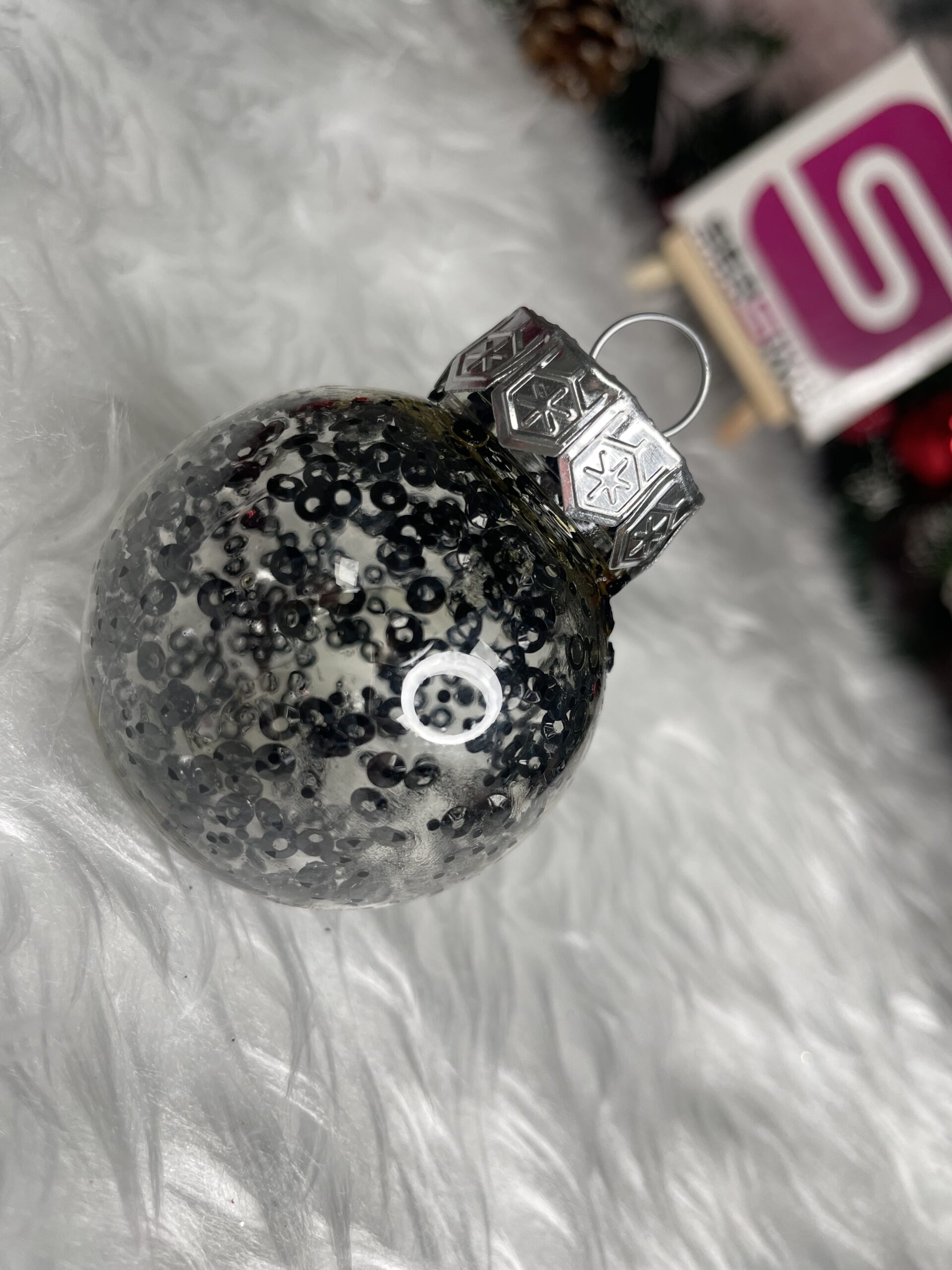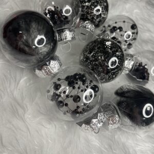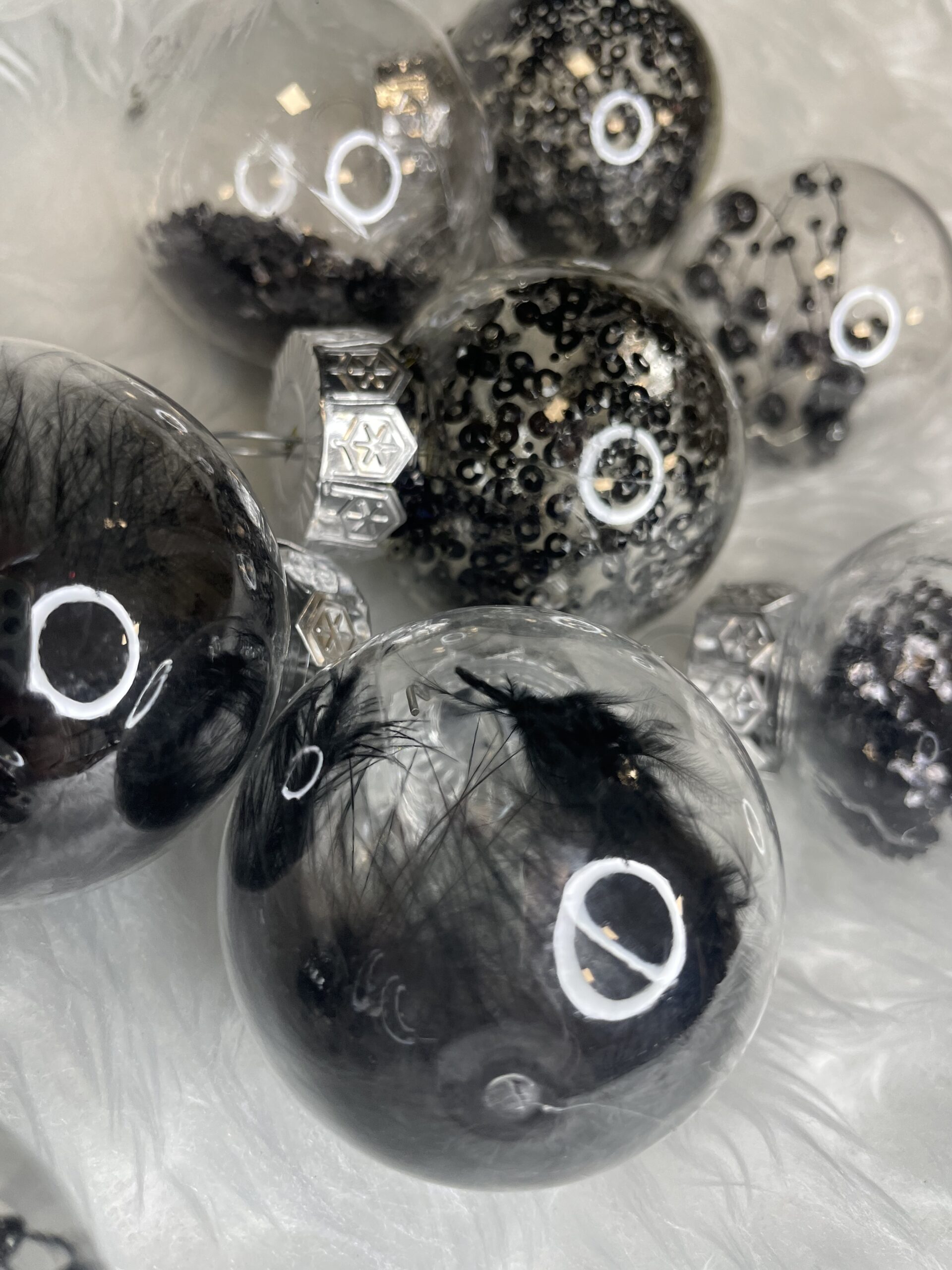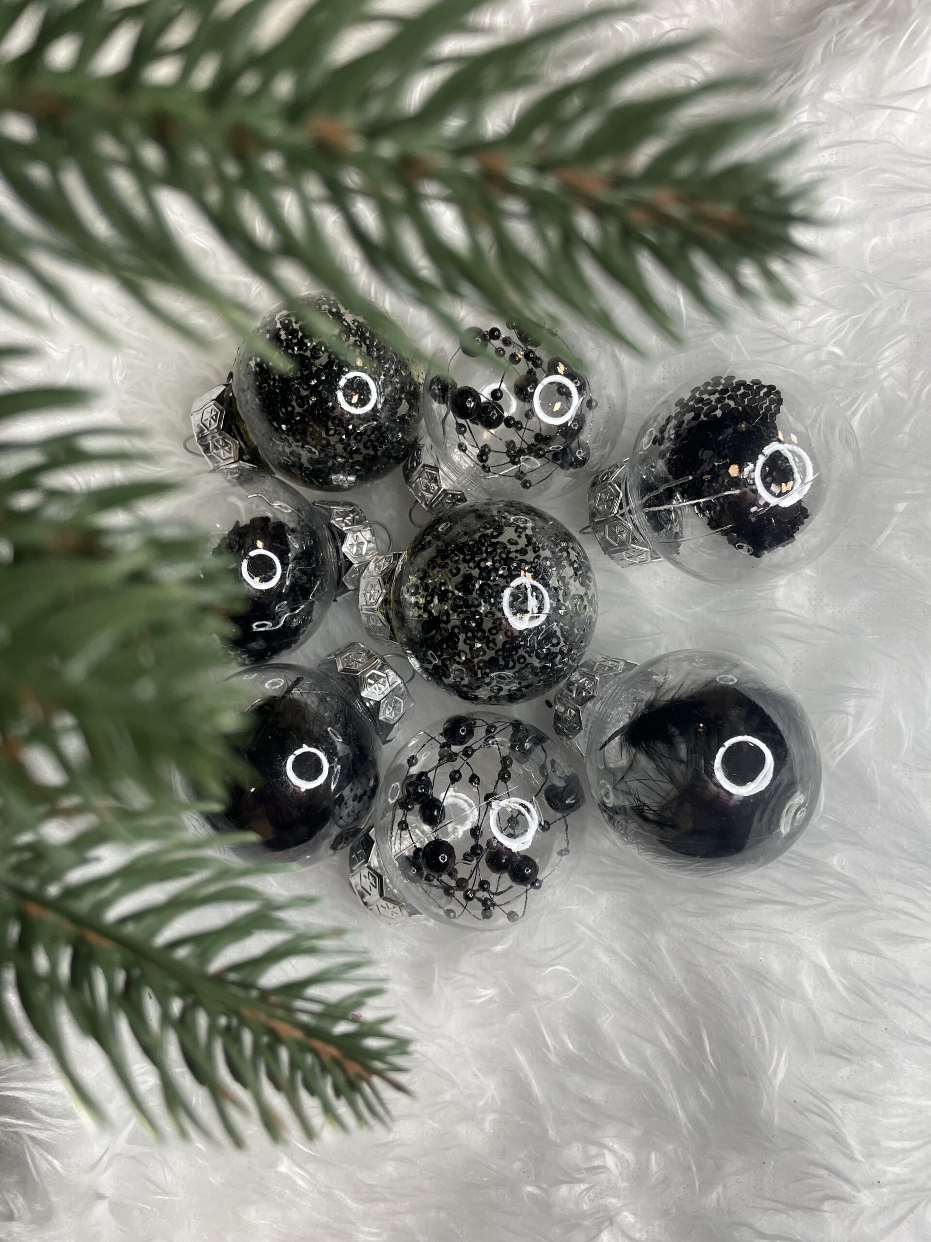 - 6x glob rotund, transparent umplut cu paiete – 5 cm