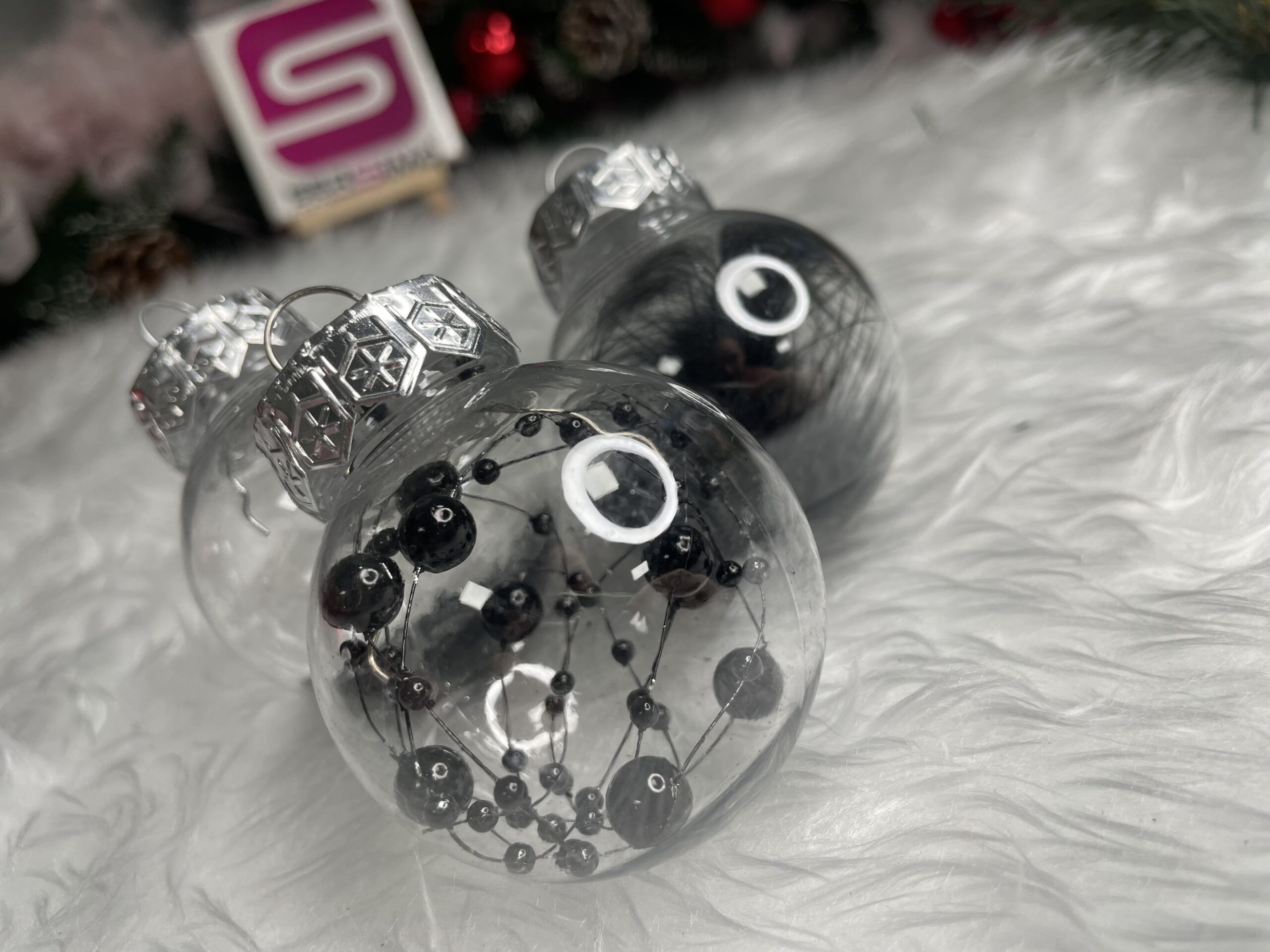 - 6x glob rotund, transparent umplut cu margele – 5 cm