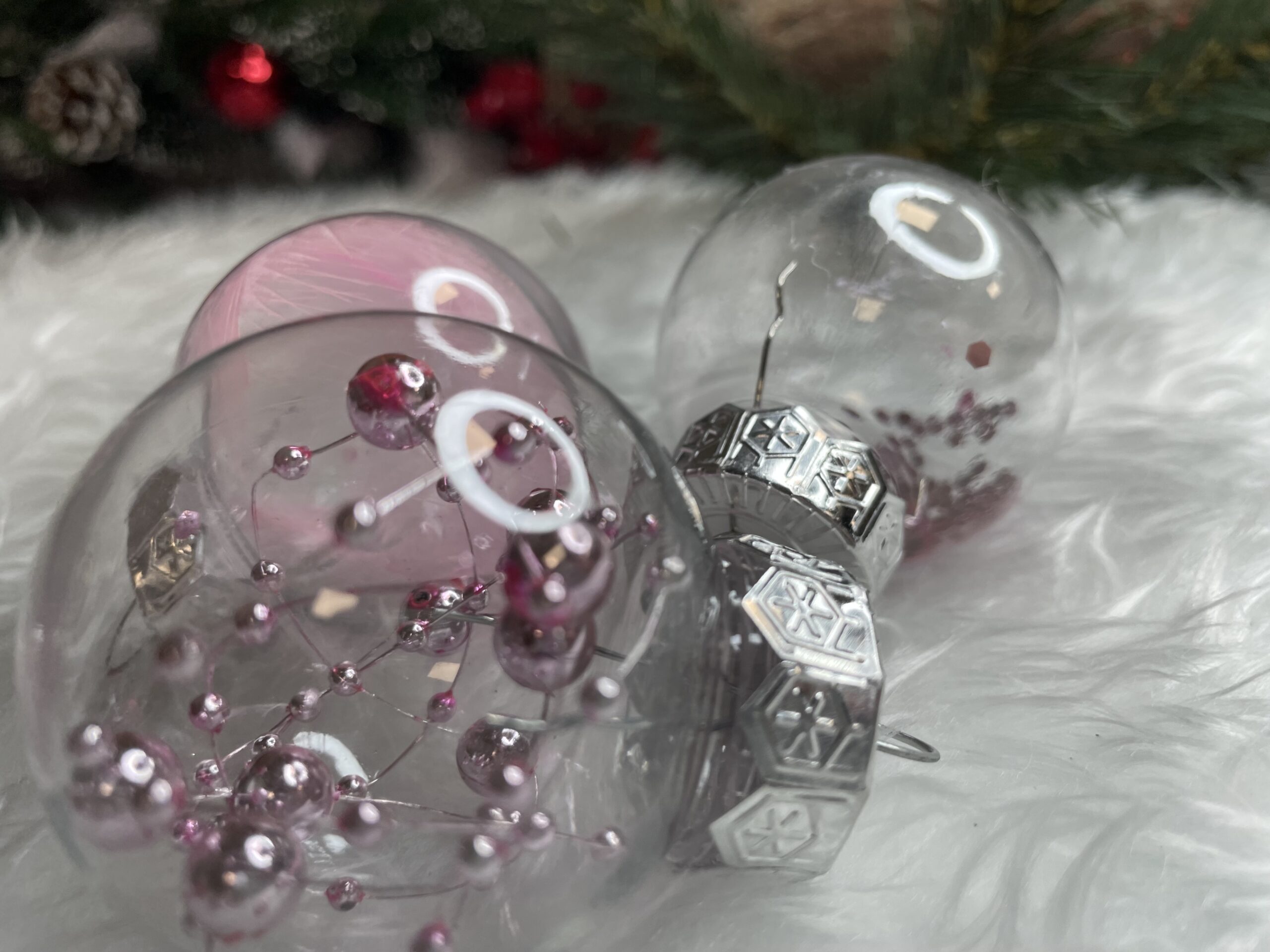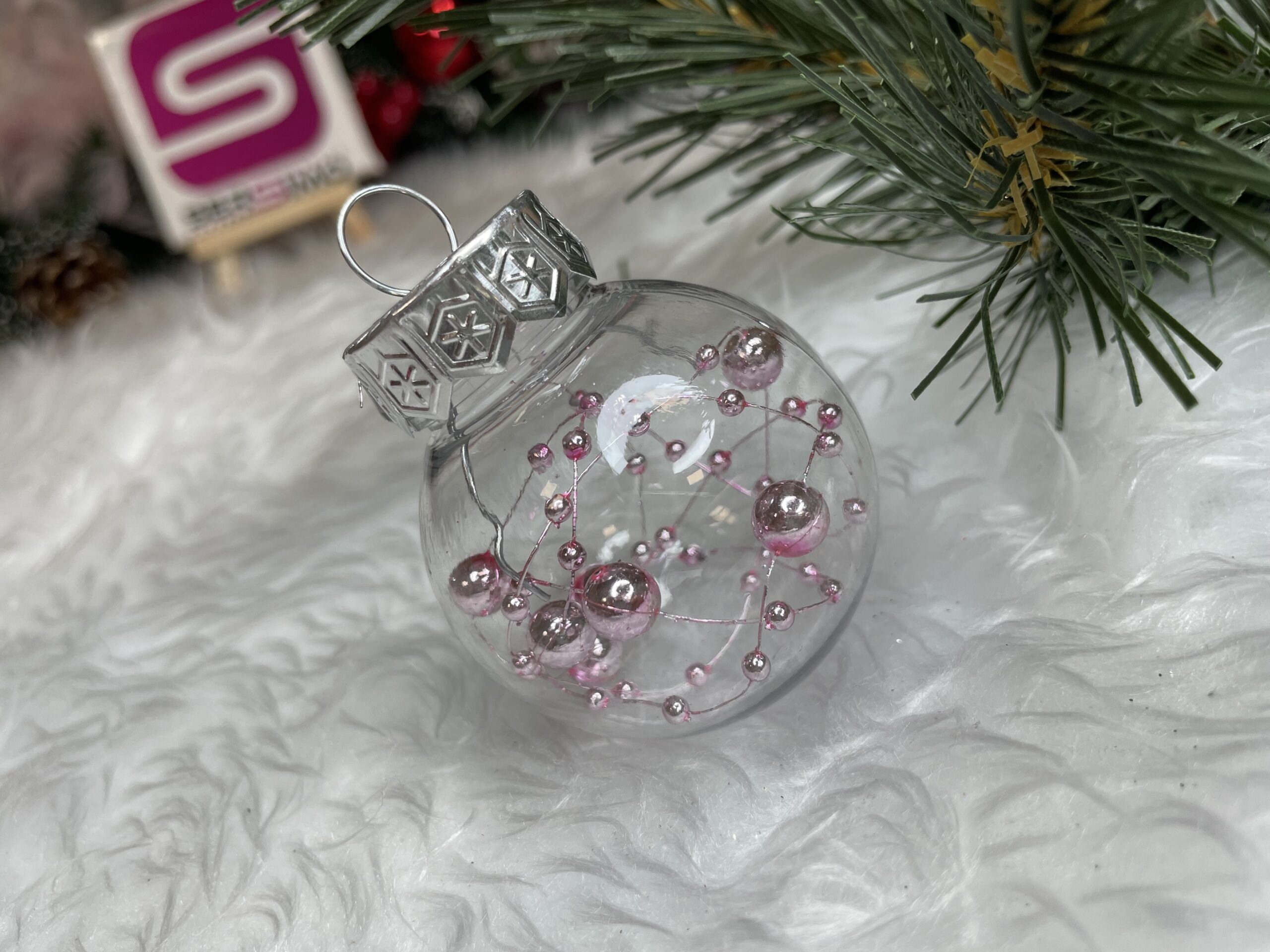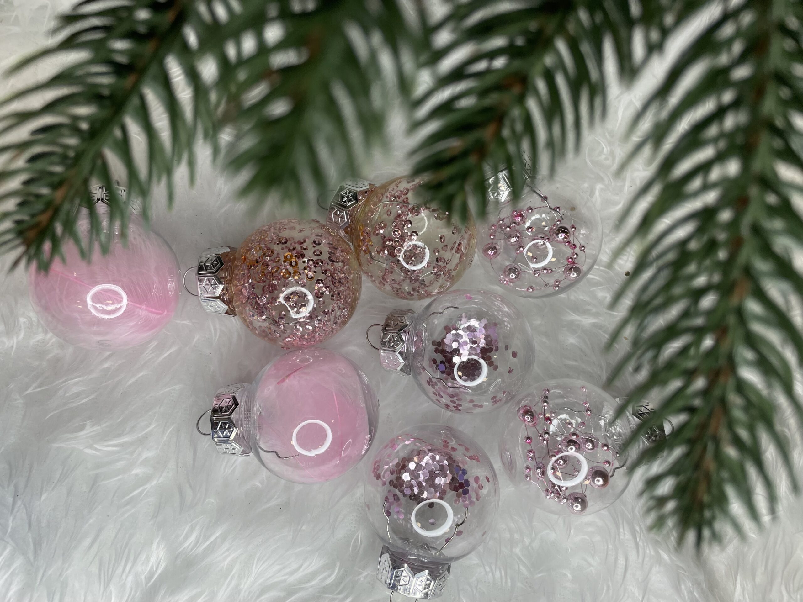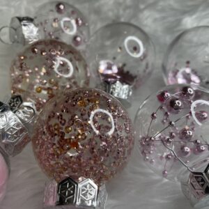 - 6x globulete rotunde transparente umplute cu margele – 5 cm,