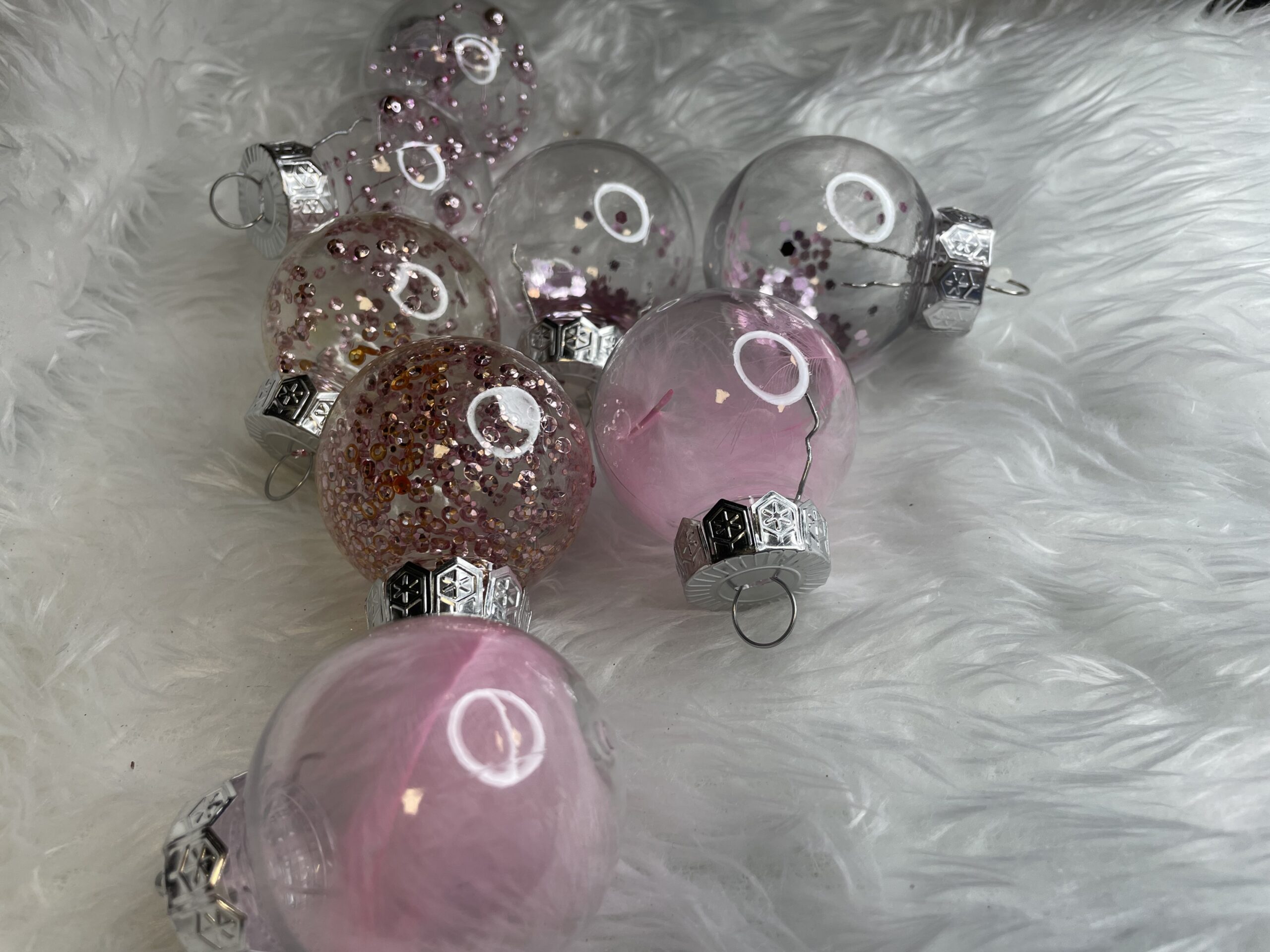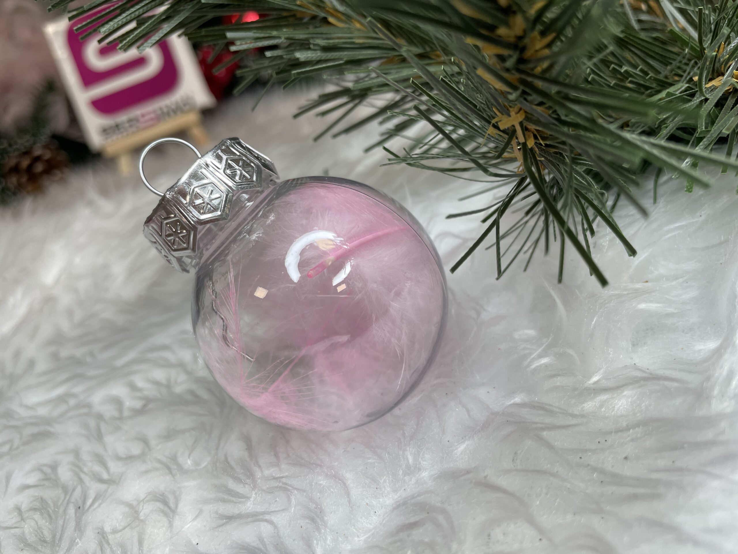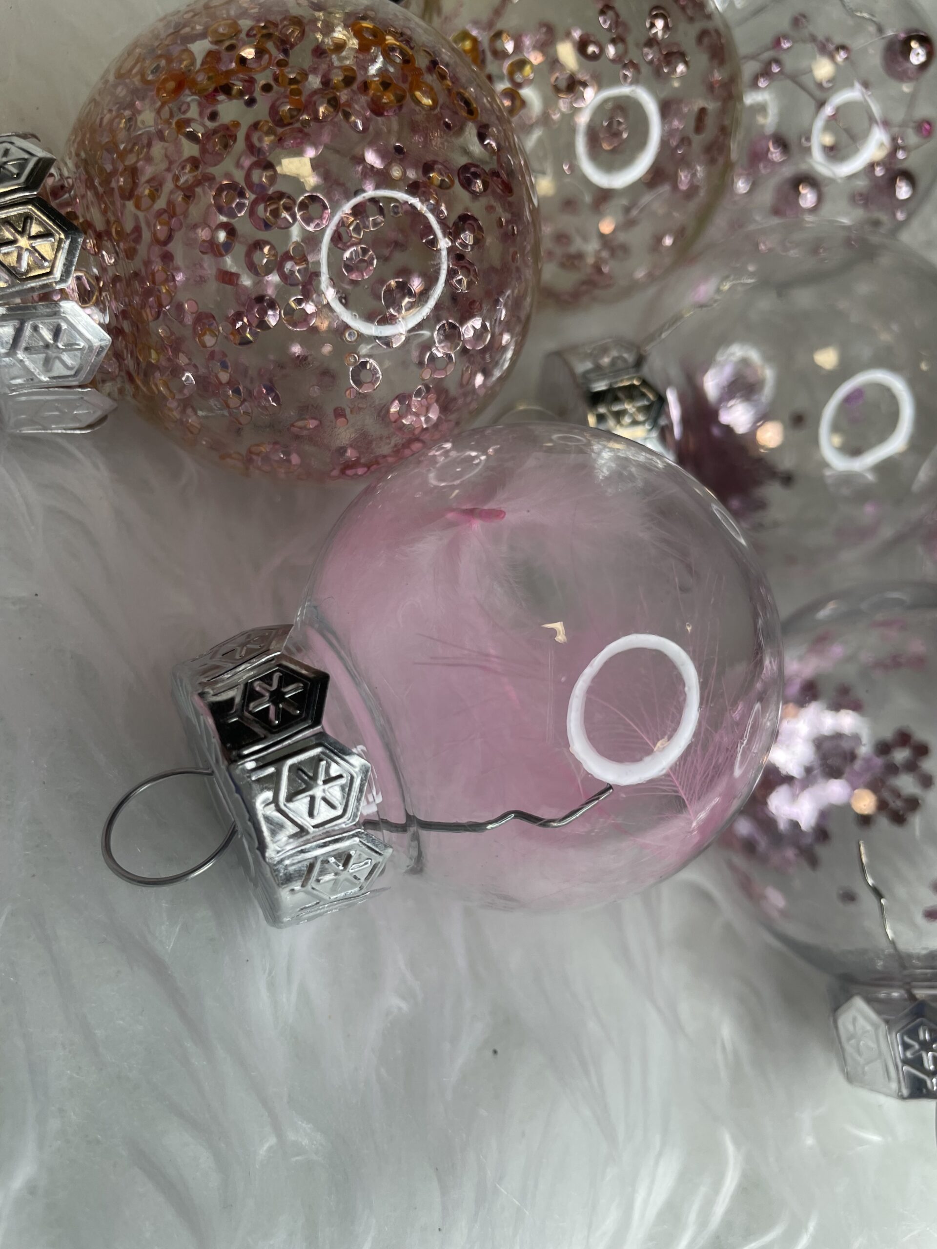 - 6x globulete rotunde transparente umplute cu pene – 5 cm,