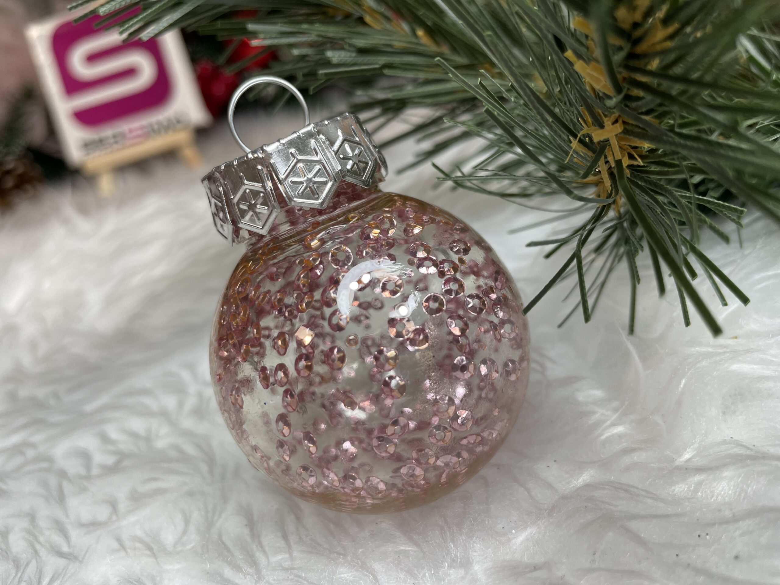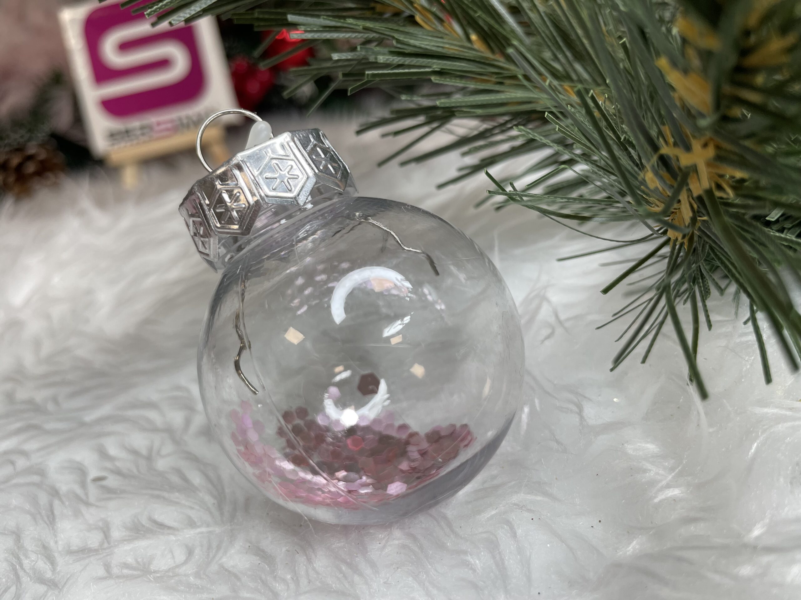 - 6x globulete rotunde transparente rotunde umplute cu paiete – 5 cm