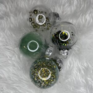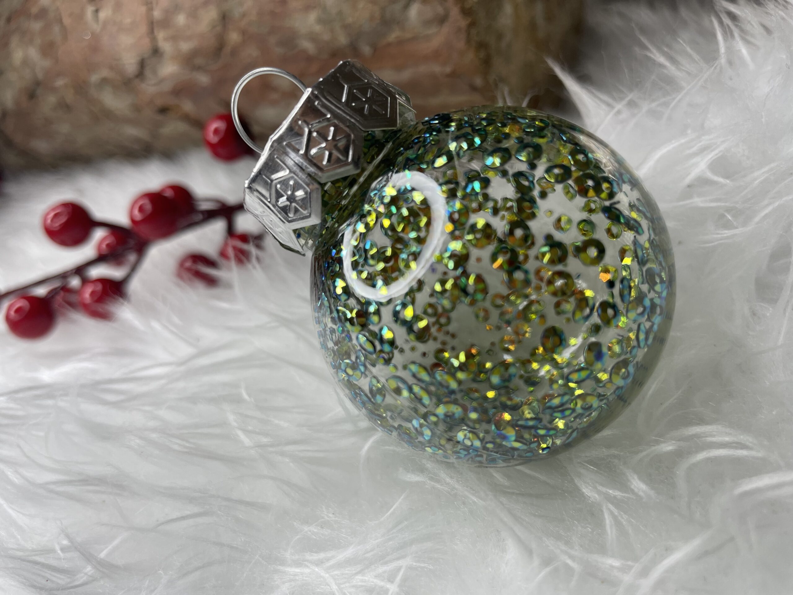 • 6x globulete rotunde transparente umplute cu paiete – 5 cm,